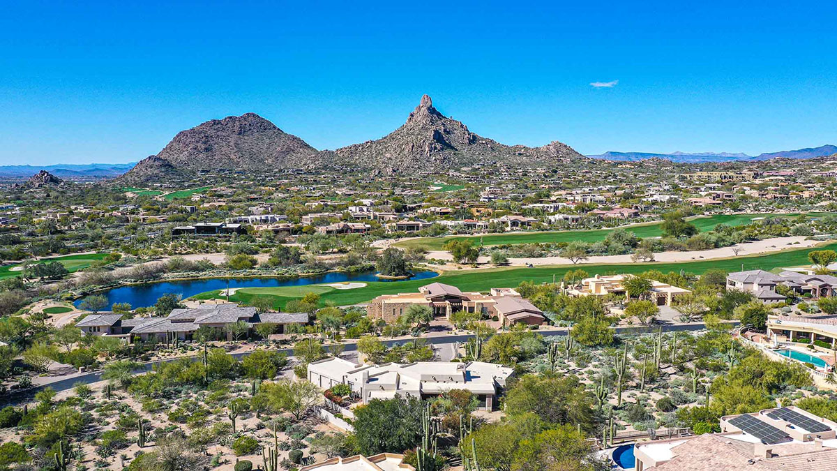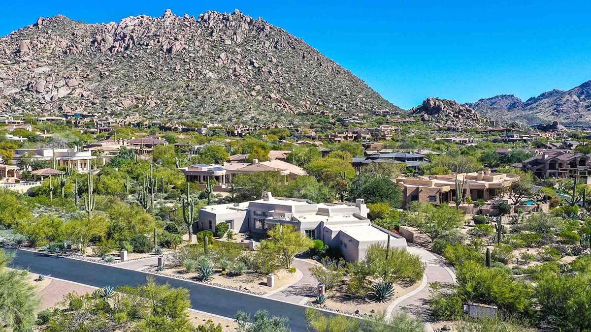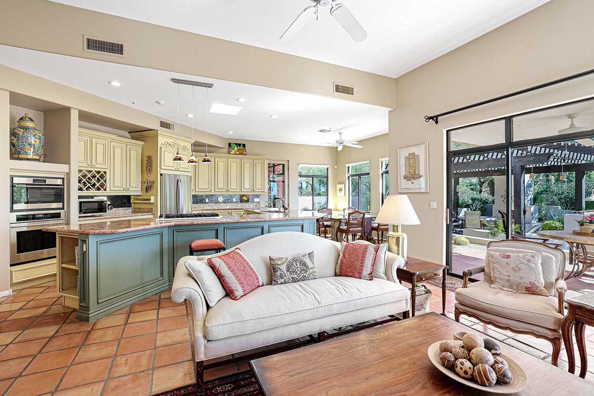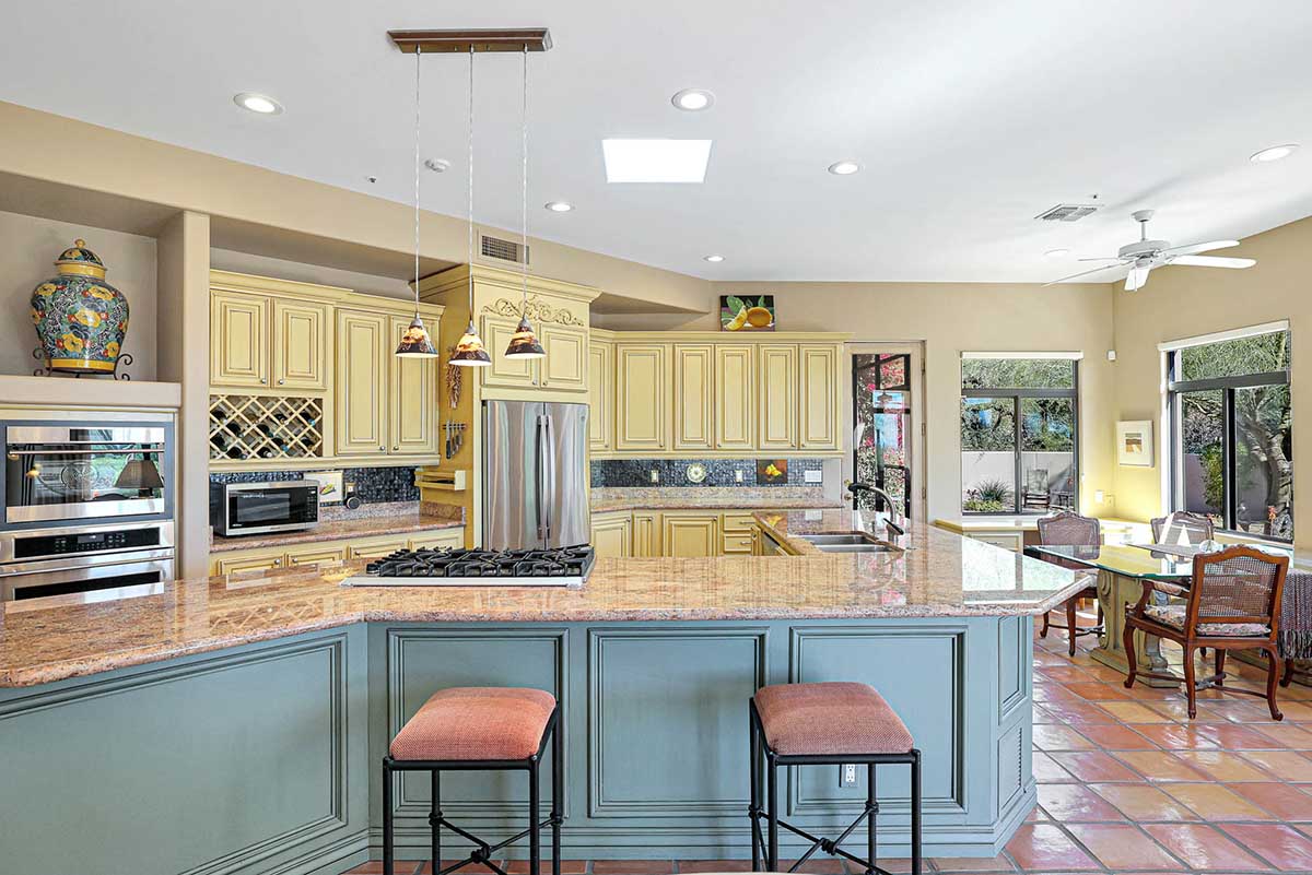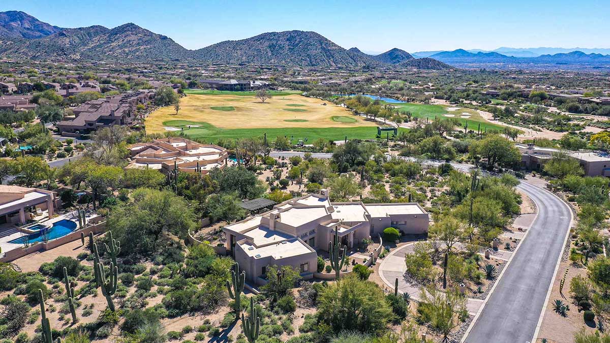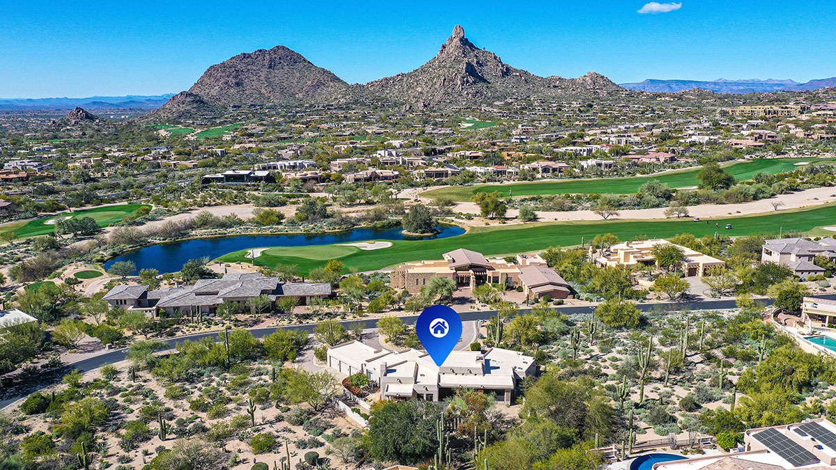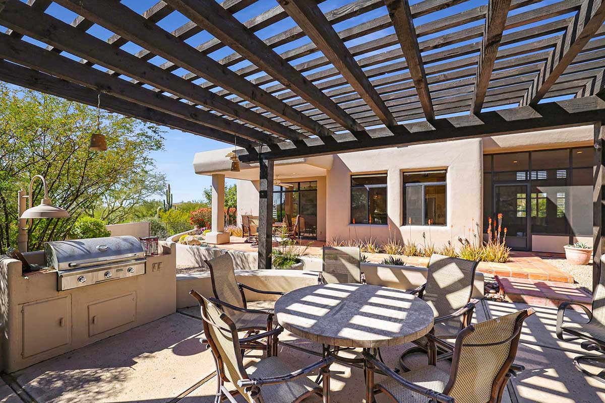This custom built, well maintained home located in guard-gated Windy Walk Estates at Troon Village features a spacious layout and a flowing floor plan. Upon entry, take note of the soaring ceilings and numerous windows allowing for plenty of natural light and direct views to Pinnacle Peak. The 3,773 square feet of living space highlights the formal living and dining rooms as the heart of the home with built-in shelving, Saltillo tile floors, centerpiece fireplace and overlooking the large screened-in Arizona room, perfect for enjoying the famous high Sonoran desert weather from the cozy, private space.