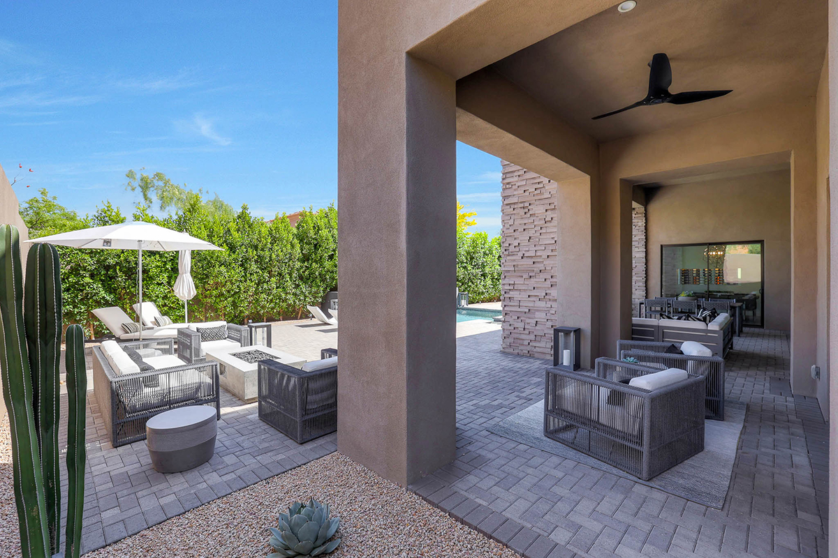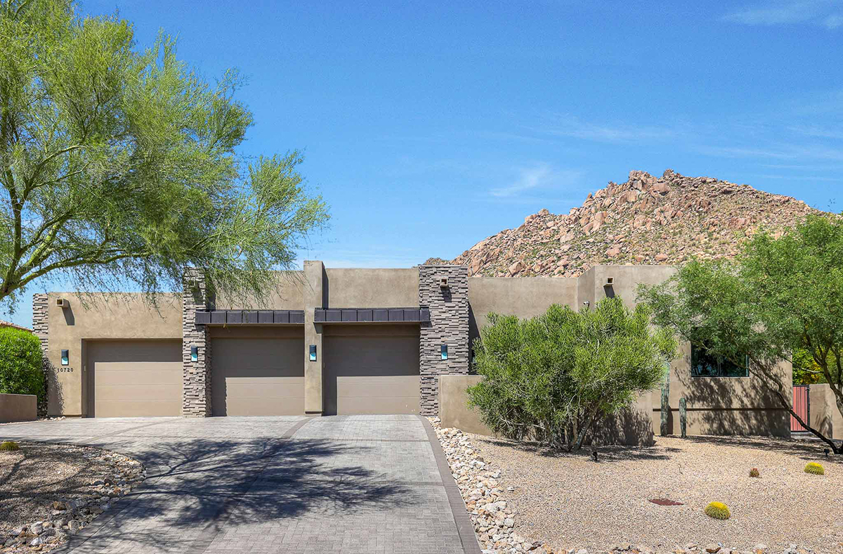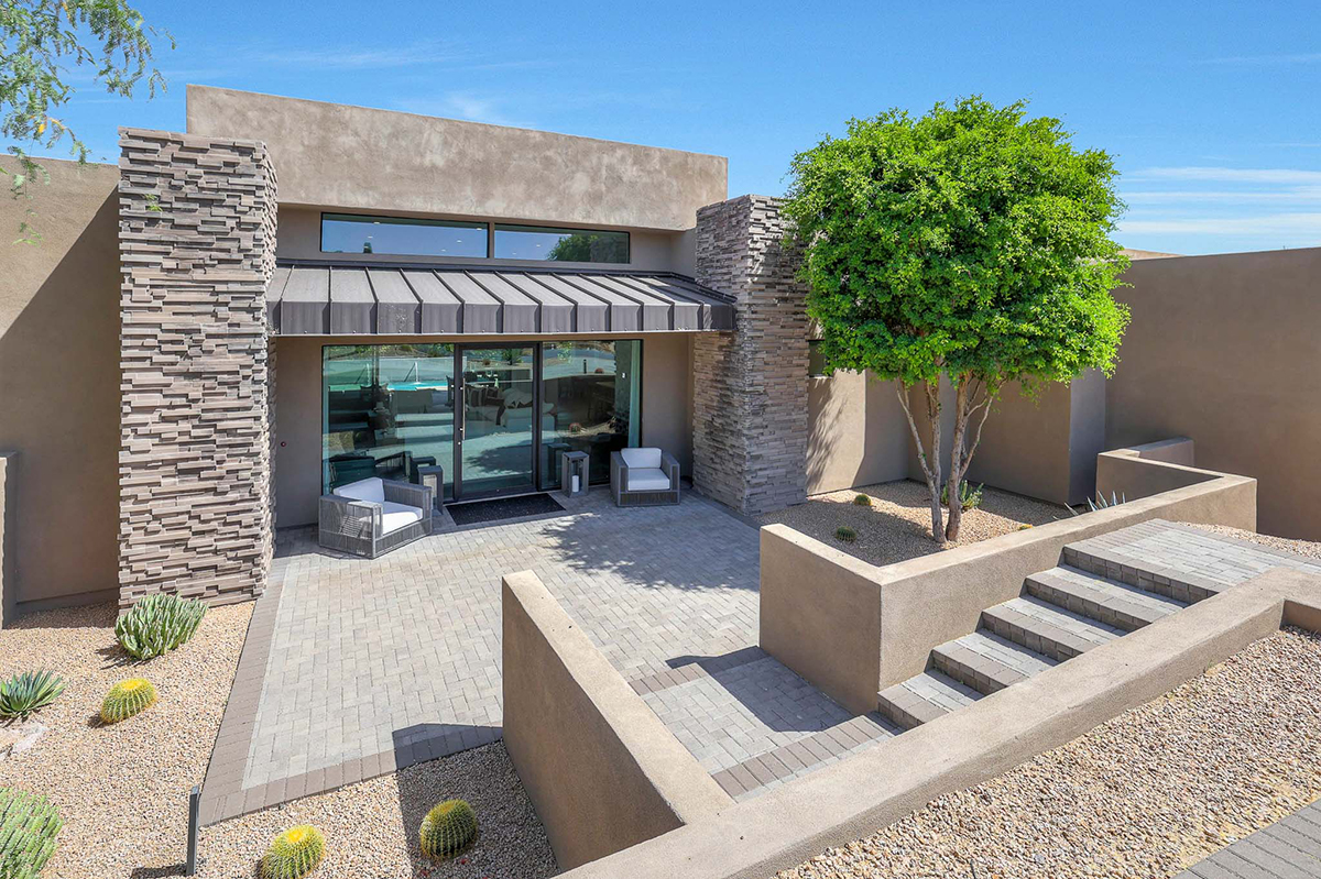 Welcome home to this modern desert dwelling, completed in 2017 and featuring a single level, no steps, perfectly sized 3,046 square foot split floor plan. Offered completely turn key, enjoy the custom designed Restoration Hardware furnishings from this meticulously kept home. Located in the guard gated community of Artesano at Troon Village which is adjacent to the Troon Village Country Club and within walking distance.
