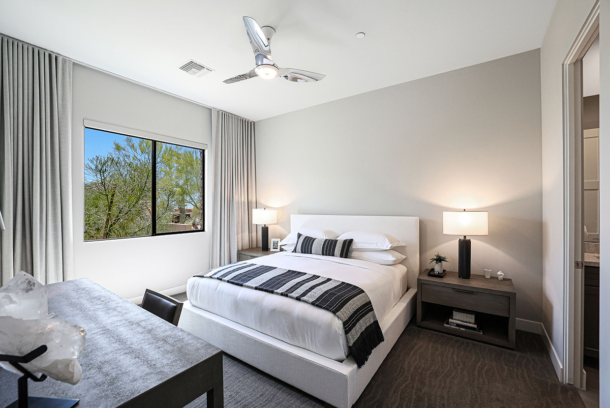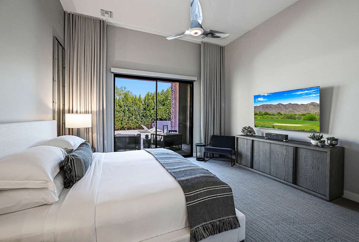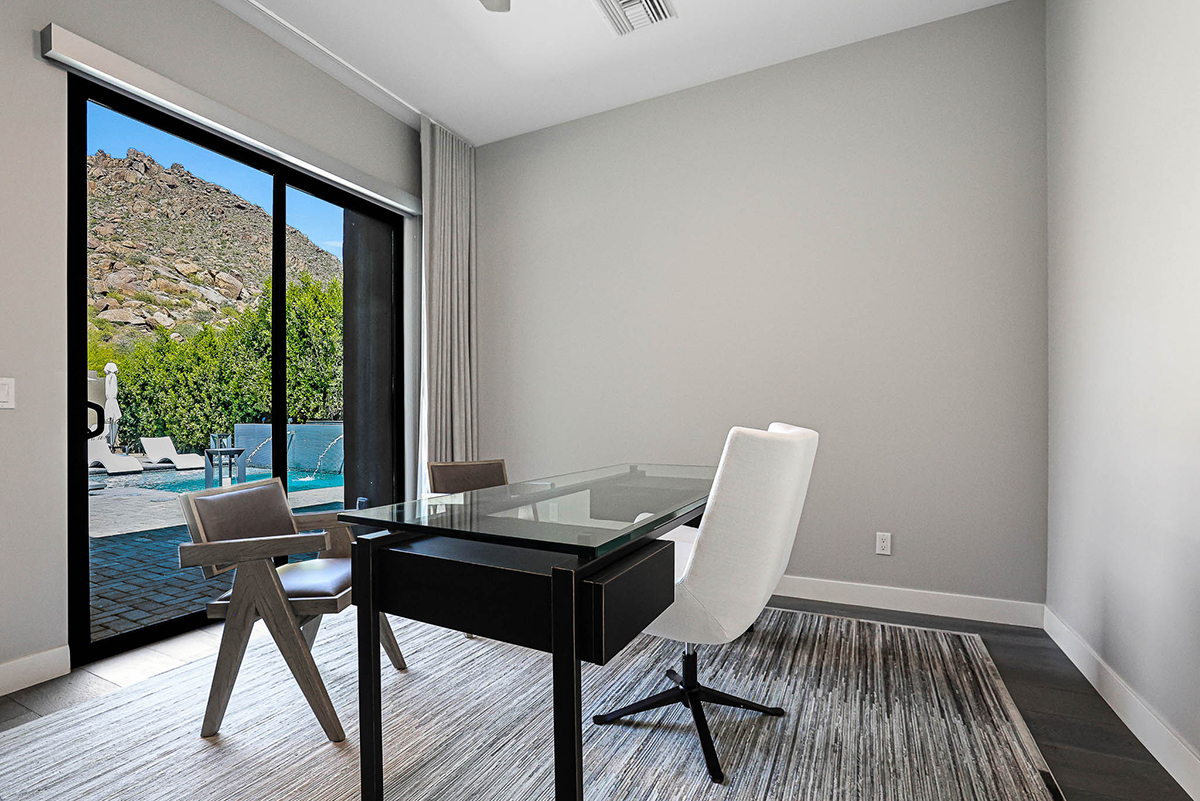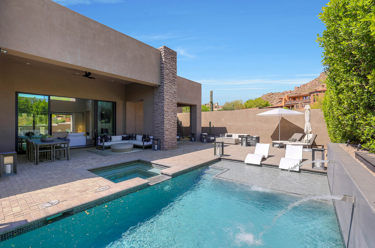 Welcome home to this modern desert dwelling, completed in 2017 and featuring a single level, no steps, perfectly sized 3,046 square foot split floor plan. Offered completely turn key, enjoy the custom designed Restoration Hardware furnishings from this meticulously kept home. Located in the guard gated community of Artesano at Troon Village which is adjacent to the Troon Village Country Club and within walking distance.