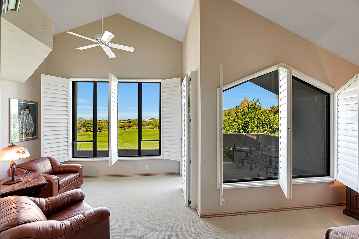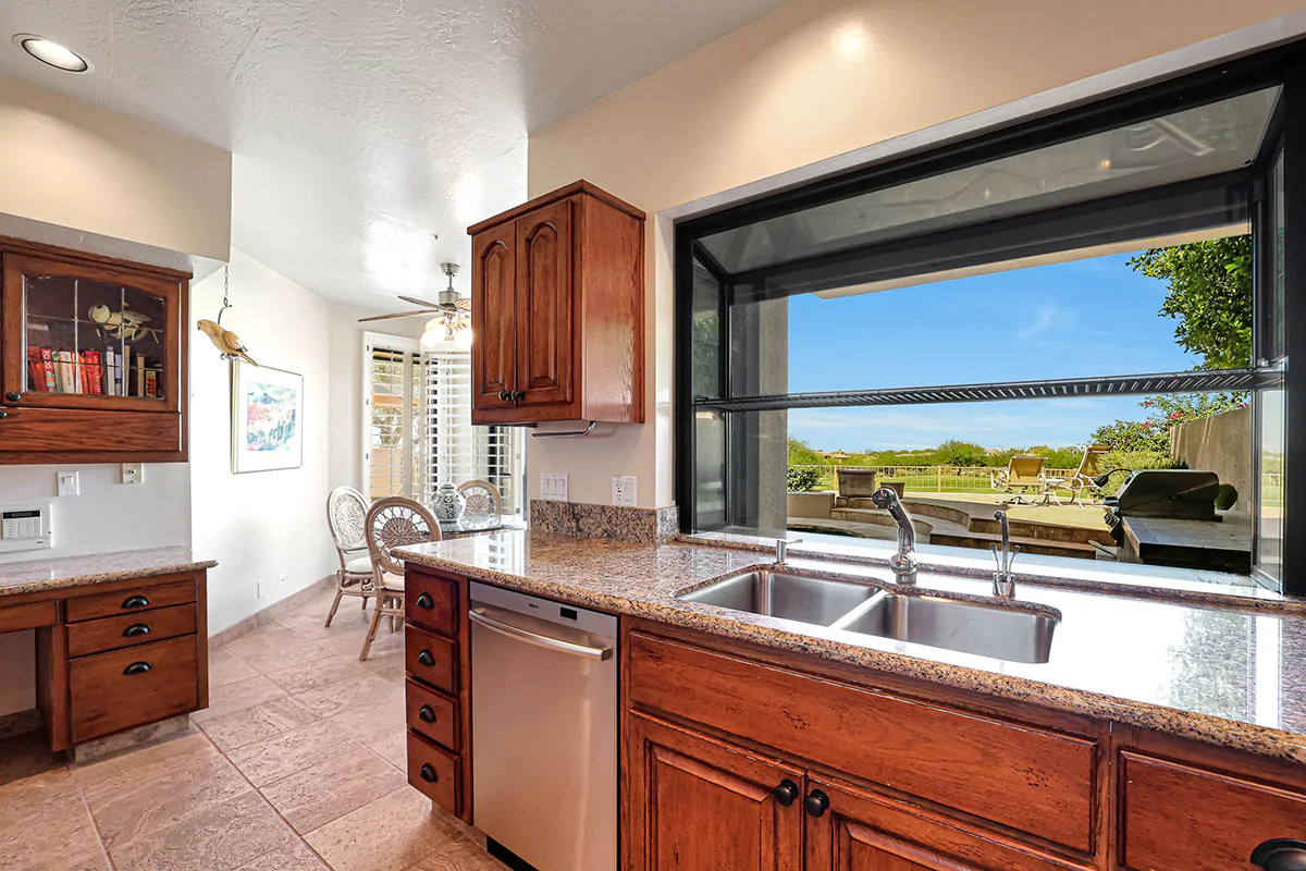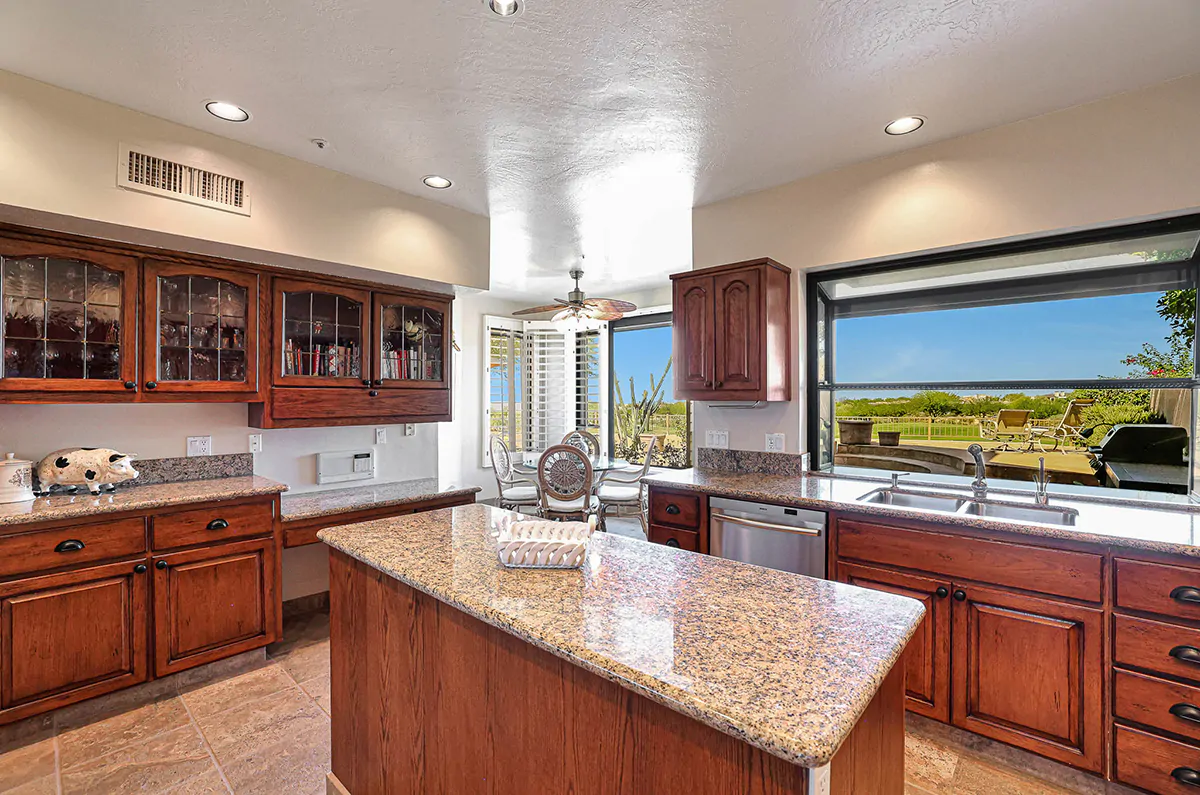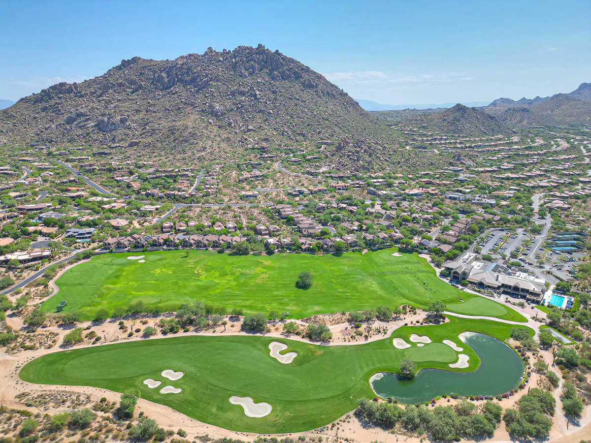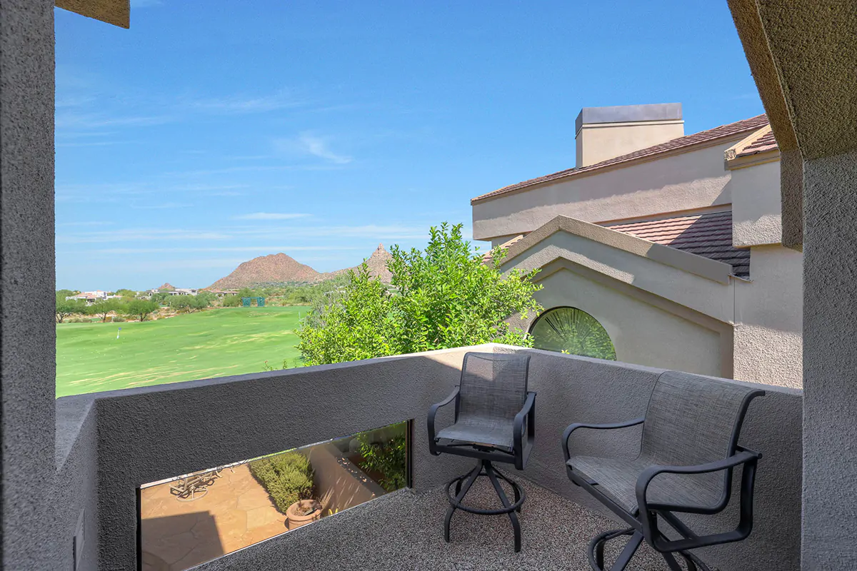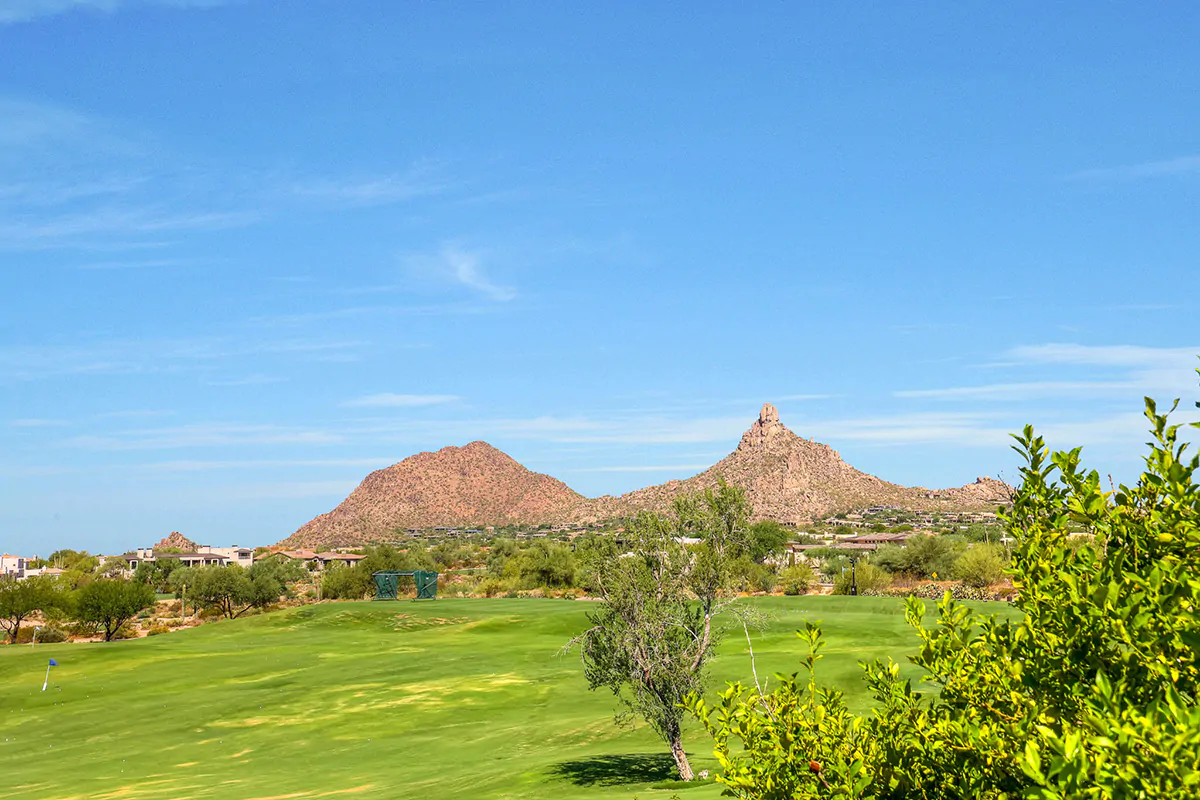 Welcome to this well-maintained, guard-gated residence nestled in the Ballantrae Ridge enclave of Troon Village. Enjoy direct views of the iconic Pinnacle Peak in your backyard, while the front of the house offers a picturesque sight of Troon Mountain. What’s more, this home’s unique location places you right along the private Troon Country Club driving range, providing a constant backdrop of lush greenery.