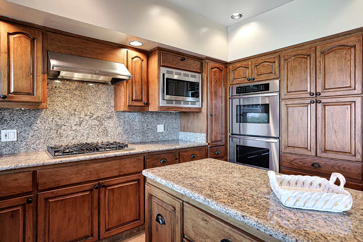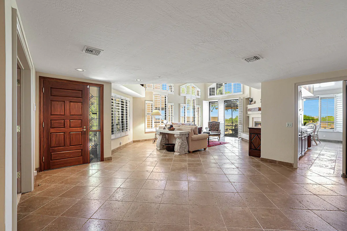 When you step inside from the private entry way, a centerpiece fireplace anchoring the great room and windows spanning two walls, flood the space with natural light and provide sweeping golf course views. Tumbled travertine floors grace the lower level, while plantation shutters adorn the windows throughout the home. The kitchen is a private retreat, featuring a charming breakfast nook, granite countertops and backsplash, stainless steel appliances including double wall ovens and a gas cooktop, and convenient exterior access. Other notable spaces include a formal dining room, a powder bath, and a direct entry laundry room accessible from the two-car garage. This property is ready for you to make it your own!