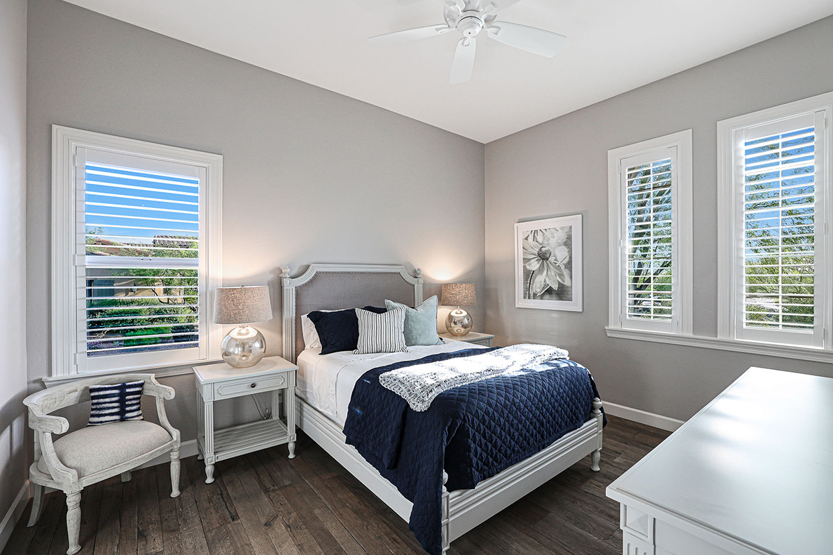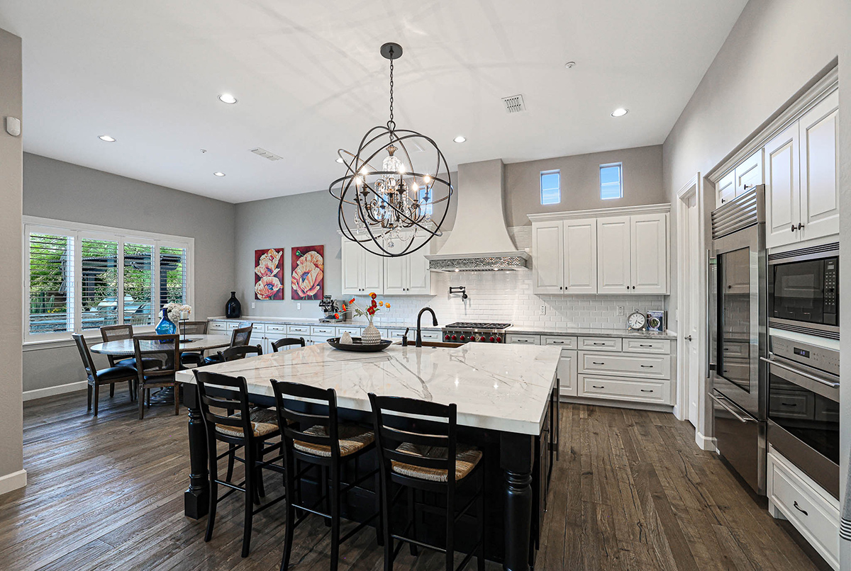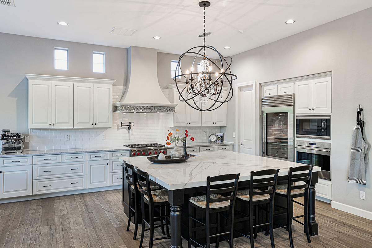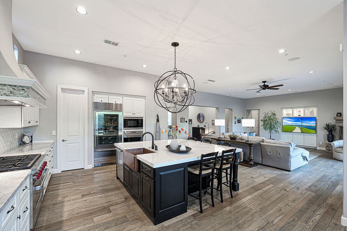 Inside the home, you’ll find authentic wood floors and designer two-tone paint throughout the 3,411 square feet of living space. The main home boasts three bedrooms, two full baths, and a powder bath, while the separate entry attached casita adds an additional bedroom and bath for a total of four bedrooms and three and a half baths.