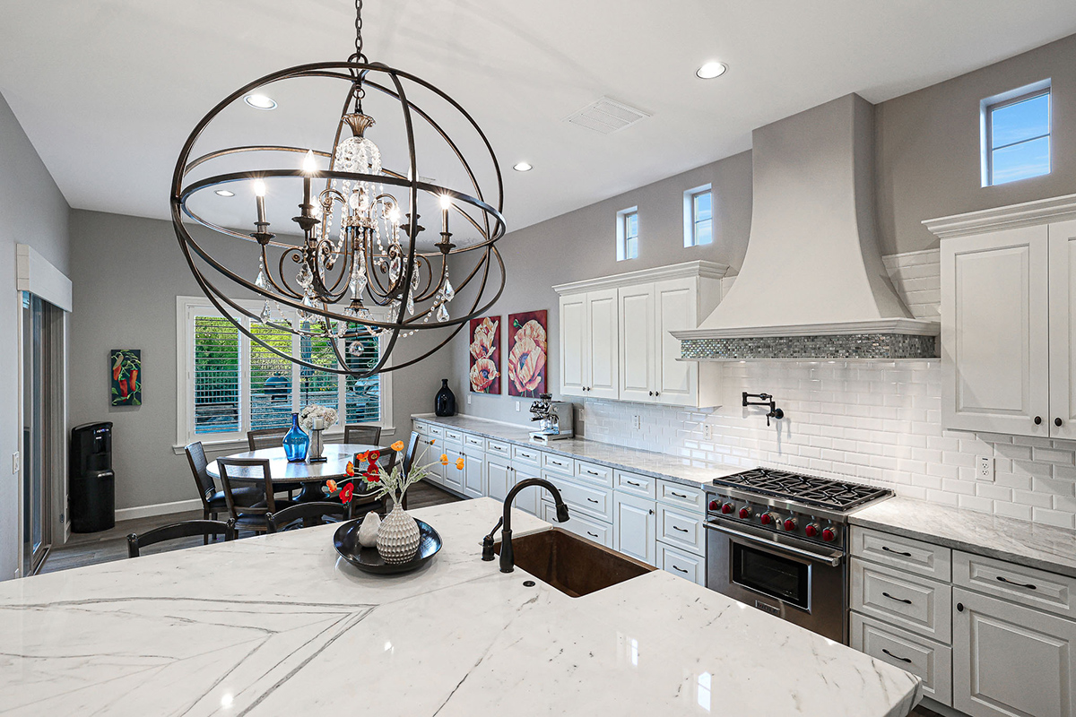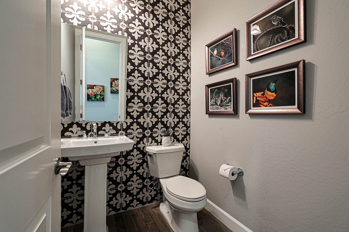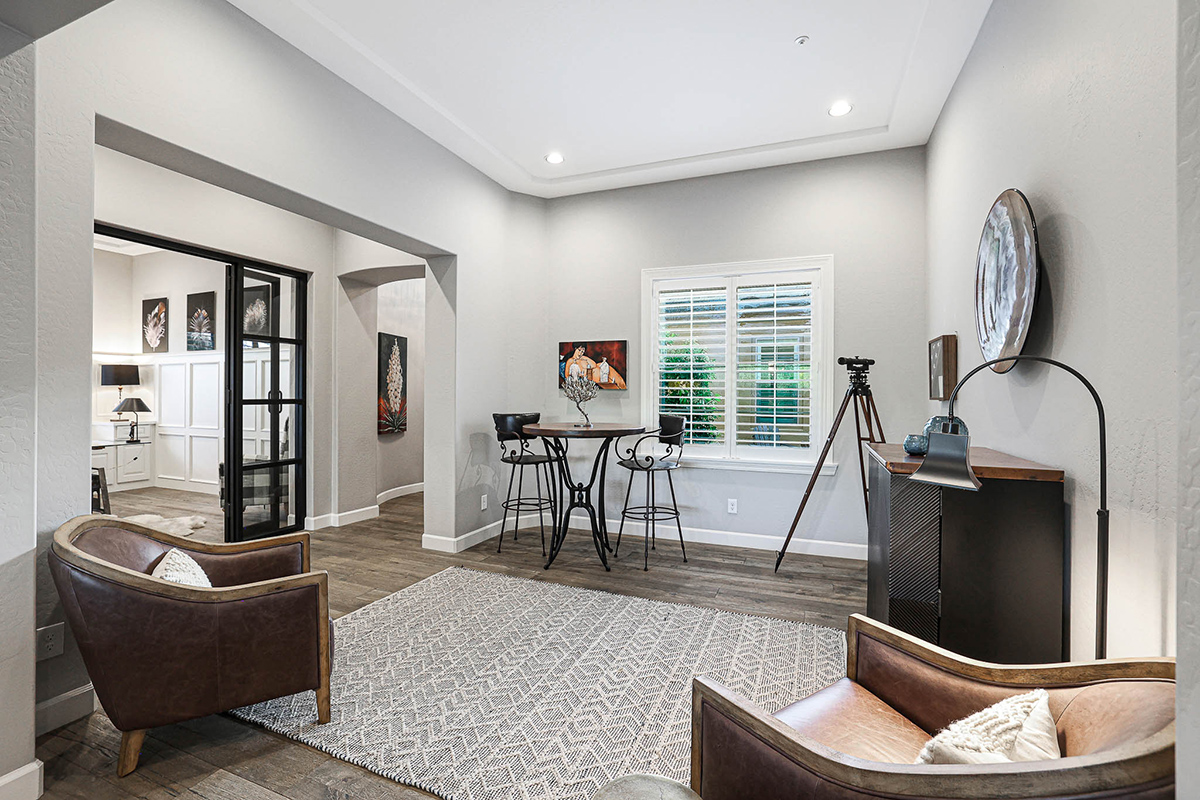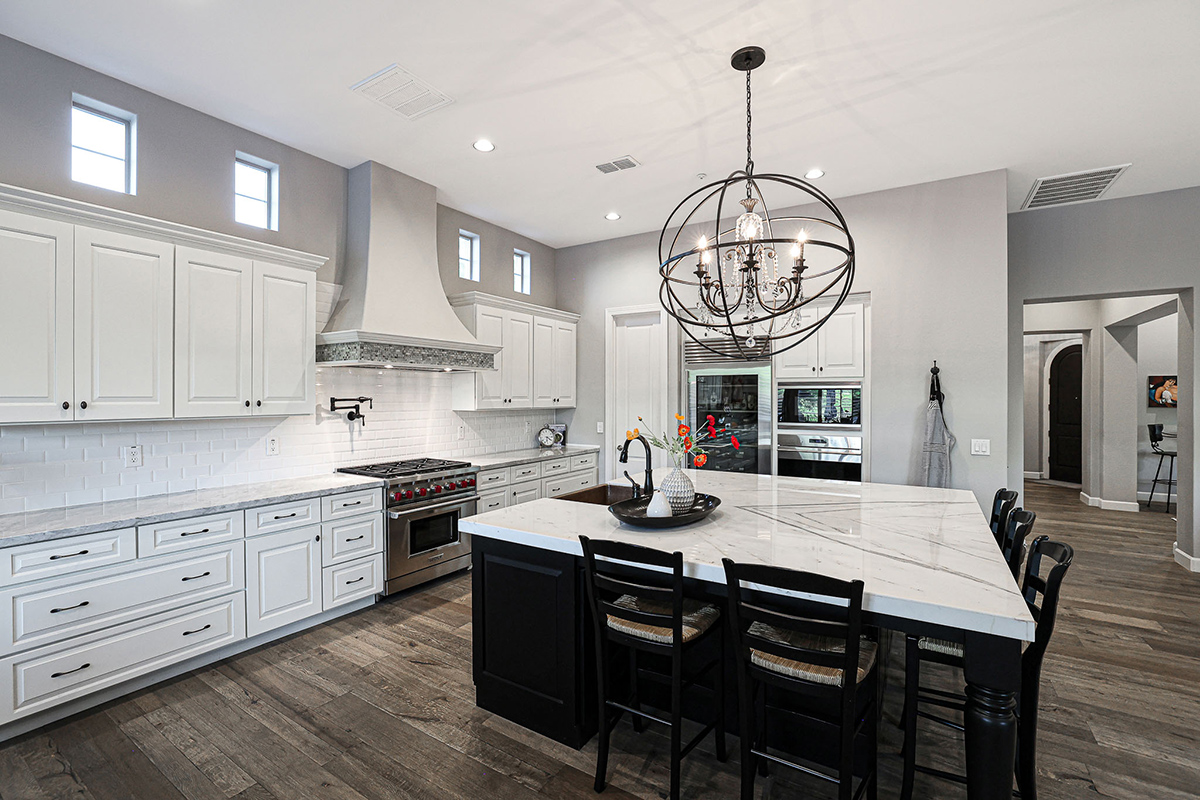 Inside the home, you’ll find authentic wood floors and designer two-tone paint throughout the 3,411 square feet of living space. The main home boasts three bedrooms, two full baths, and a powder bath, while the separate entry attached casita adds an additional bedroom and bath for a total of four bedrooms and three and a half baths.