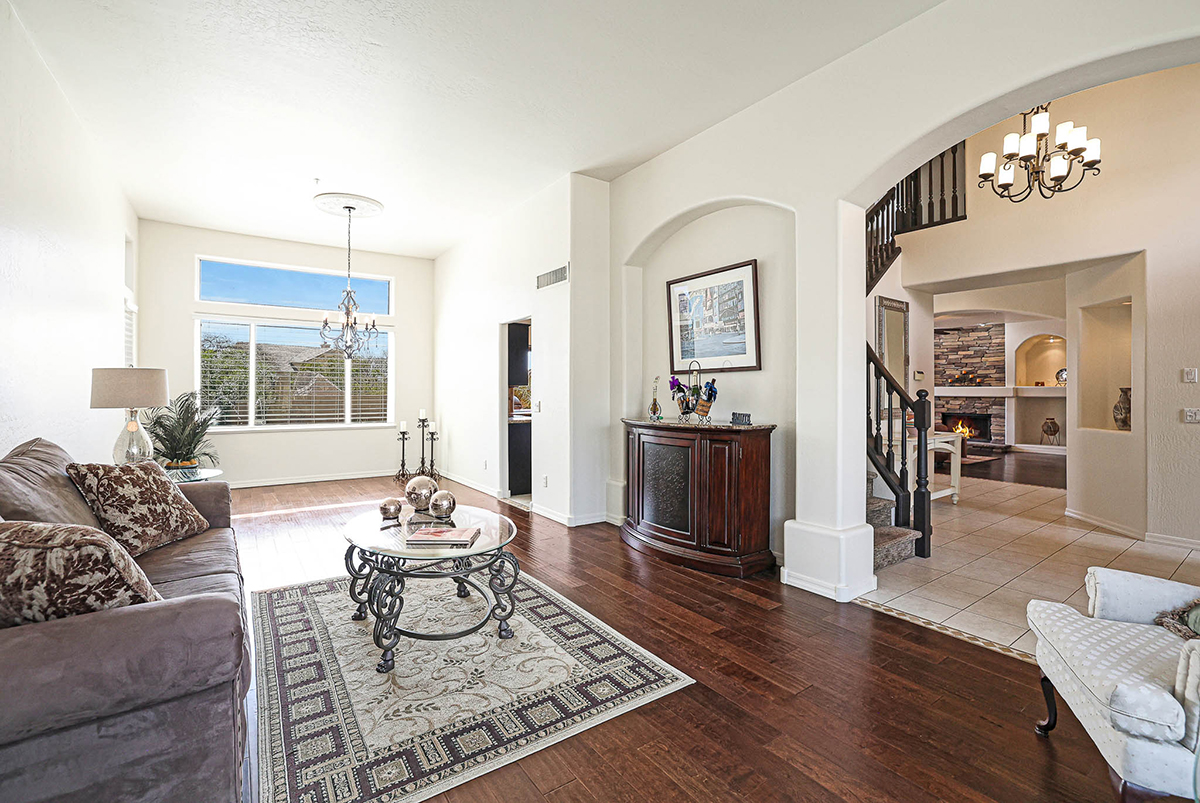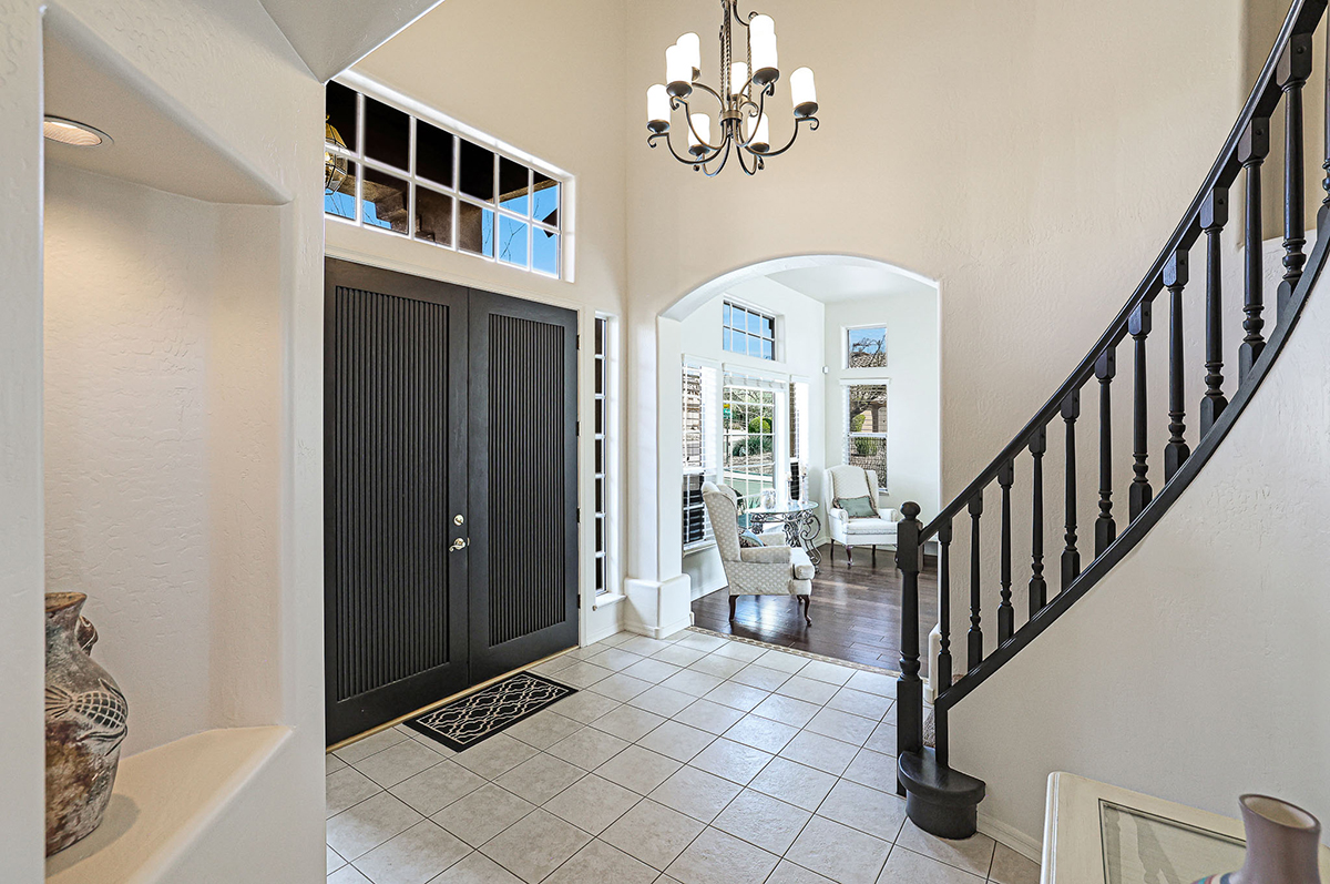 Welcome to this Santa Barbara feel, Troon North home located inside Echo Ridge and perfectly situated on a corner cul-de-sac lot! Echo Ridge neighborhood has sidewalk lined streets and hiking paths within walking distance from the house. As you step inside, you will be greeted by a dedicated entryway with soaring ceilings and a grand staircase. Living spaces downstairs include formal living room and dining room, great room style family room and kitchen space, laundry with work sink and exterior access, and a powder bath for visiting guests.