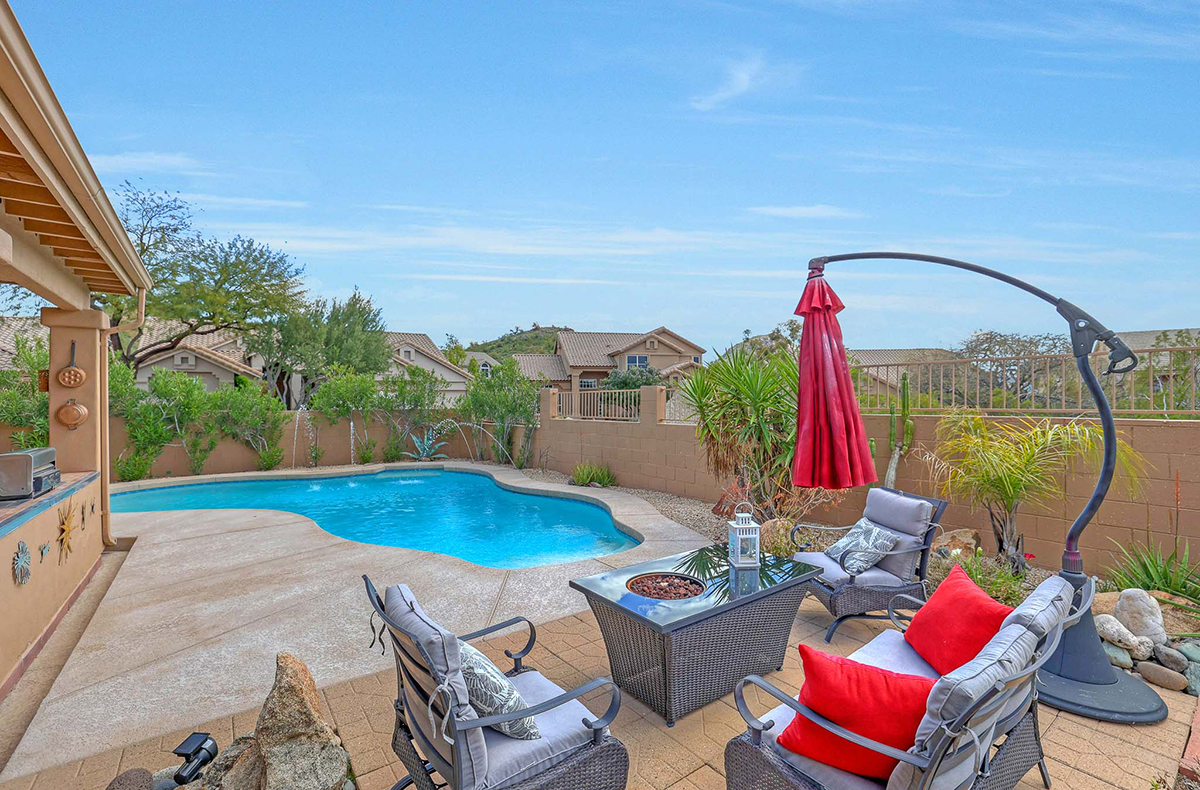 As a Troon North resident you will have access to the park off of 93rd street and DynamiteBlvd which has tennis courts, shaded playground, grassy area, picnic shades, and restrooms. “Doc” Cavalliere Park is within walking distance for additional hiking trails, playground, two basketball courts, and picnic areas. Furniture available by separate bill of sale.