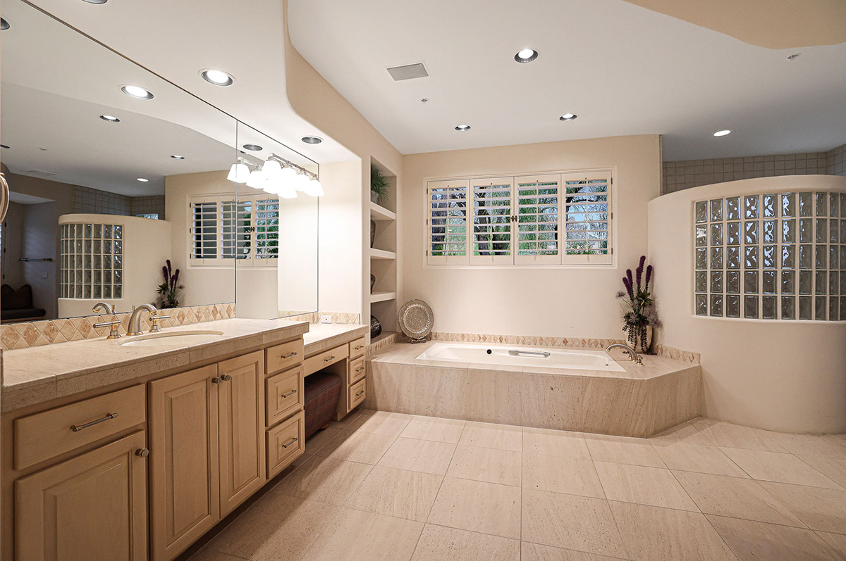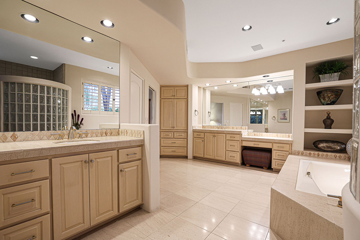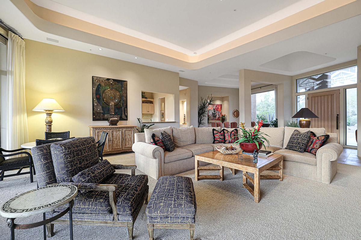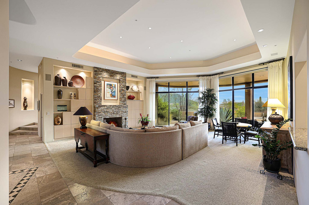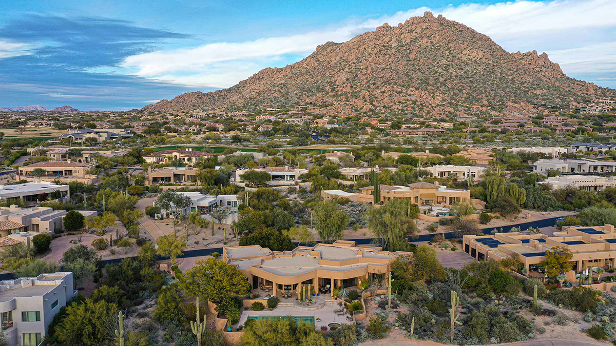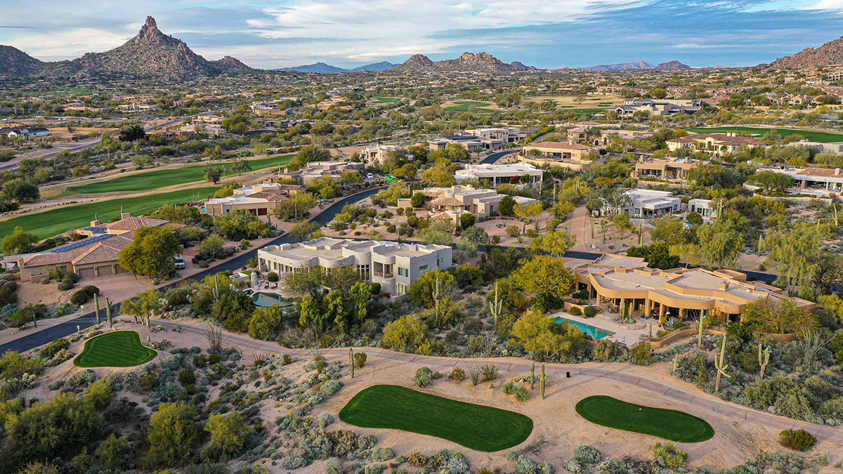 Beautiful Southwest Contemporary inspired home in guard gated Glenn Moor at Troon Village is ready for the next homeowner! Enjoy views of Troon Mountain and Pinnacle Peak from the front and McDowell mountains out the back from this well positioned home. The southern exposure backyard has a large covered patio for multiple lounge and dining spaces, a large rectangular heated lap pool, separate spa, travertine and cool deck surfaces, and mature landscaping including fruit trees. Pride of ownership from the original owners is showcased throughout the 4,242 square feet of well laid out living space. The primary suite features a large walk-in closet with built-ins, exterior access, and a spa-like bath with soaking tub, dual vanities, separate shower, and a private water closet with bidet.