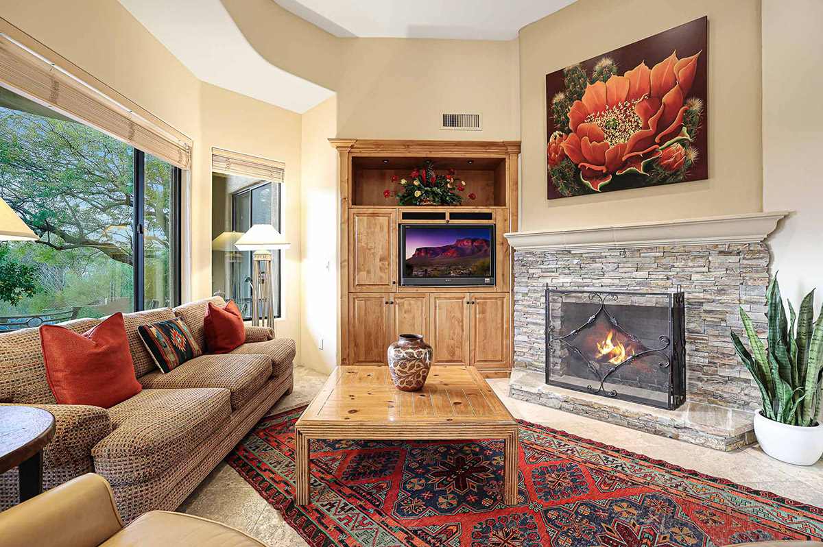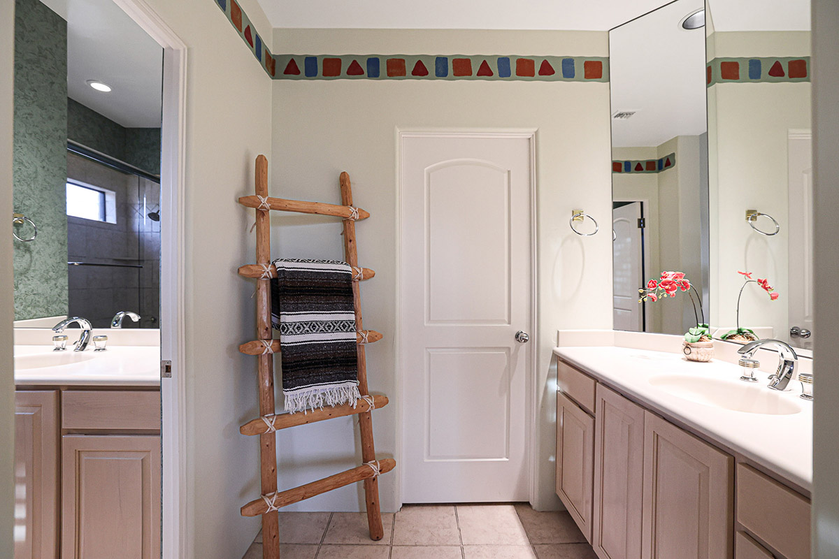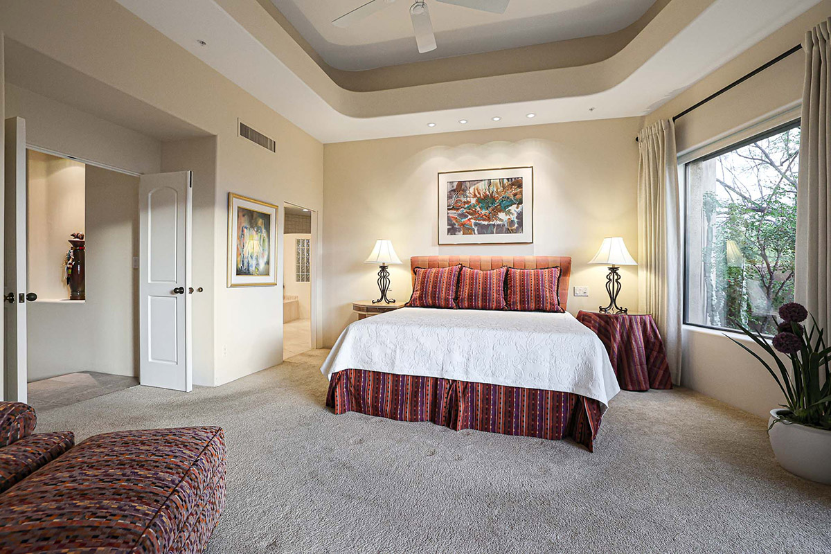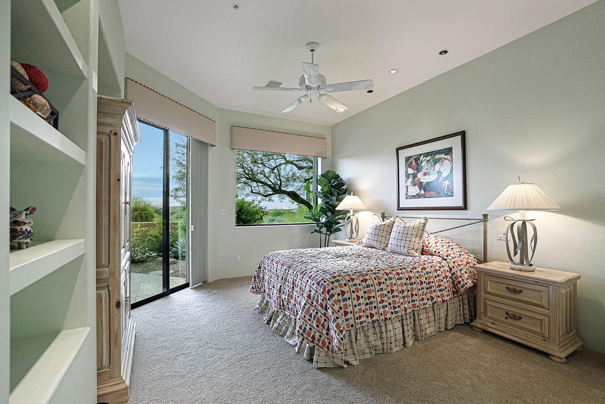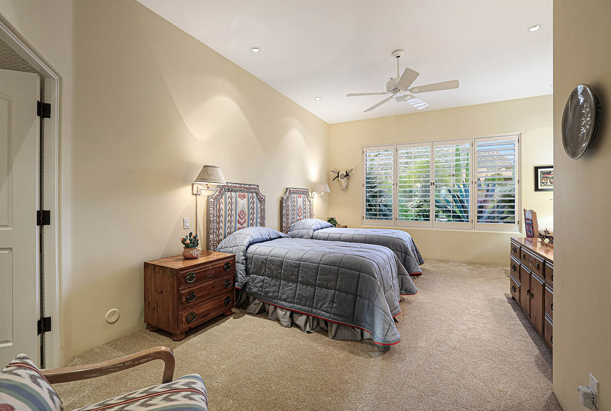 Adjacent to the primary bedroom is an office/den that could easily be used as an additional guest bedroom, with up close views of Troon Mountain, library built-ins and a closet.
