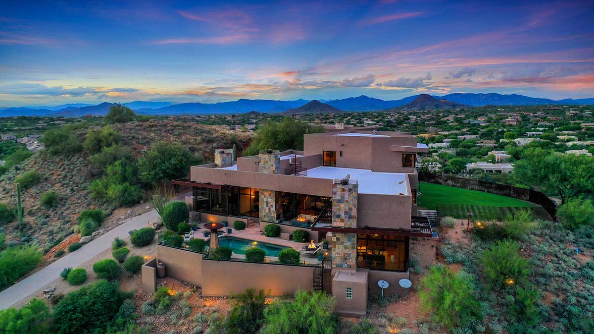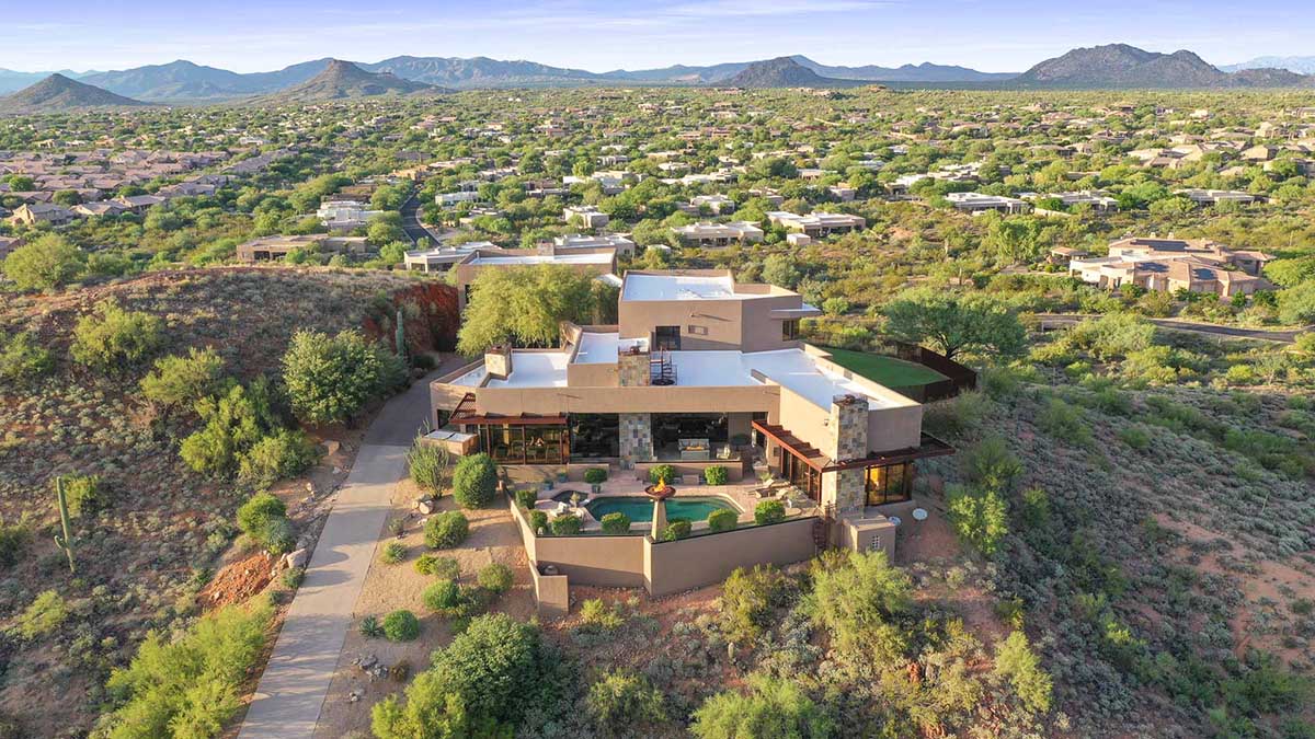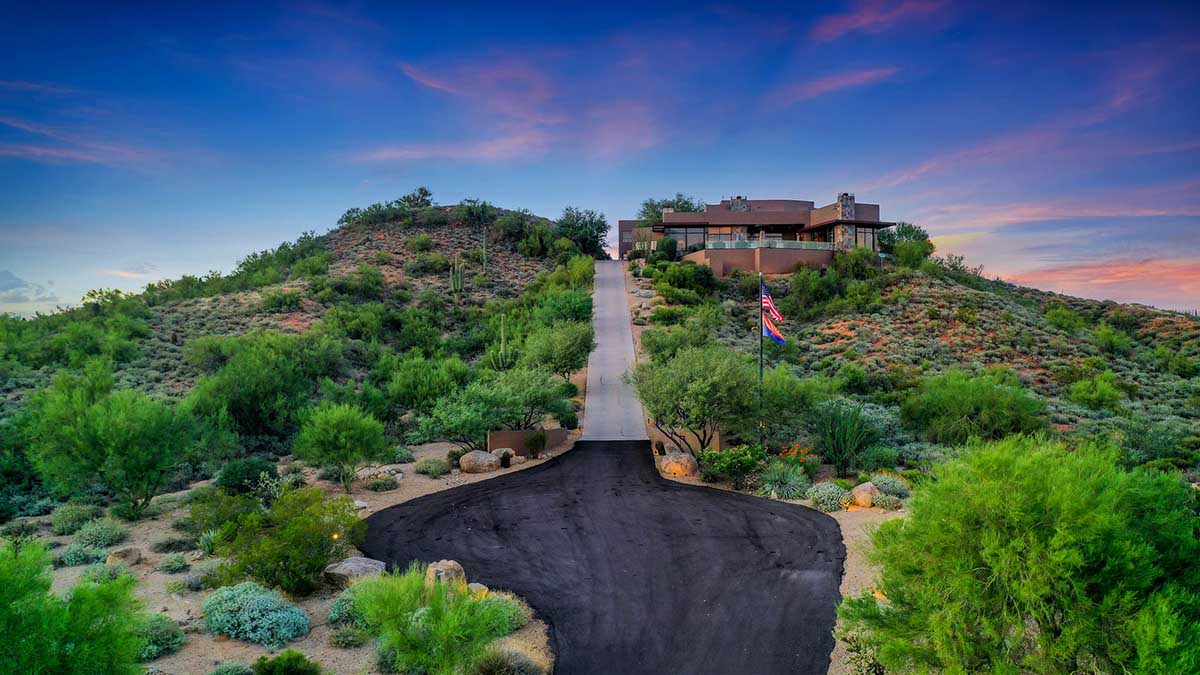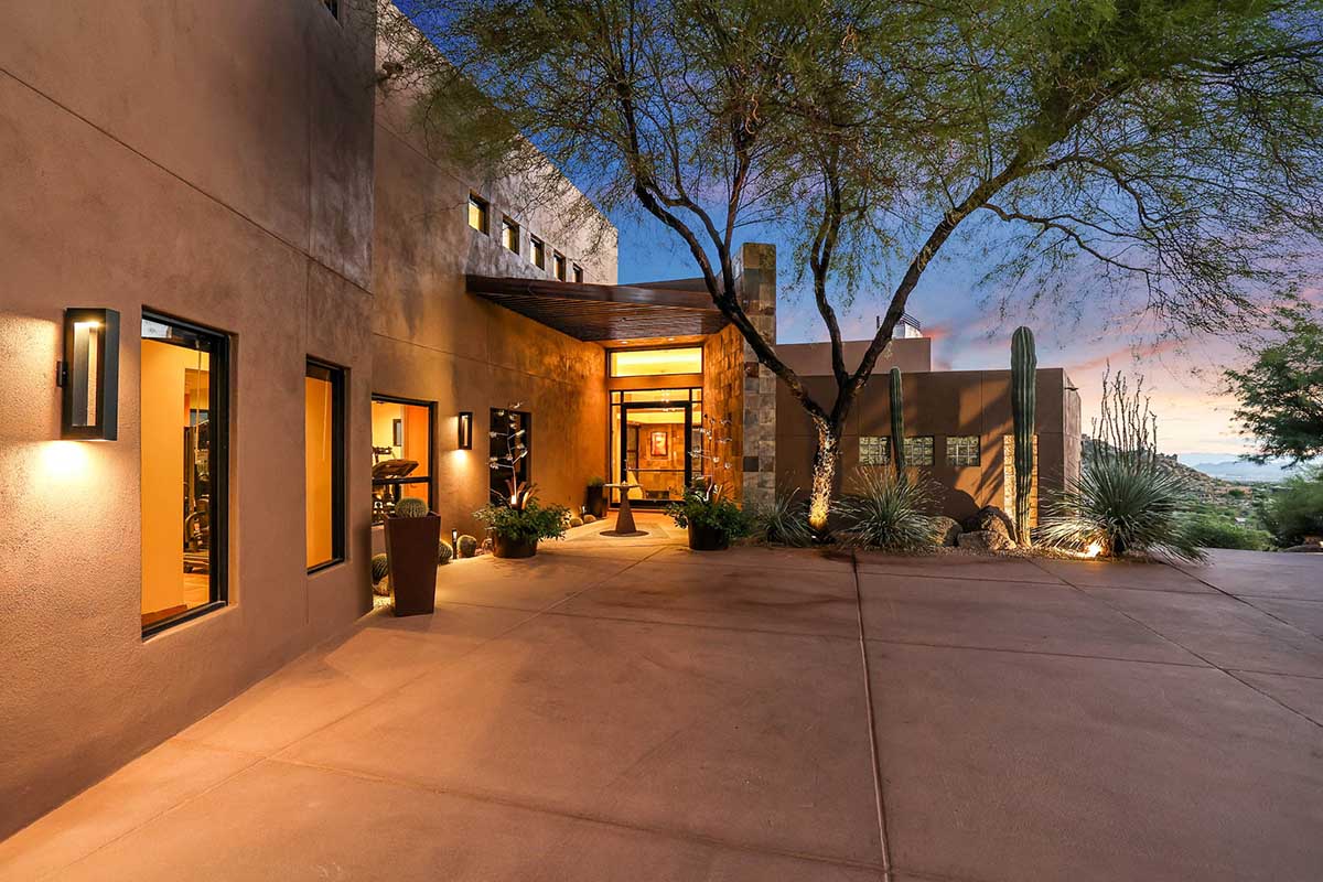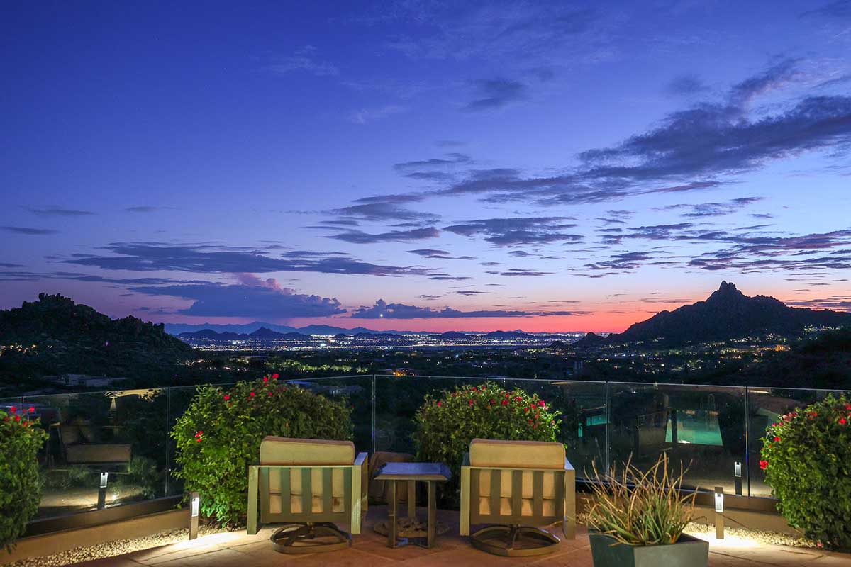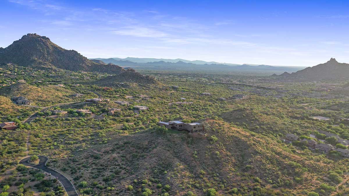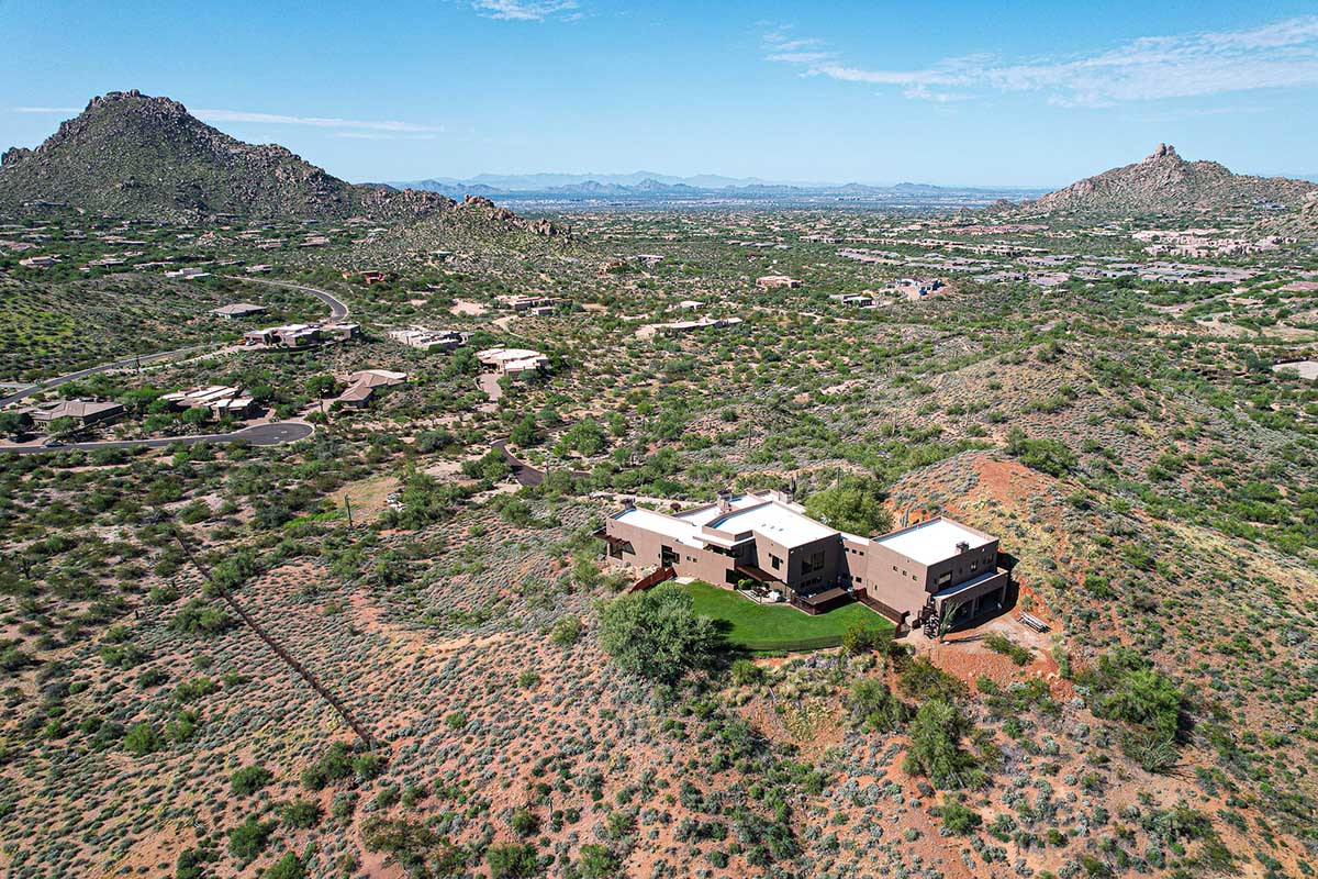 This exquisite Southwest contemporary estate is situated on 5.1 private acres in a stunning one-of-a-kind hilltop location. The home is accessed by approximately 2,000 feet of paved private driveway bordered by elegant perimeter fencing. Rarely does an opportunity to own such a premier home and lot become available which includes nearly 360° unobstructed panoramic views of Pinnacle Peak, city lights, the Four Peaks, Troon Mountain, Piestewa Peak, the Superstition Mountains, Tonto Hills, and Black Mountain.