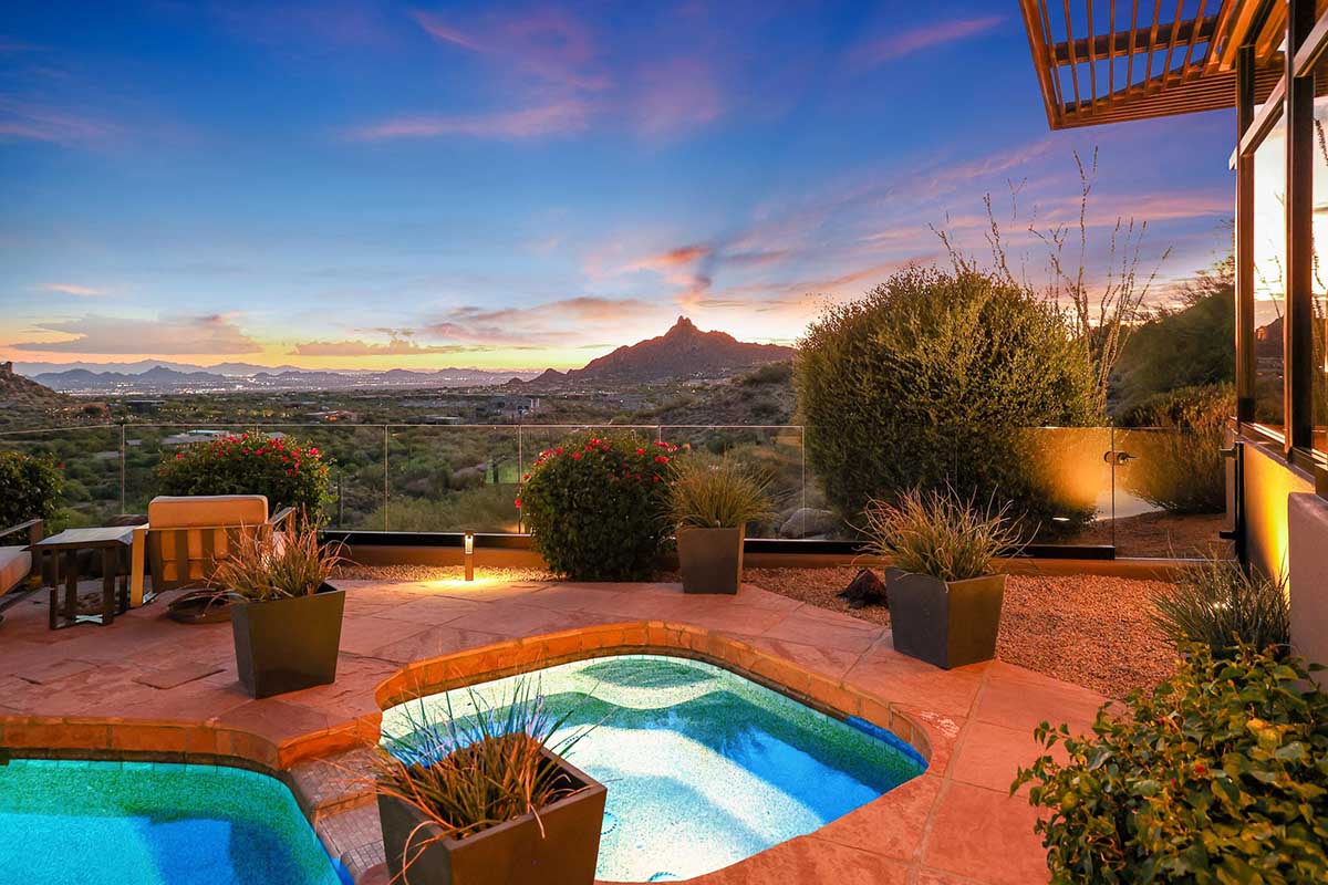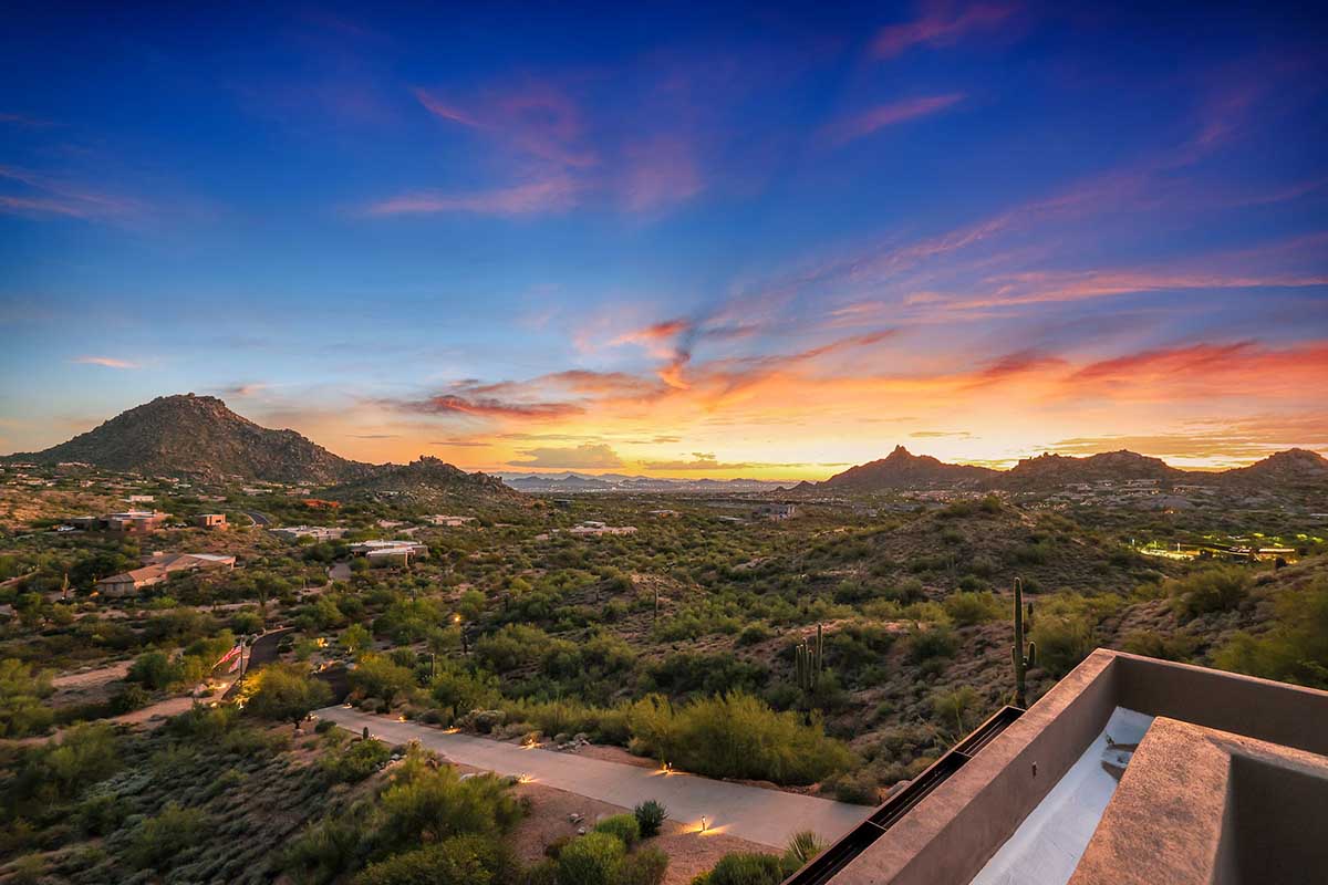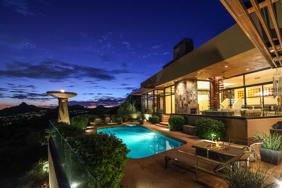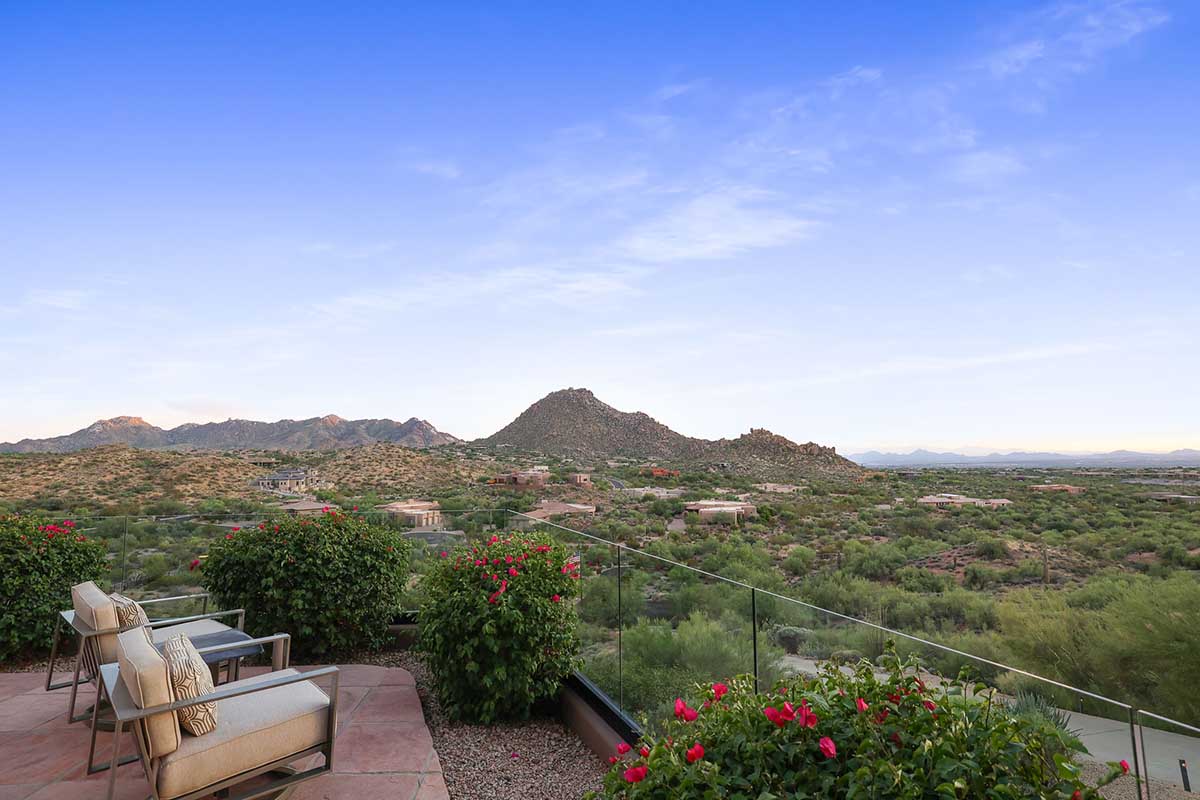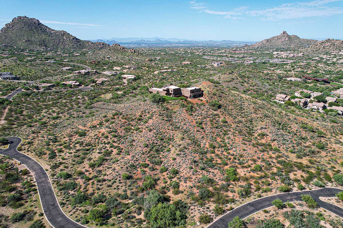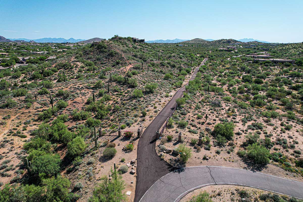 This exquisite Southwest contemporary estate is situated on 5.1 private acres in a stunning one-of-a-kind hilltop location. The home is accessed by approximately 2,000 feet of paved private driveway bordered by elegant perimeter fencing. Rarely does an opportunity to own such a premier home and lot become available which includes nearly 360° unobstructed panoramic views of Pinnacle Peak, city lights, the Four Peaks, Troon Mountain, Piestewa Peak, the Superstition Mountains, Tonto Hills, and Black Mountain.