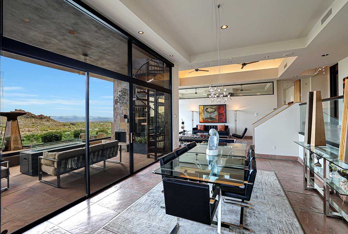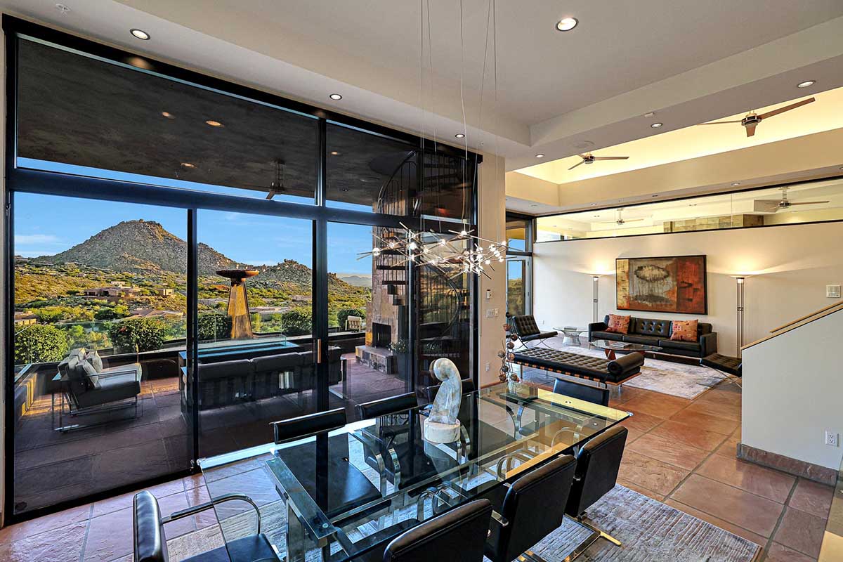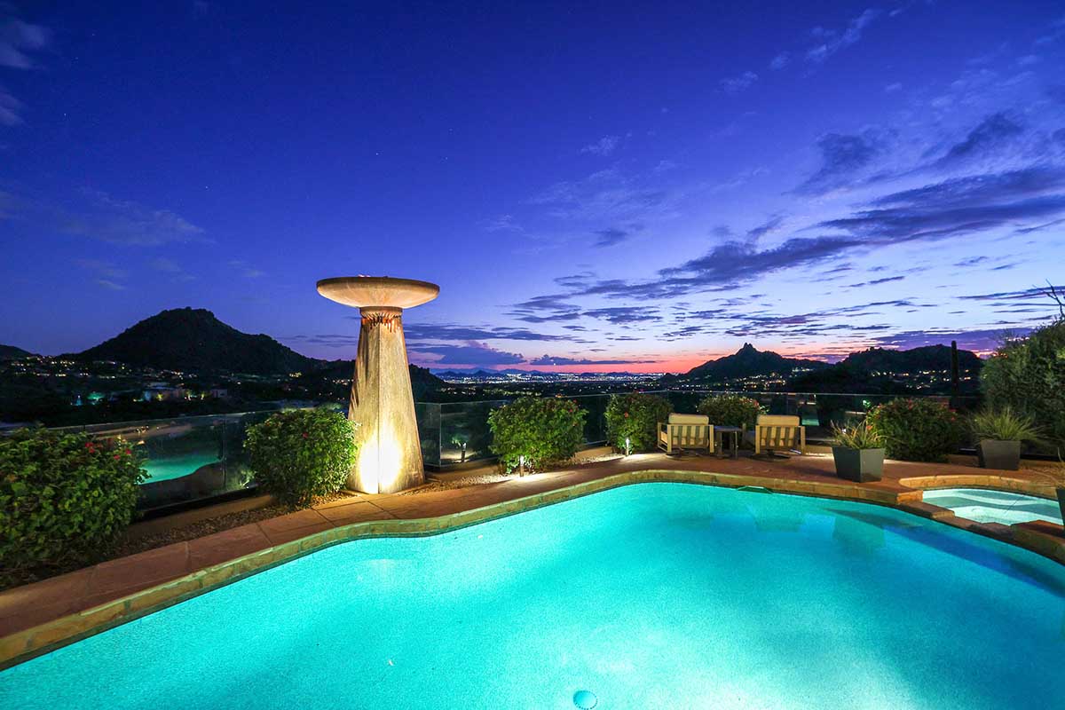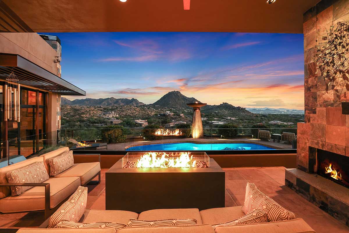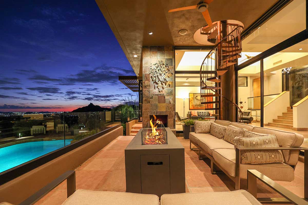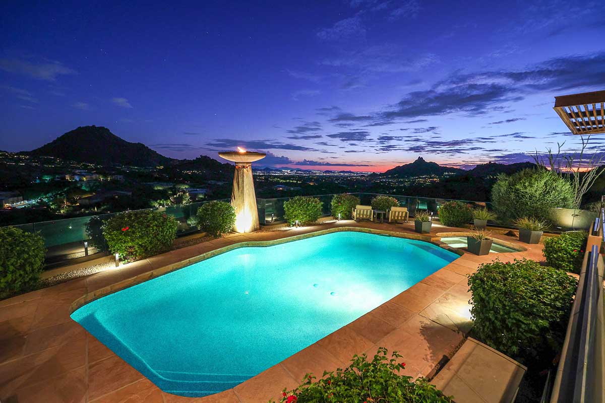 This exquisite Southwest contemporary estate is situated on 5.1 private acres in a stunning one-of-a-kind hilltop location. The home is accessed by approximately 2,000 feet of paved private driveway bordered by elegant perimeter fencing. Rarely does an opportunity to own such a premier home and lot become available which includes nearly 360° unobstructed panoramic views of Pinnacle Peak, city lights, the Four Peaks, Troon Mountain, Piestewa Peak, the Superstition Mountains, Tonto Hills, and Black Mountain.