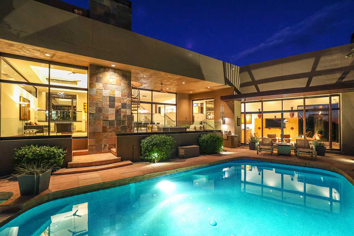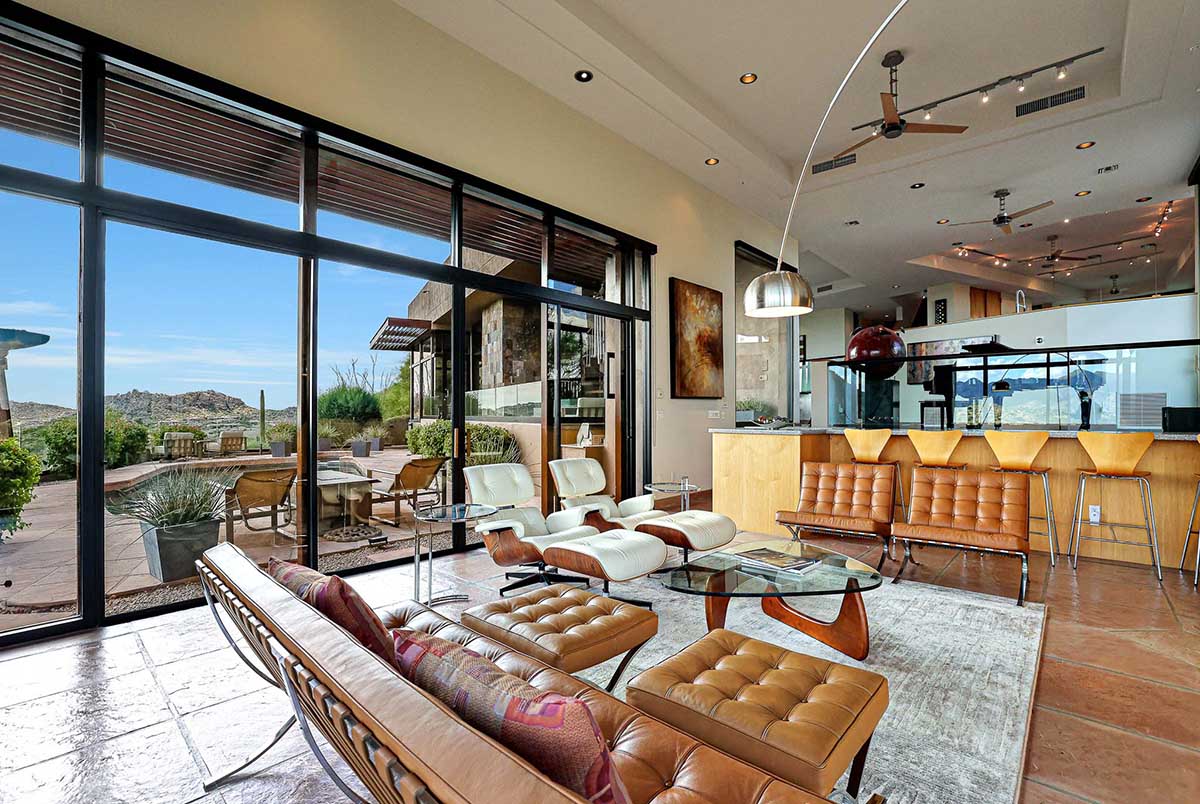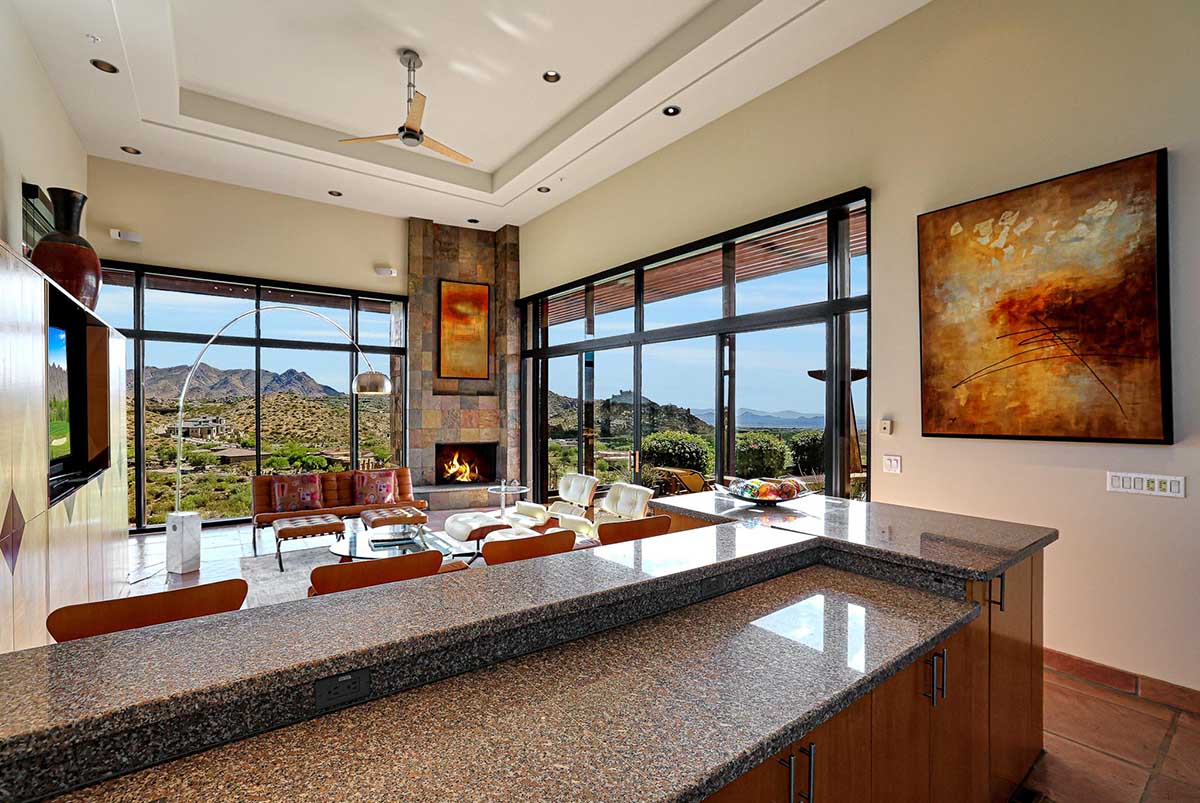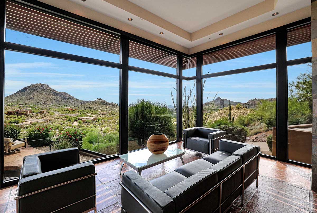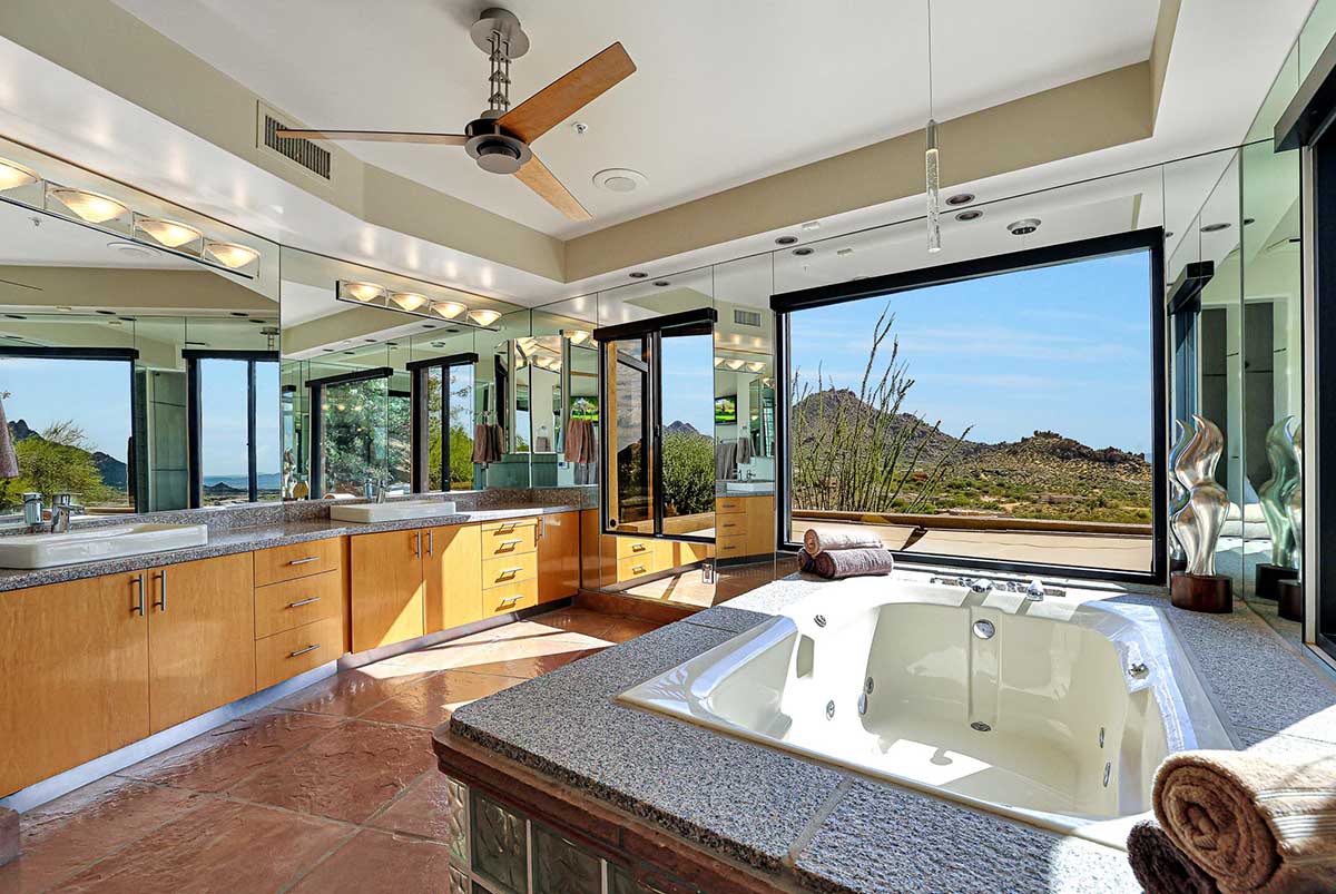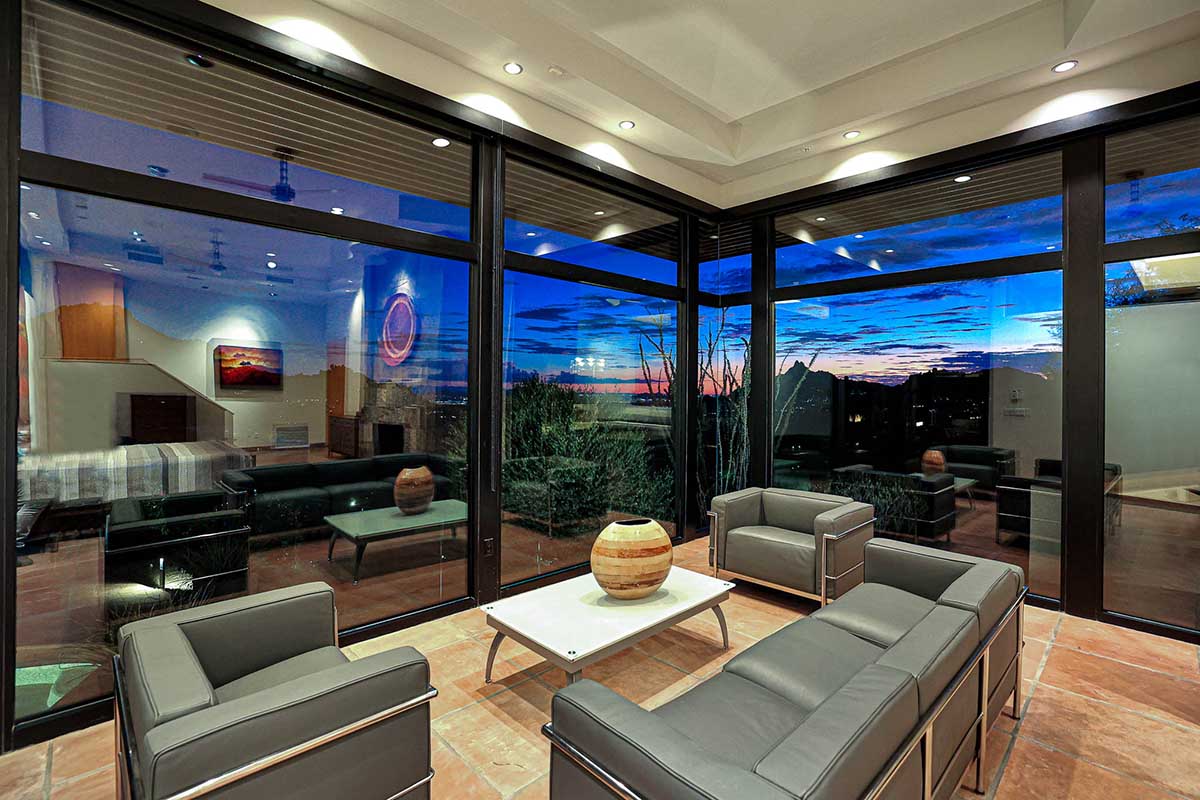 This exquisite Southwest contemporary estate is situated on 5.1 private acres in a stunning one-of-a-kind hilltop location. The home is accessed by approximately 2,000 feet of paved private driveway bordered by elegant perimeter fencing. Rarely does an opportunity to own such a premier home and lot become available which includes nearly 360° unobstructed panoramic views of Pinnacle Peak, city lights, the Four Peaks, Troon Mountain, Piestewa Peak, the Superstition Mountains, Tonto Hills, and Black Mountain.