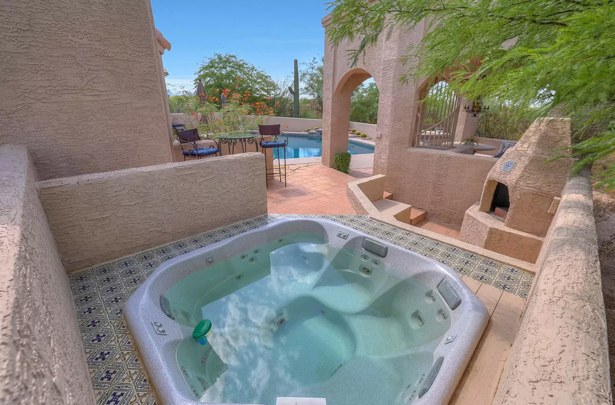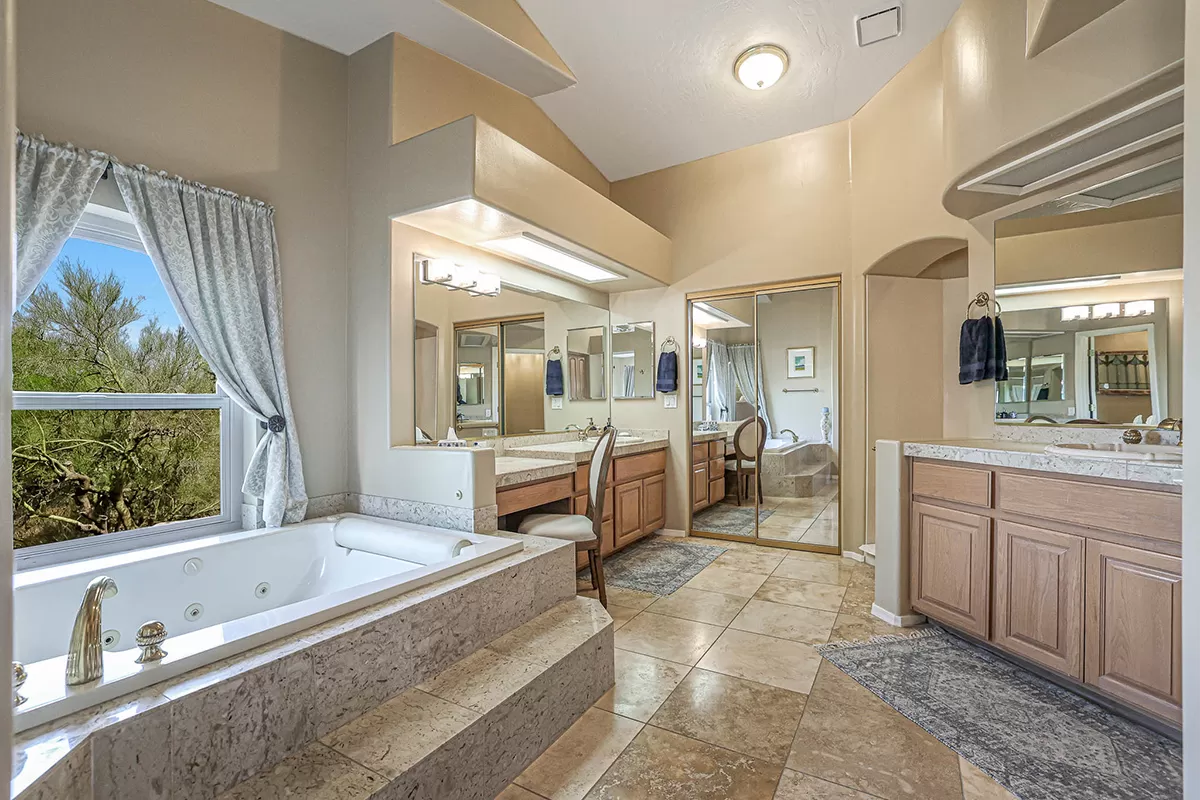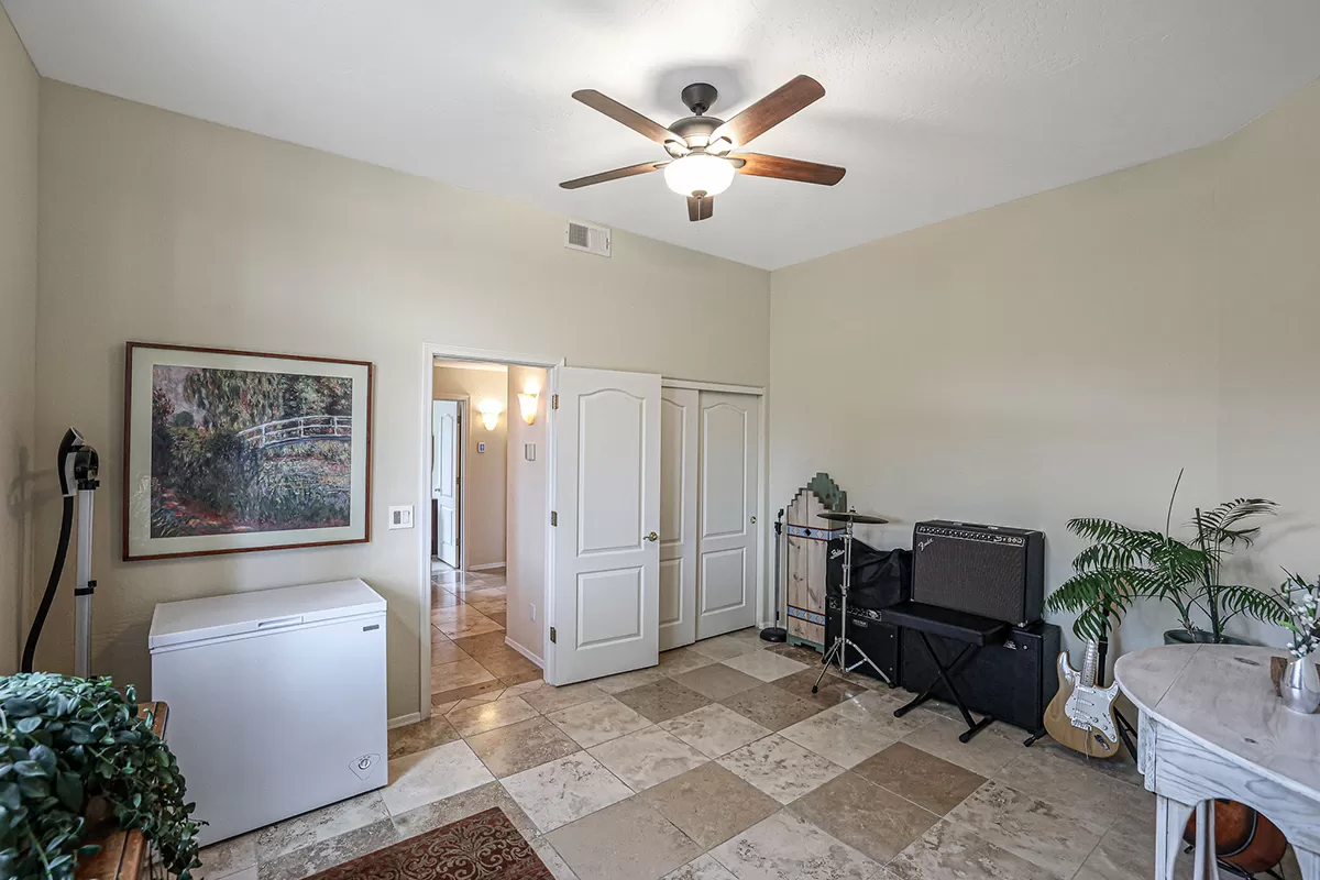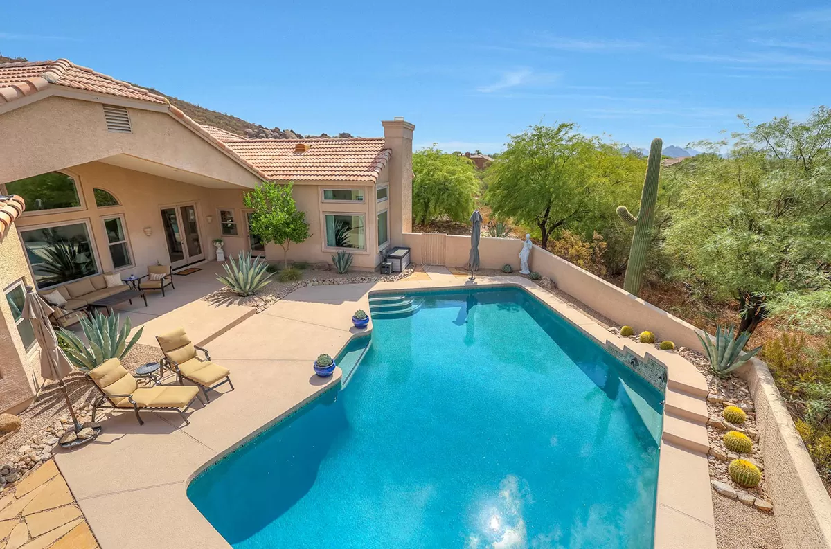 Other features include: Bluetooth-controlled variable speed pool pump with a filter; Installation of modern Energy Star Milgard windows; added ceiling fans; new hot water heater in 2021; WiFi smart thermostats for both HVAC units; Modern LED lighting and dimmer switches throughout; reverse osmosis drinking water system; Three-car garage with evaporative cooler and circle drive for ample parking.