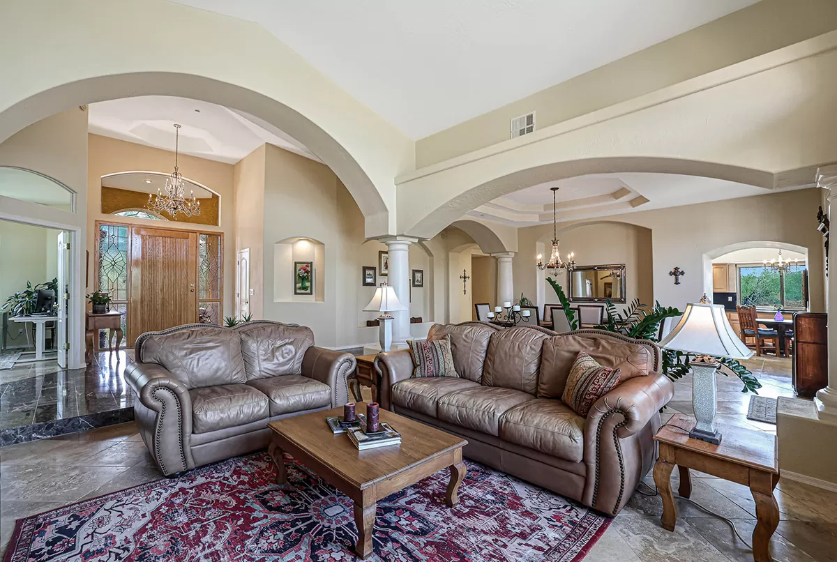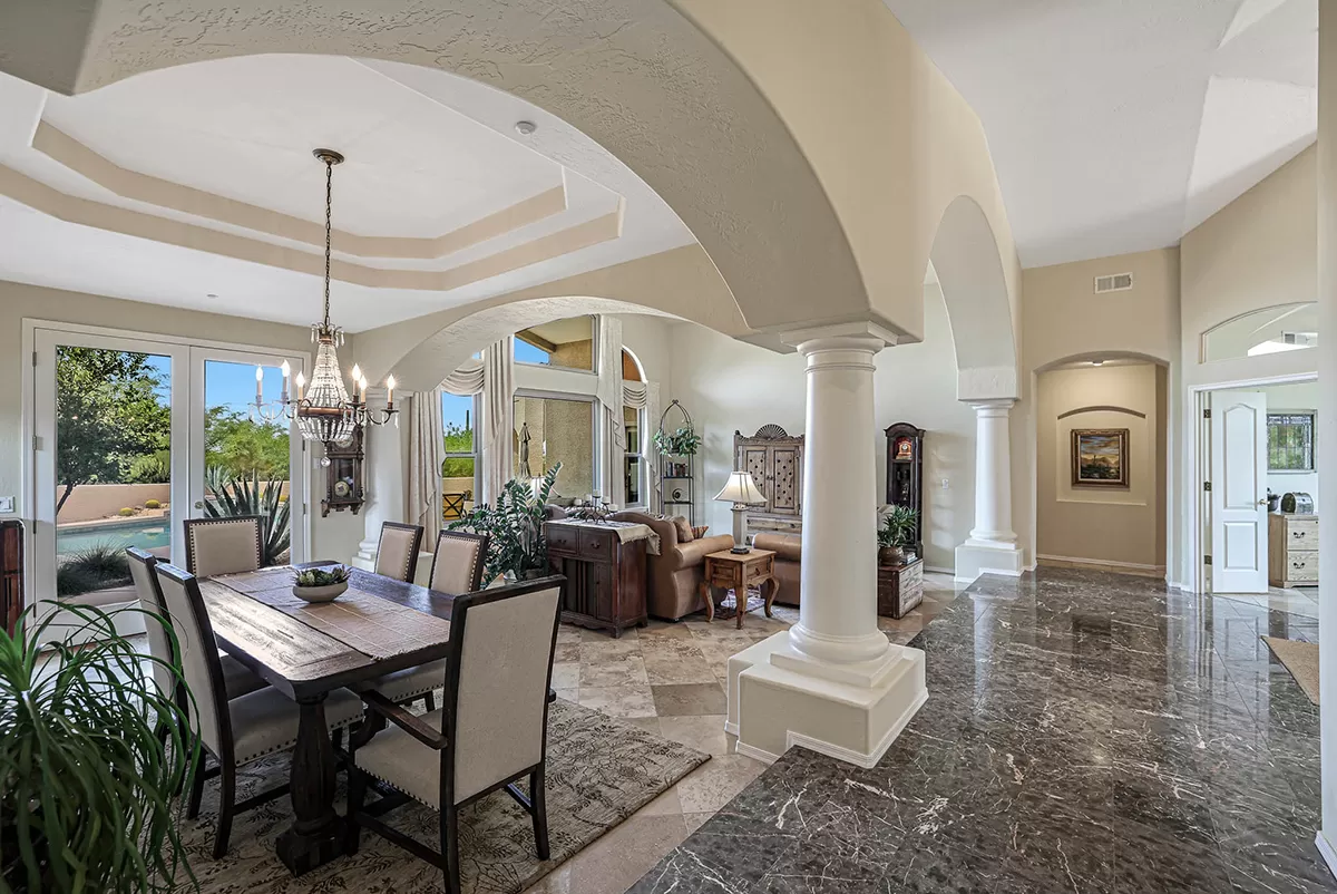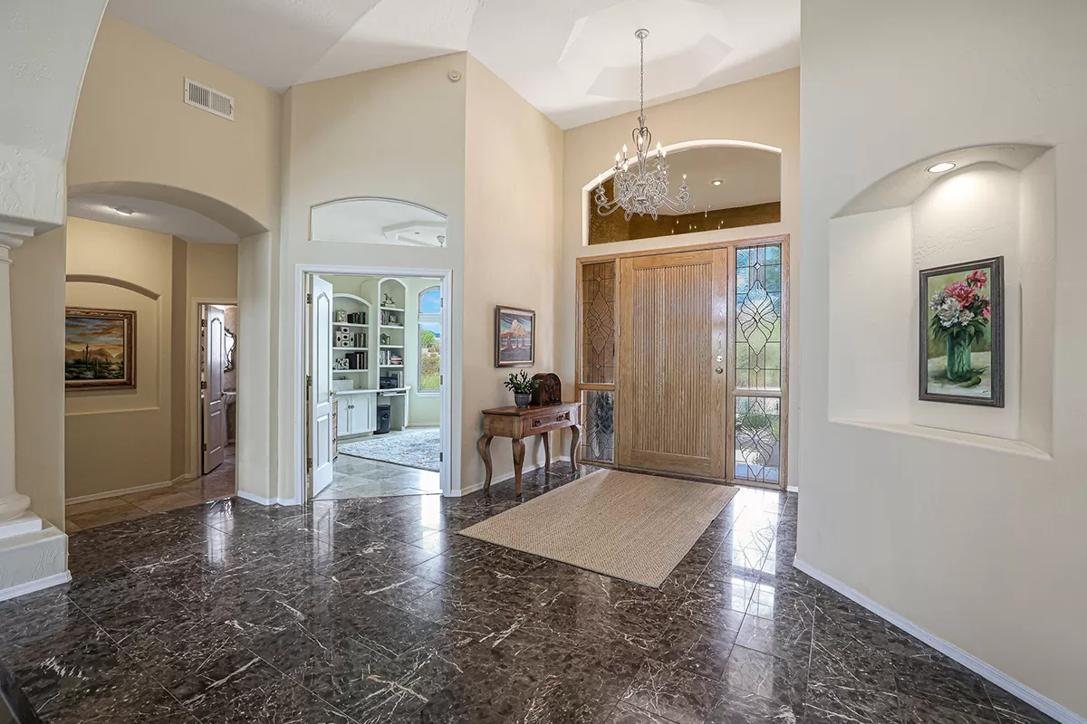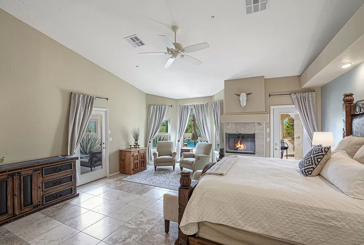 Other features include: Bluetooth-controlled variable speed pool pump with a filter; Installation of modern Energy Star Milgard windows; added ceiling fans; new hot water heater in 2021; WiFi smart thermostats for both HVAC units; Modern LED lighting and dimmer switches throughout; reverse osmosis drinking water system; Three-car garage with evaporative cooler and circle drive for ample parking.