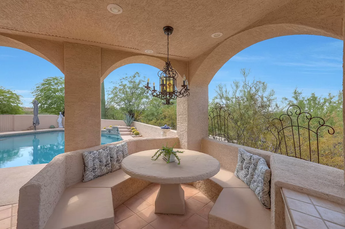 The true jewel of this property is the outstanding backyard w/ a sparkling diving pool, covered ramada with built-in table and bench seating, spa w/ new tile surround, built-in BBQ, & a spiral staircase leading to the view deck (new roof and decking installed on the view deck in 2021). From the view deck, you can indulge in the beauty of sunset and mountain views over the pristine pool and spa. The pool was given a stunning makeover in 2022, featuring Stone Scape pebble sheen coating, new tile, & forged bronze spouts.