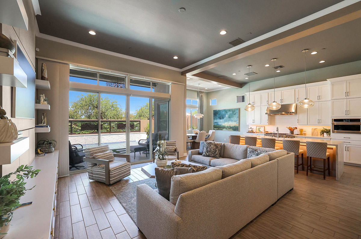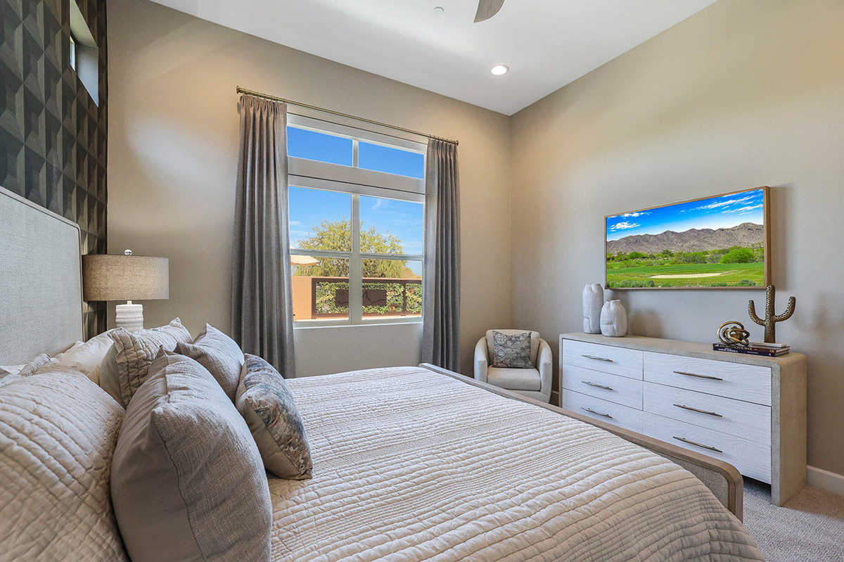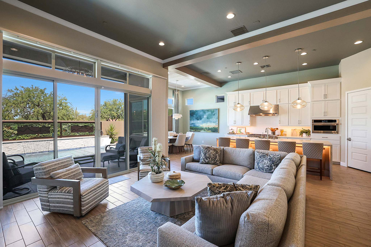 Introducing a newly built Lennar home in the gated community of Paseo at Pinnacle Peak. Conveniently situated in the heart of North Scottsdale, offering effortless access to shopping, dining, and a variety of activities. This impressive residence boasts an exceptional floor plan with four bedrooms and three bathrooms, complemented by a spacious great room encompassing the living, dining, and kitchen areas. The attached guest quarters feature a private entry to both the front and rear yards, a dedicated one-car garage, and seamless access to the main house.