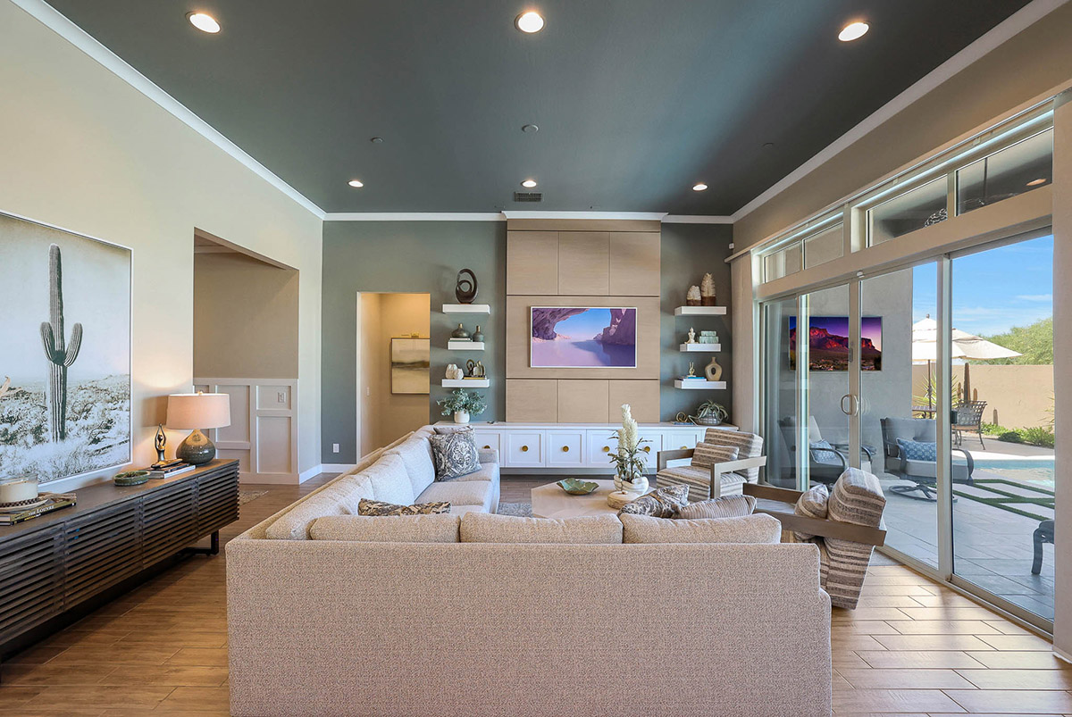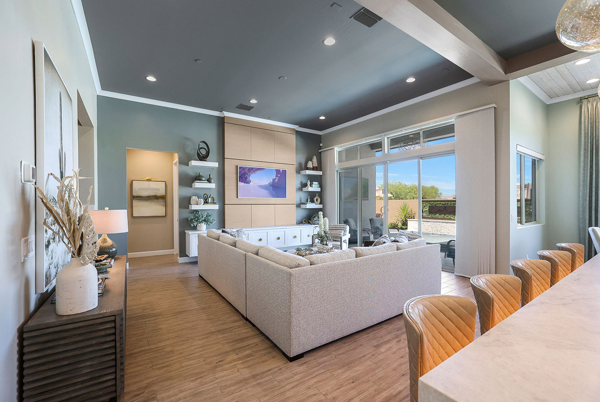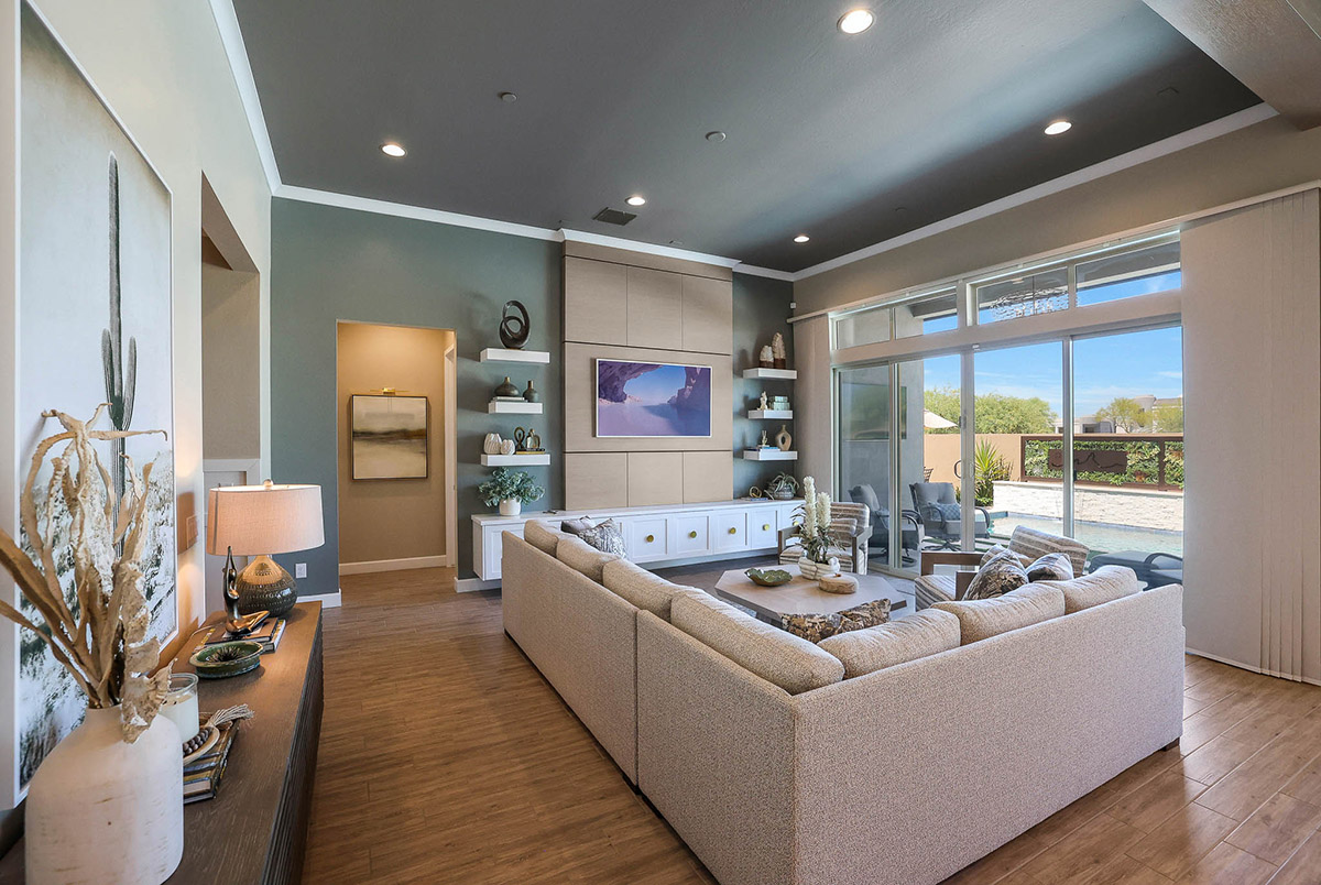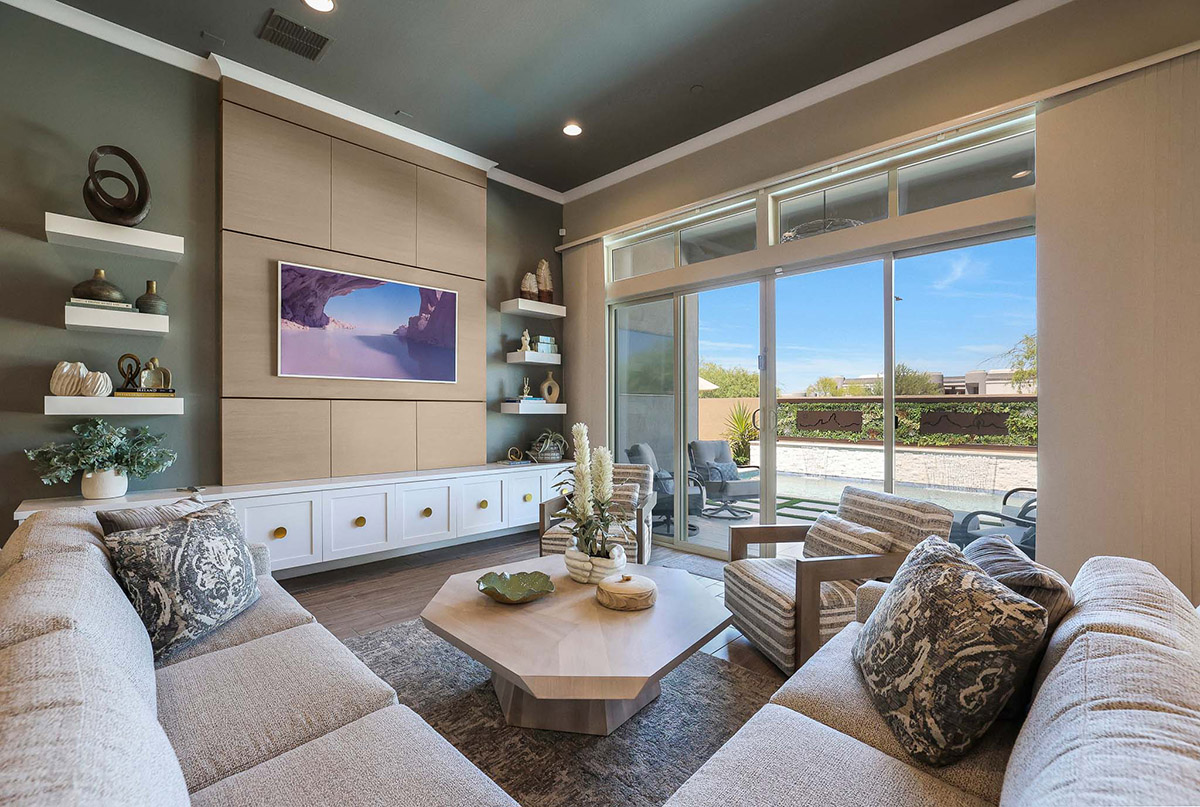 Notably, the great room showcases custom-built cabinetry around the TV area, providing both functional storage and a stylish focal point. Experience the pinnacle of modern living in this wonderful home-there’s so much more to discover!