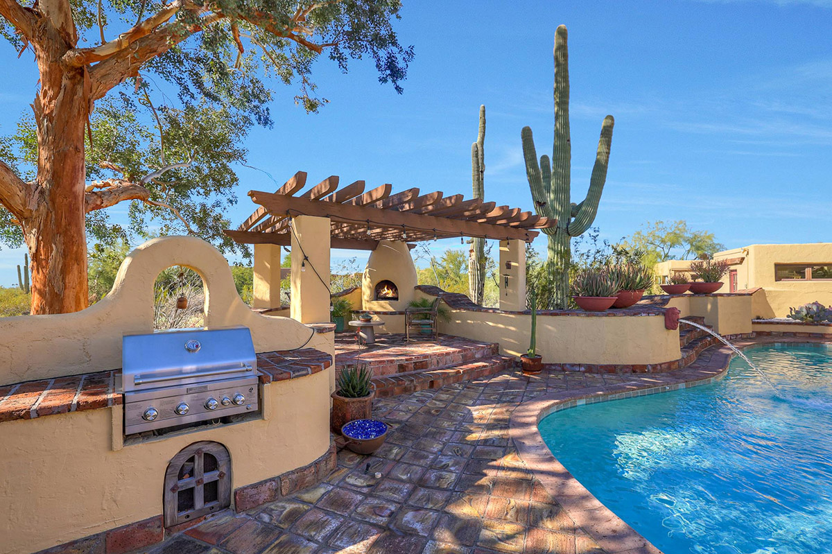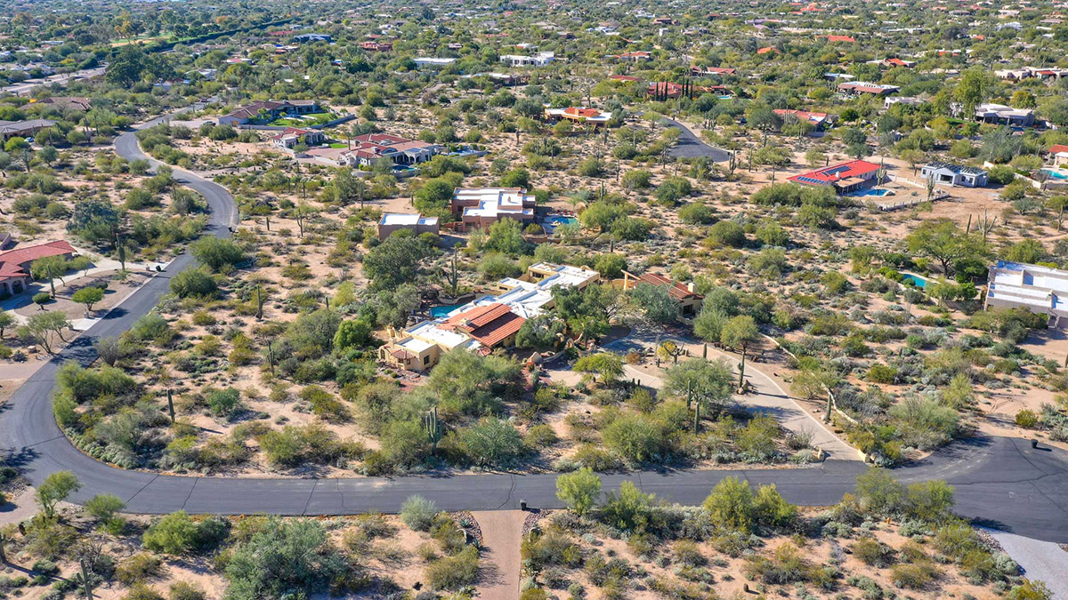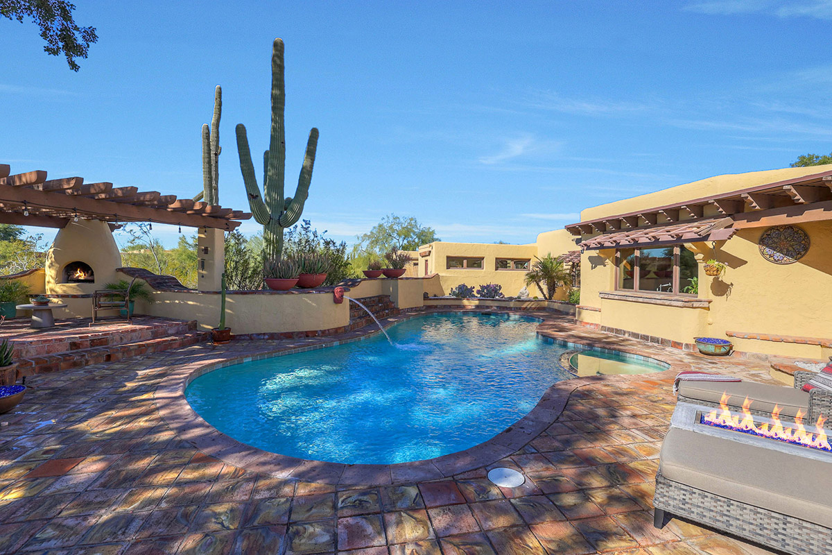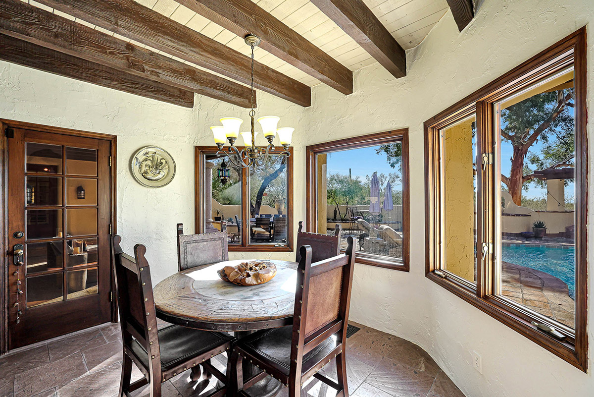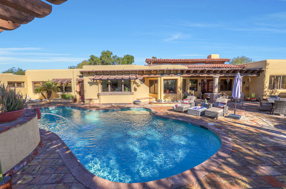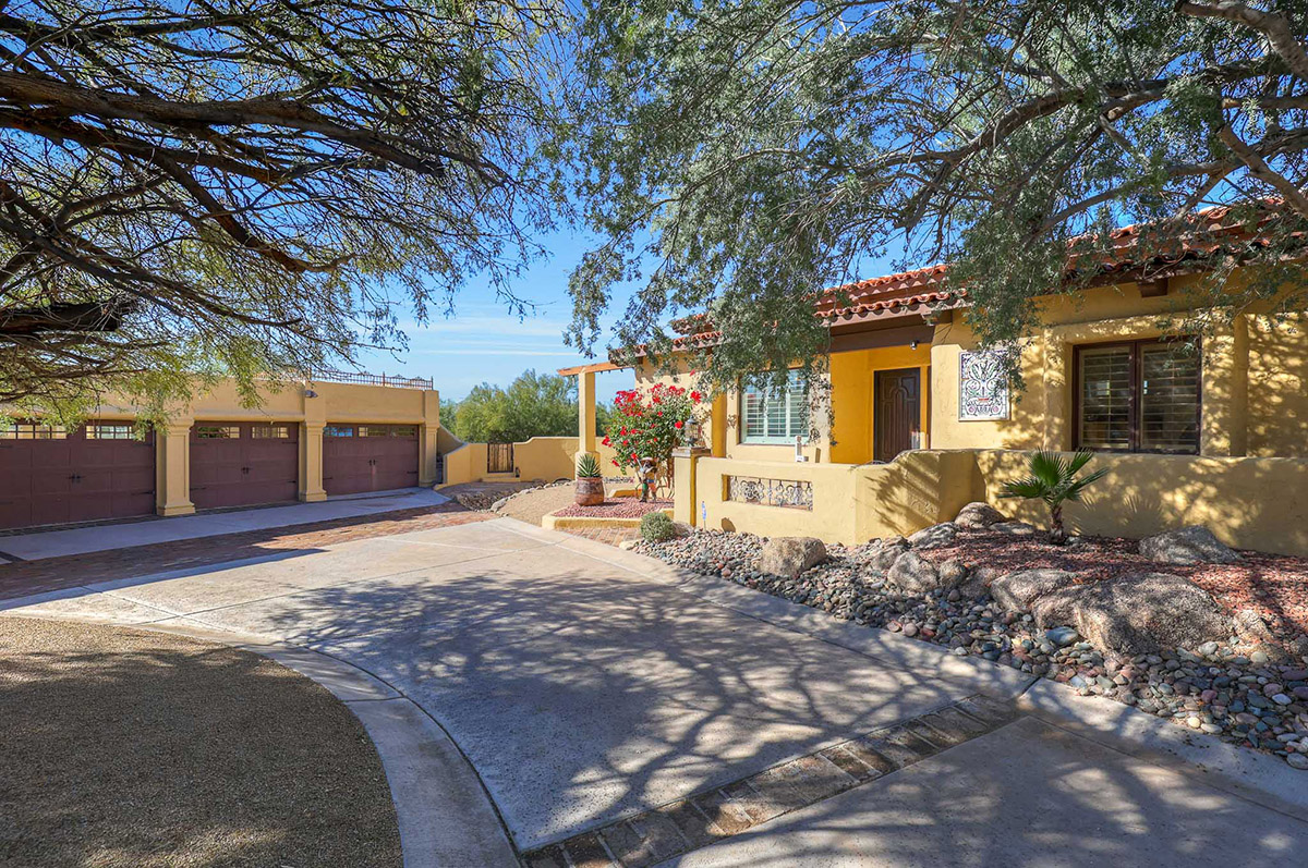Spacious 2.4 acre cul-de-sac lot estate in gated Pinnacle Paradise features 5,238 square foot, three bedrooms and three baths in the main home with a 710 square foot, one bedroom and one bath detached guest house for a grand total of 5,948 square feet. Enjoy beautifully crafted custom features throughout including Saltillo floors, hand-hewn wood beamed ceilings, custom cabinetry, and numerous private outdoor spaces to enjoy the Arizona outdoor lifestyle.