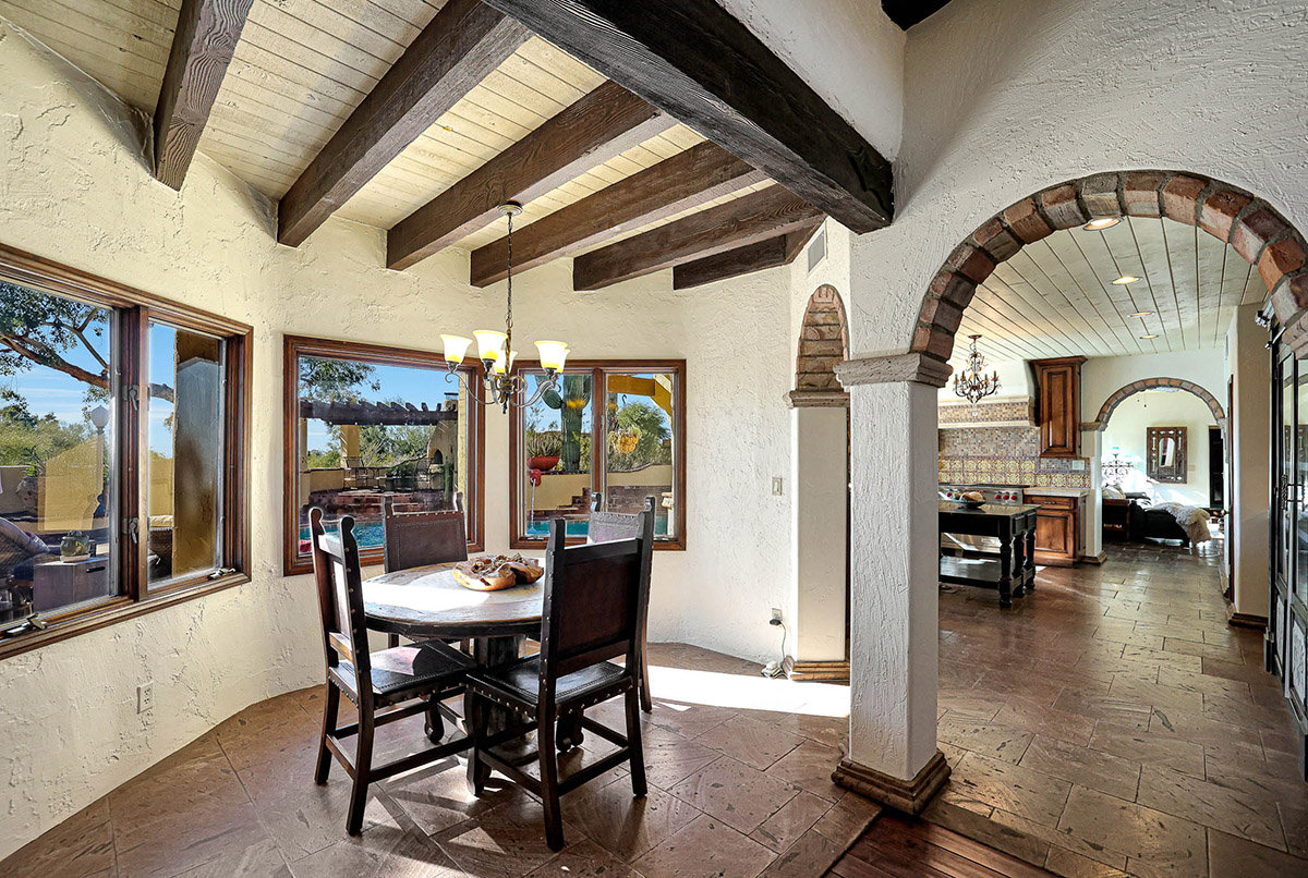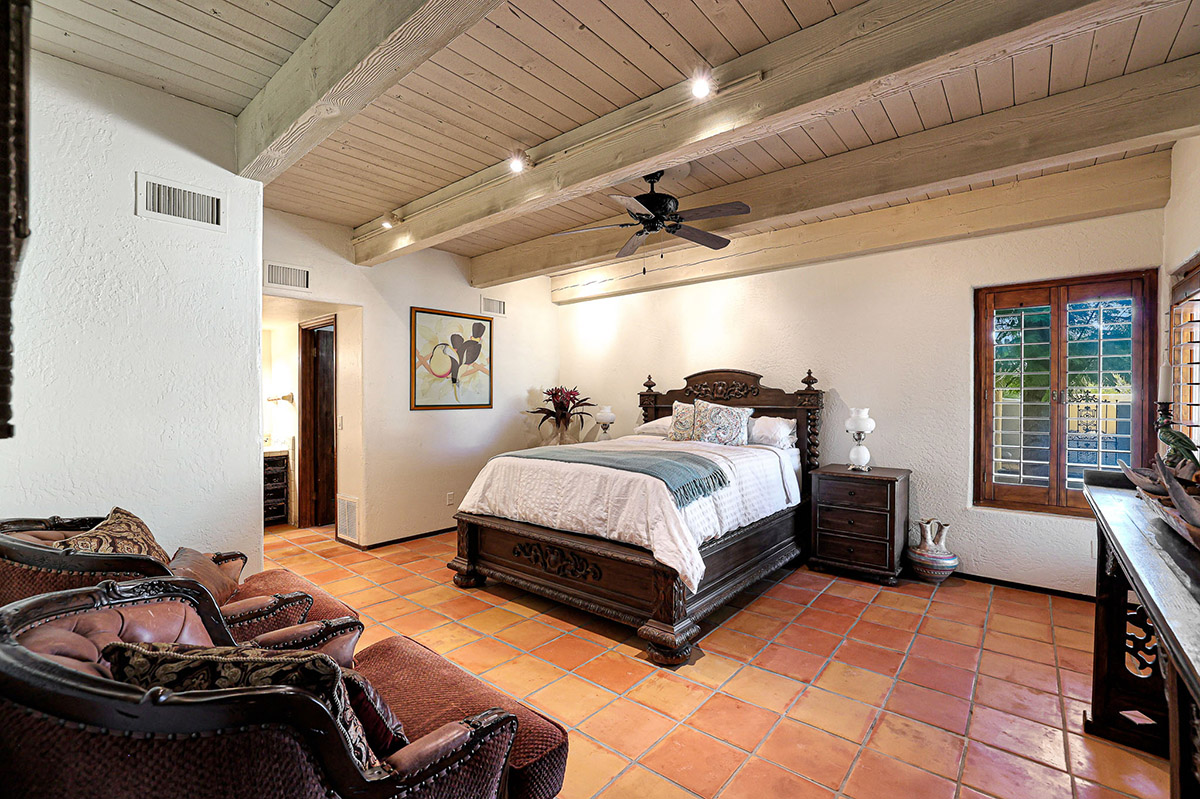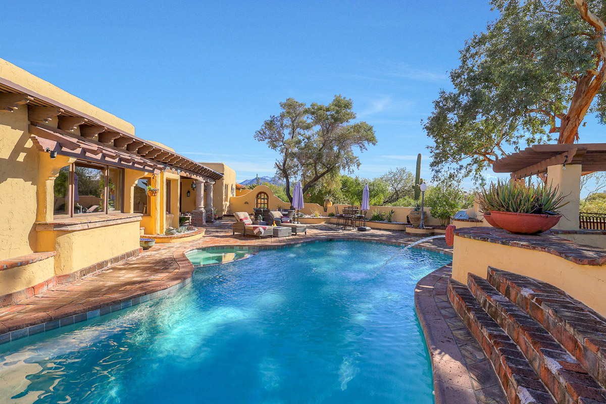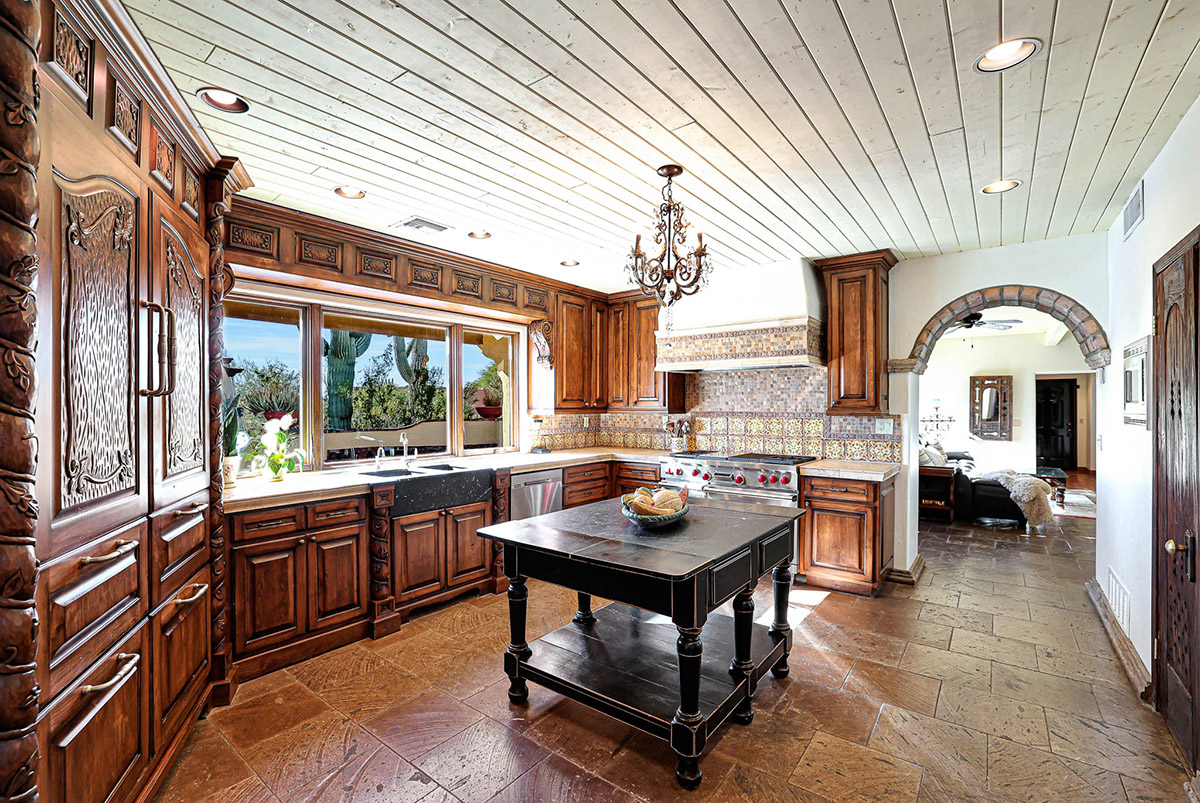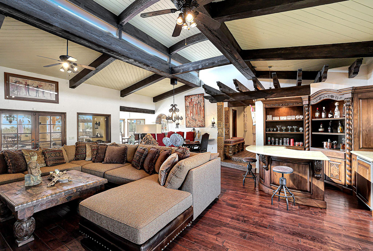 Spacious 2.4 acre cul-de-sac lot estate in gated Pinnacle Paradise features 5,238 square foot, three bedrooms and three baths in the main home with a 710 square foot, one bedroom and one bath detached guest house for a grand total of 5,948 square feet. Enjoy beautifully crafted custom features throughout including Saltillo floors, hand-hewn wood beamed ceilings, custom cabinetry, and numerous private outdoor spaces to enjoy the Arizona outdoor lifestyle.