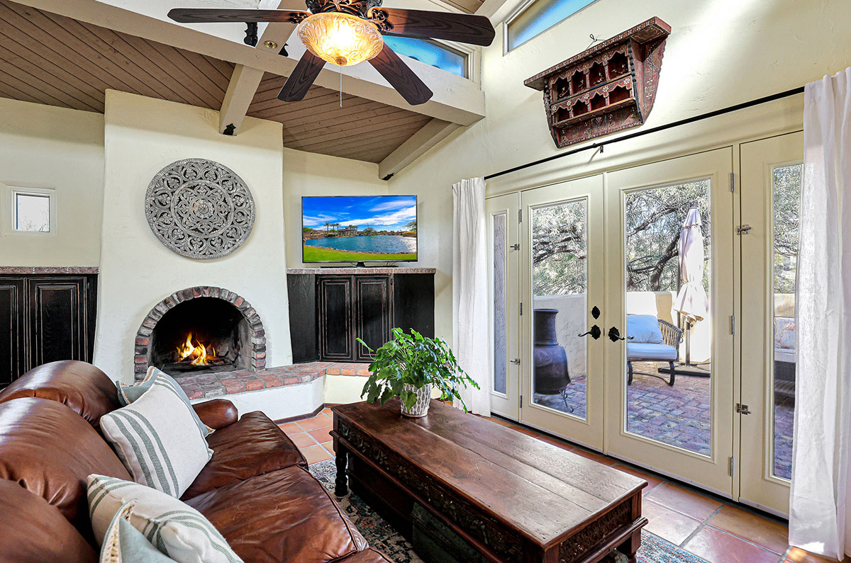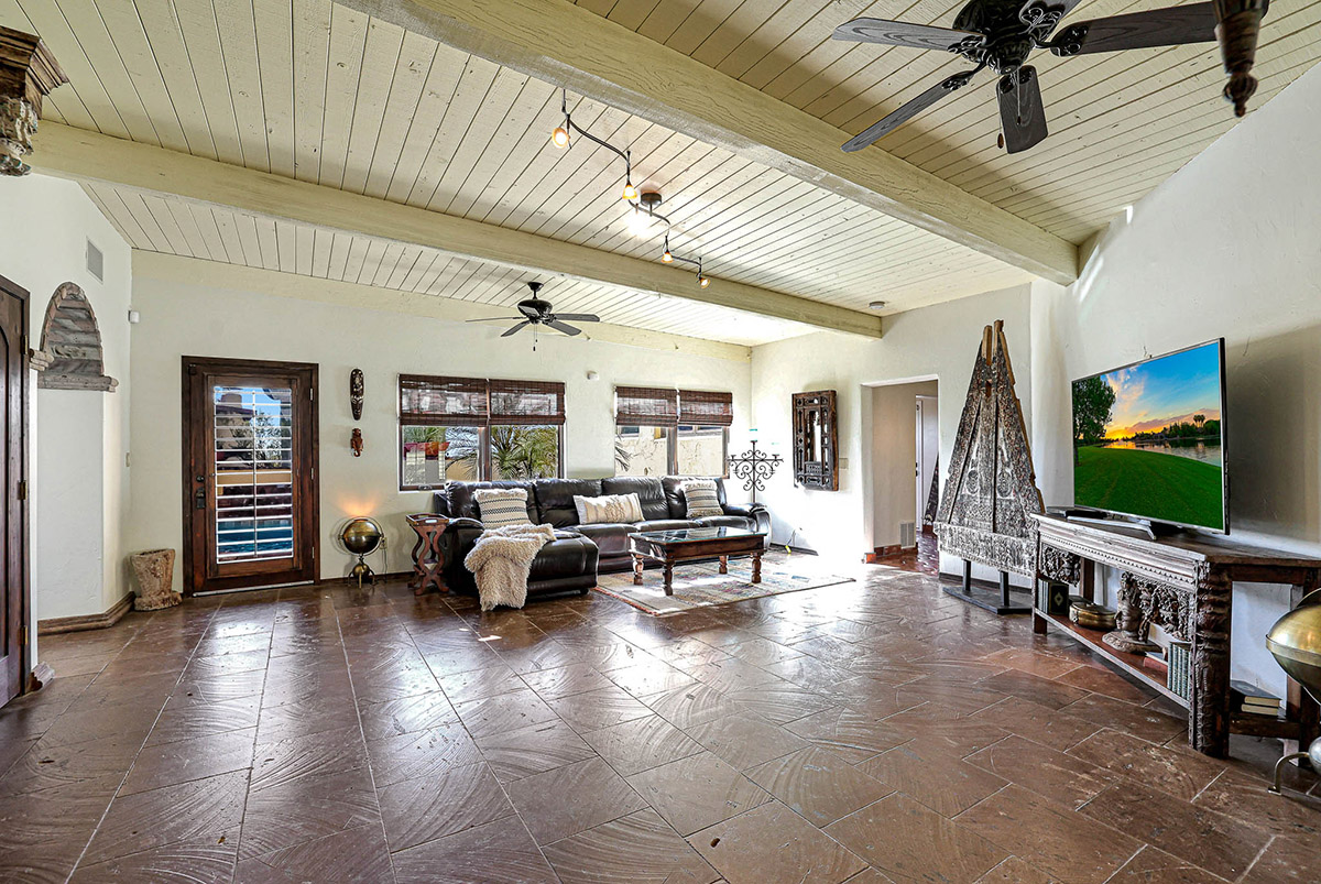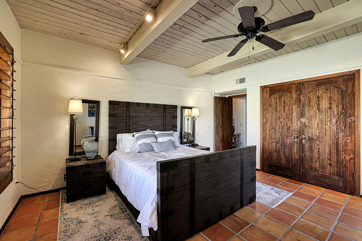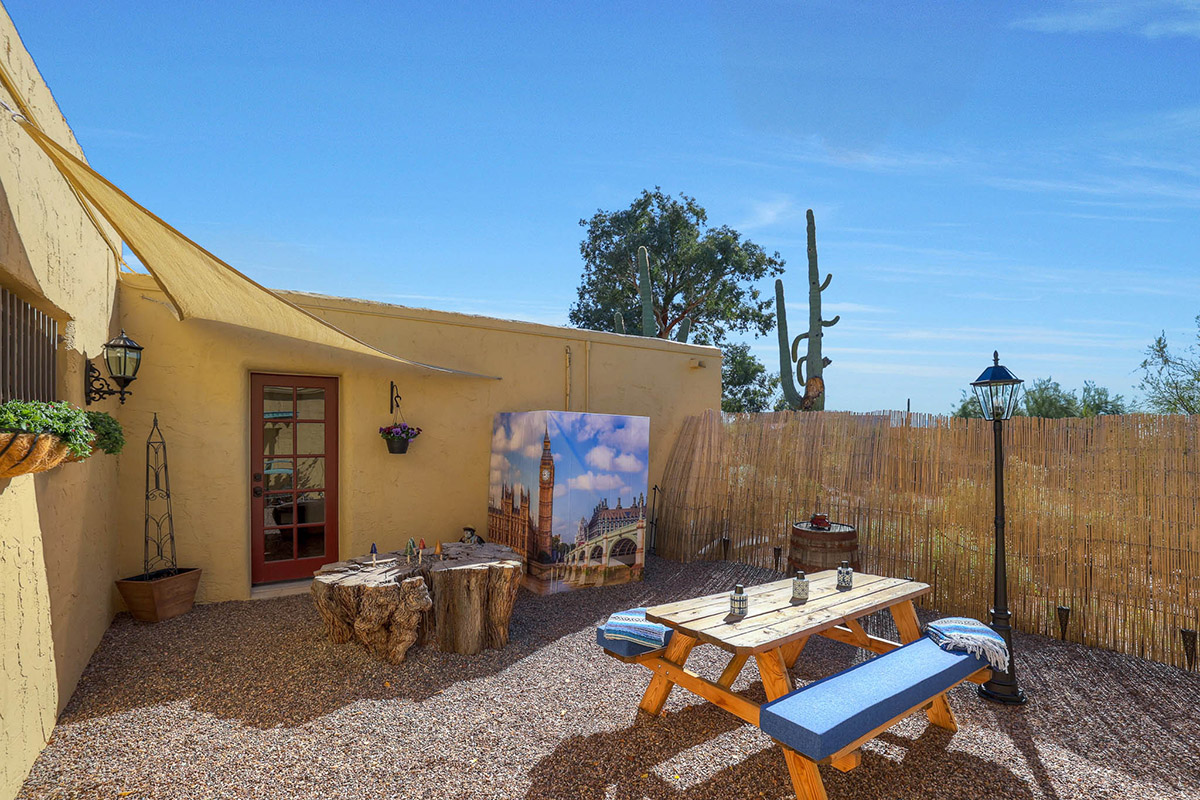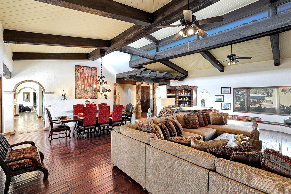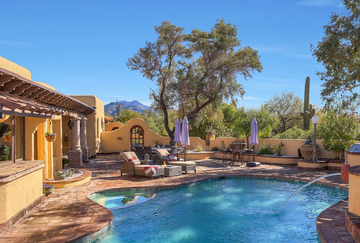 Spacious 2.4 acre cul-de-sac lot estate in gated Pinnacle Paradise features 5,238 square foot, three bedrooms and three baths in the main home with a 710 square foot, one bedroom and one bath detached guest house for a grand total of 5,948 square feet. Enjoy beautifully crafted custom features throughout including Saltillo floors, hand-hewn wood beamed ceilings, custom cabinetry, and numerous private outdoor spaces to enjoy the Arizona outdoor lifestyle.