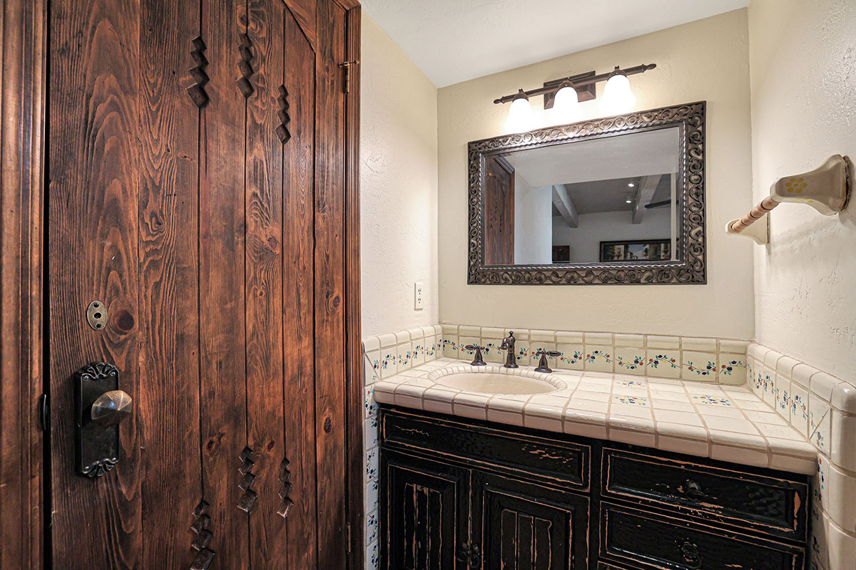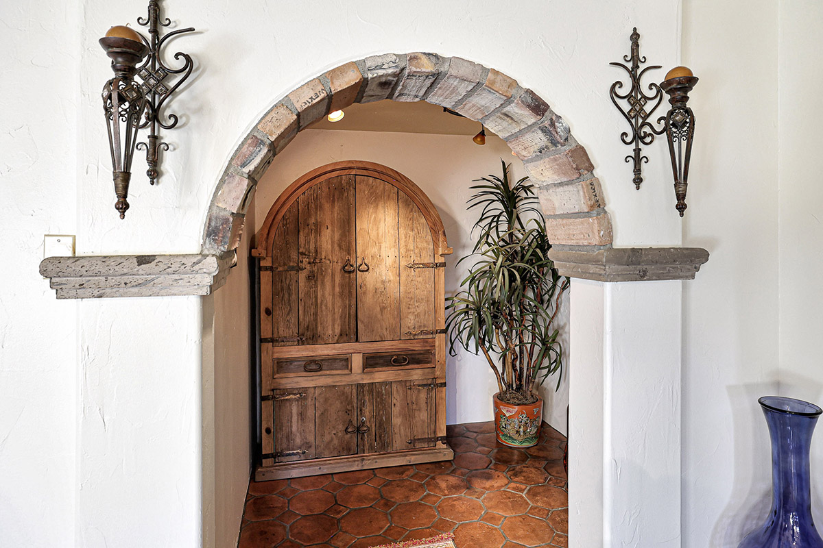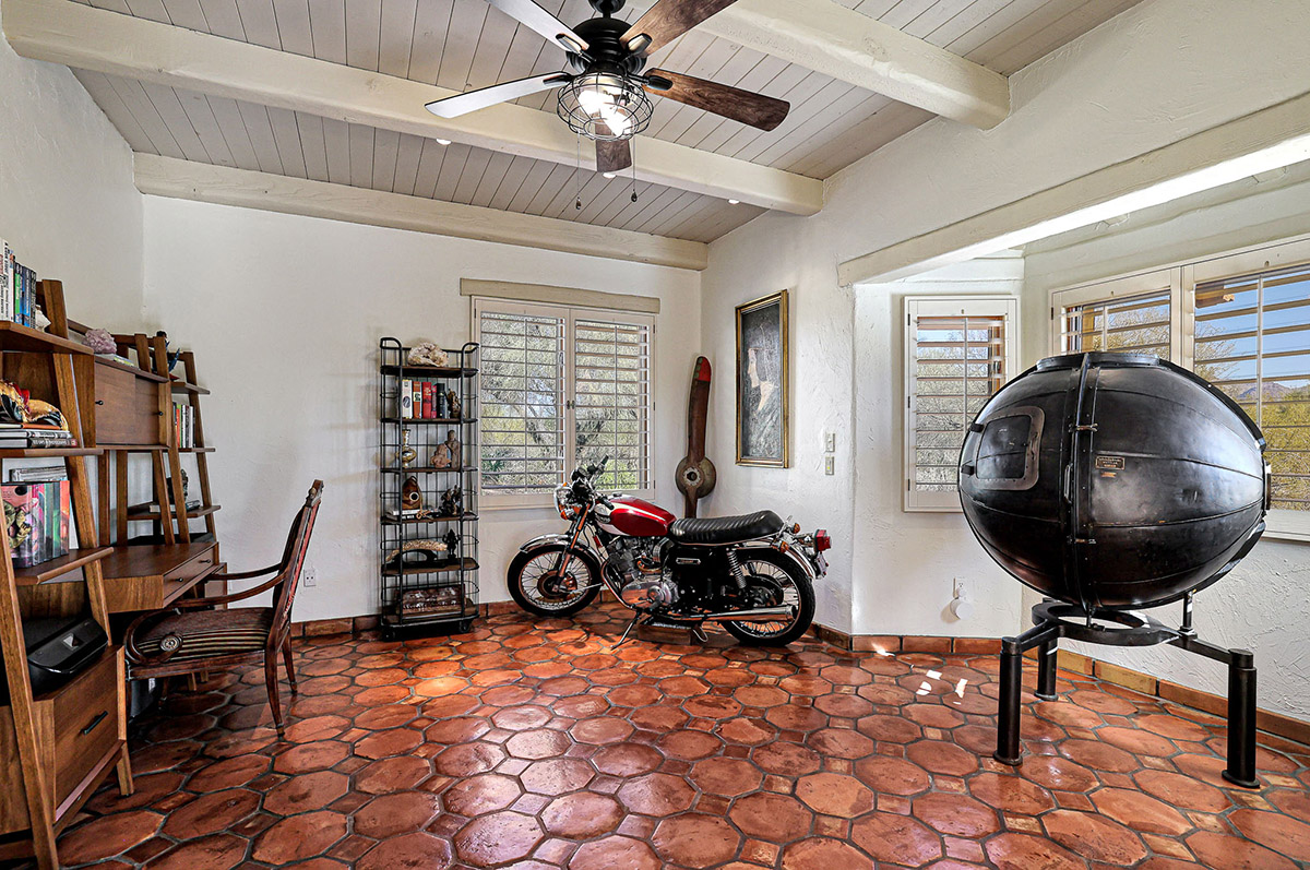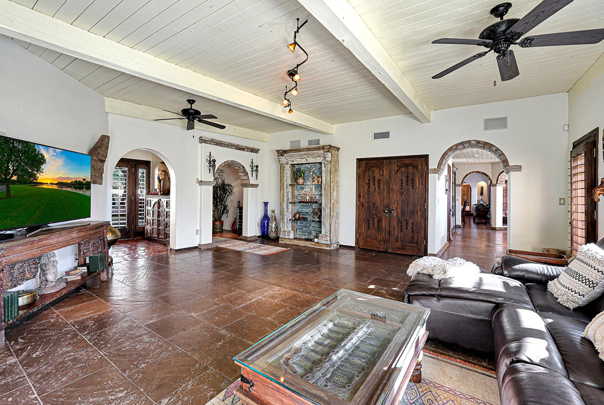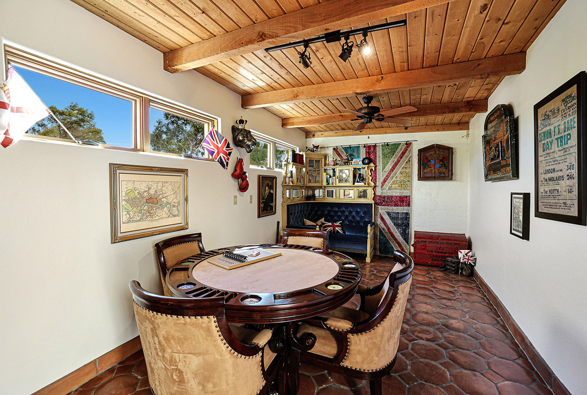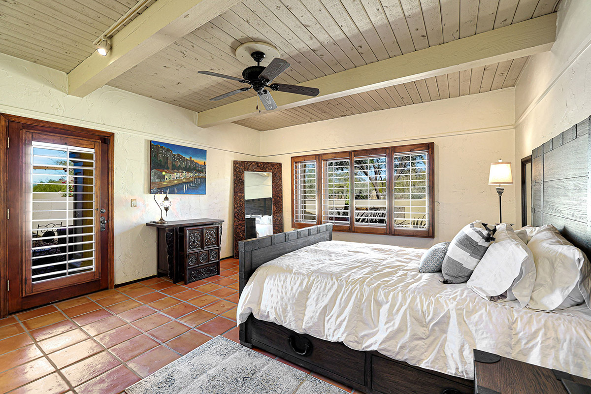 The master bedroom includes a separate sitting room, custom wood cabinetry built-ins, and a spa-like bath with separate sinks and furniture quality vanities, walk-in shower with wrought iron entry door, Canterra clad wall accents, claw foot tub, and private water closet. Other spaces include two main home guest bedrooms with a Jack’n’Jill hall bath, family room with attached bath (steam shower!), wine display room, bonus room currently furnished as a pub, breakfast nook overlooking the pool, and an oversized laundry room with additional storage space. The guest house includes a living room, kitchenette with seating space, a private bedroom and bath.