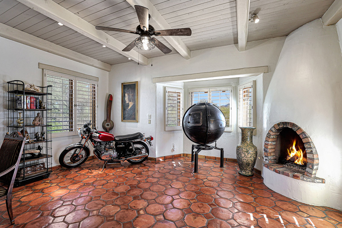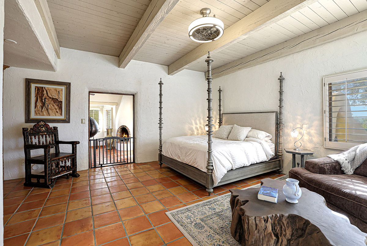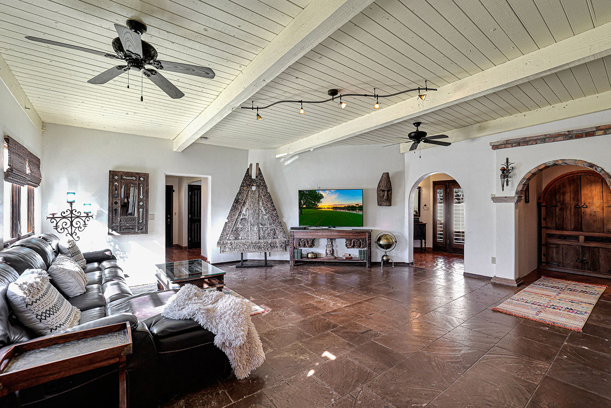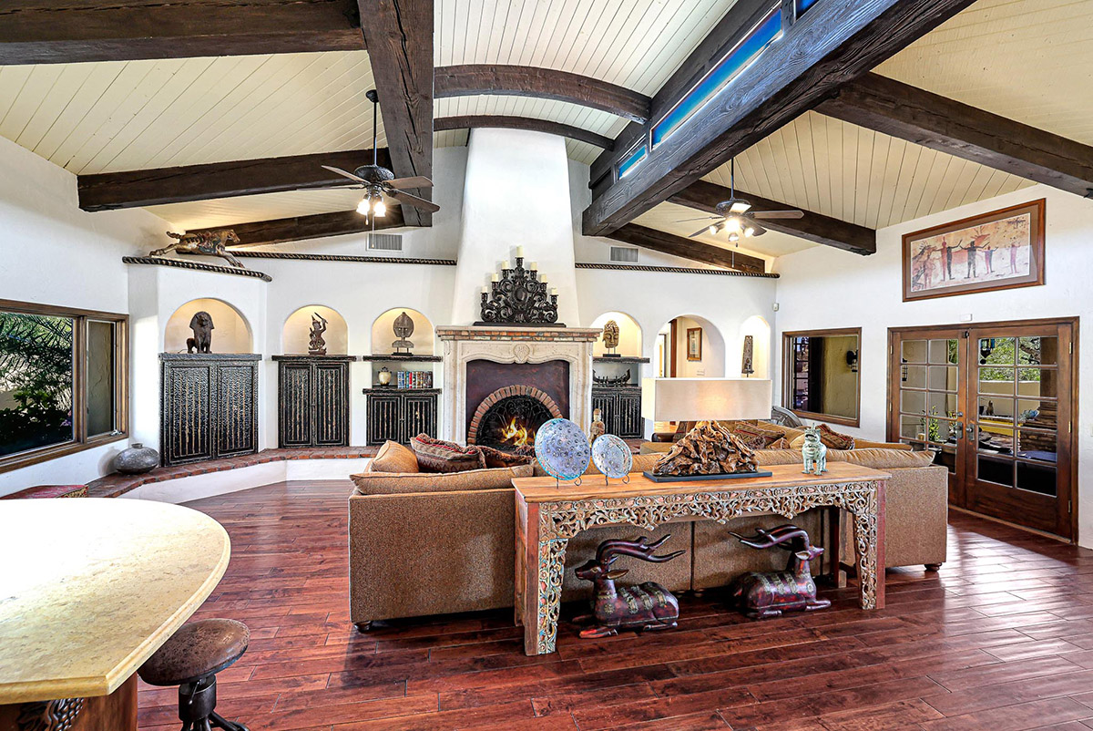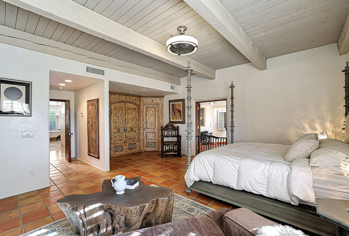 The private outdoor spaces include: a gated front courtyard with water fountain; a newly built private patio off the guest house; a private garden space off the bonus room; guest bedroom private patio; master bedroom private patio with fireplace; covered patio off the laundry; a large rear yard with sparkling pool and water feature, private covered ramada with fireplace, large covered patio and numerous lounge and dining options on the hardscape areas, with stately trees and mature landscaping. The four car (two single bay and one two-car tandem) garage along with a private circular drive and additional guest parking allows for plenty of car and toy storage!