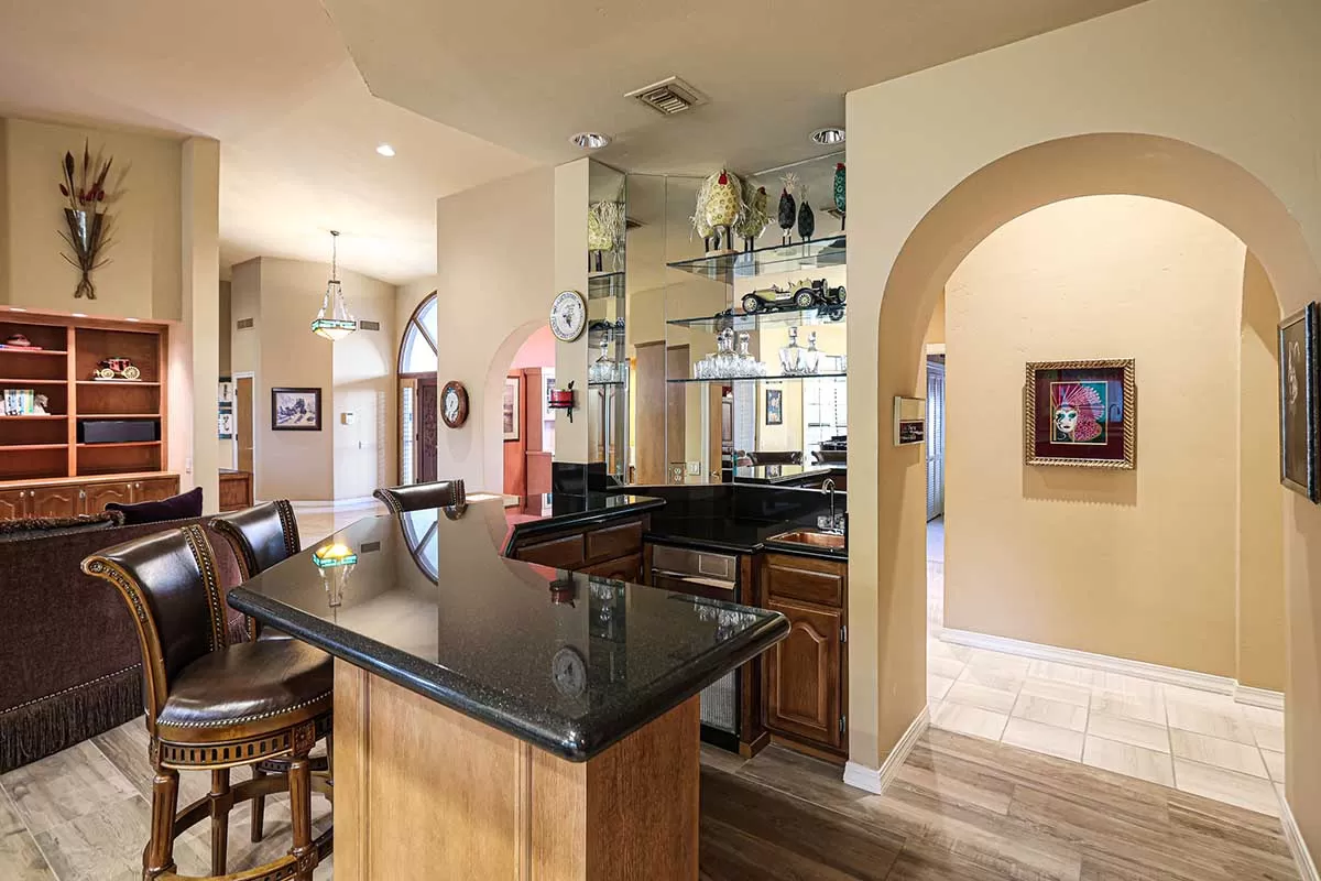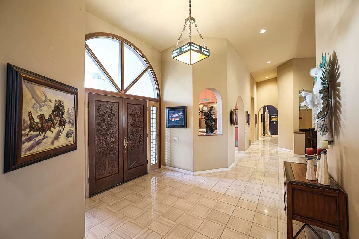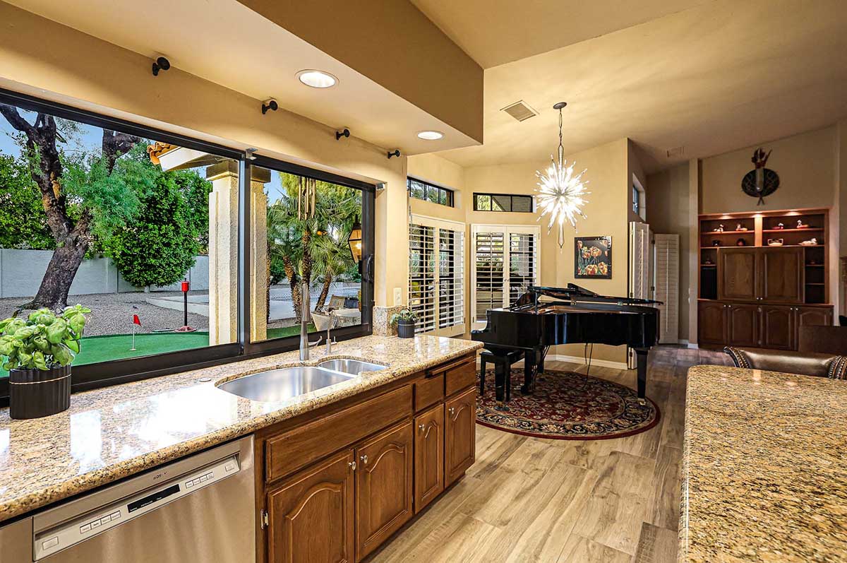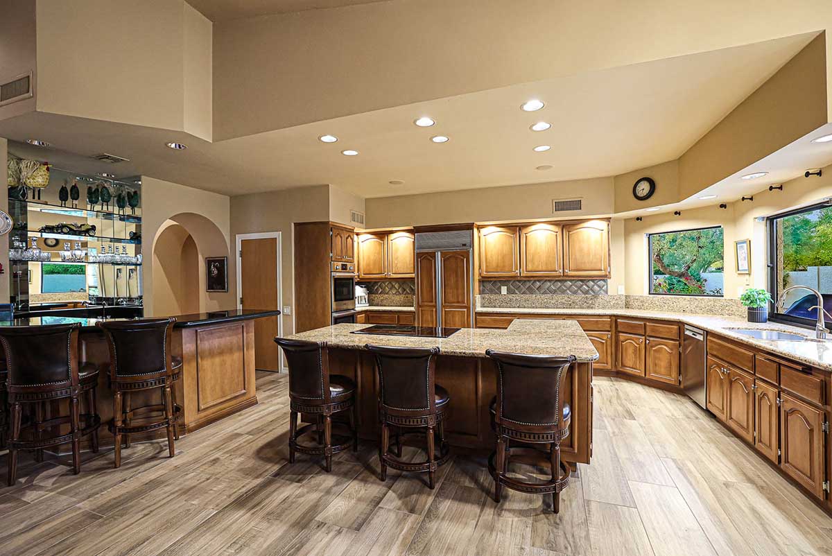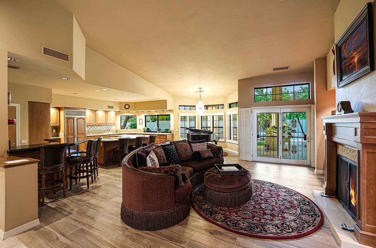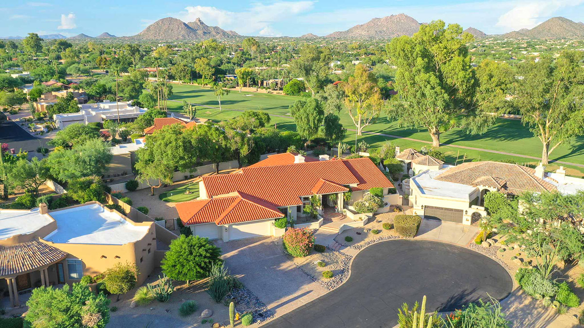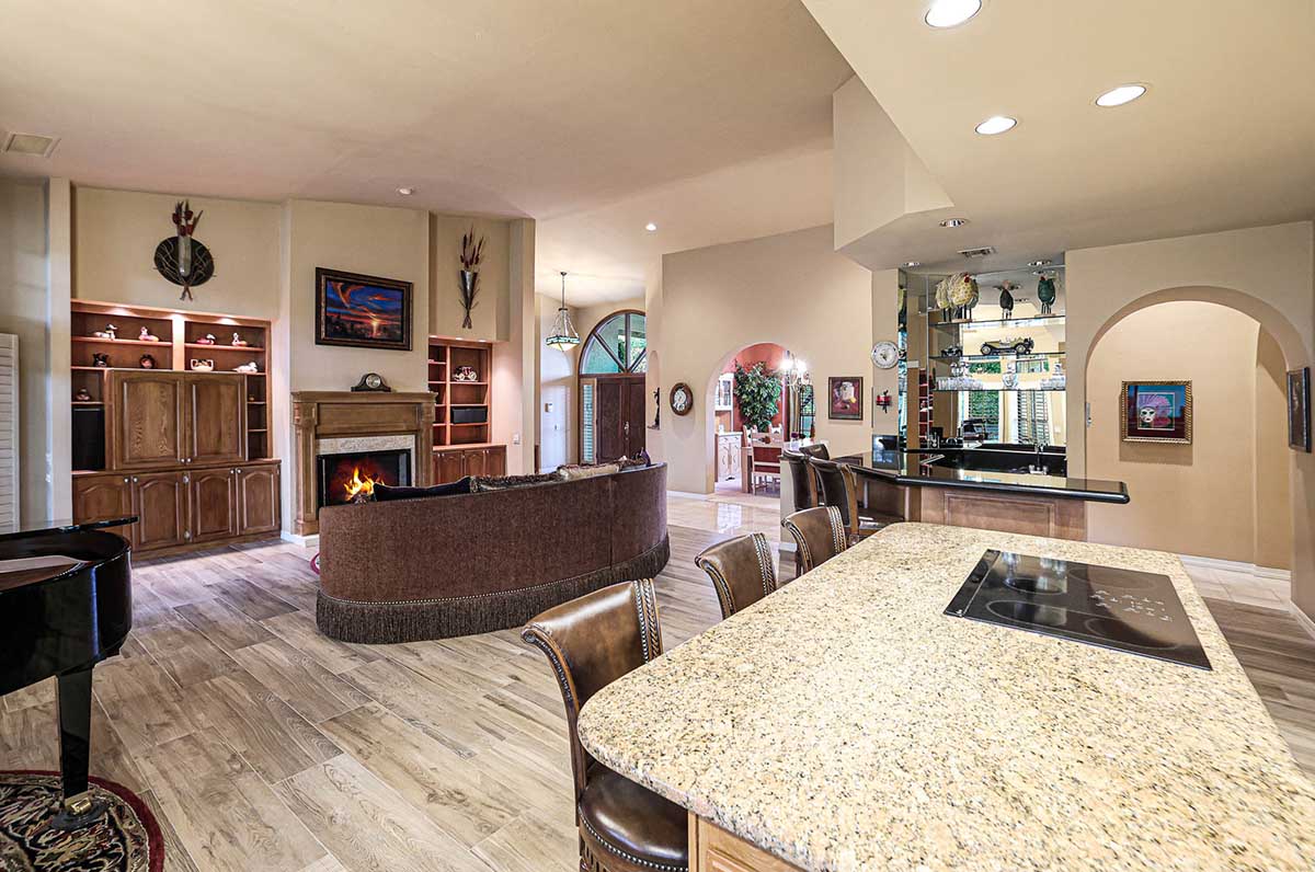 Pinnacle Peak Country Club custom home with a large half acre lot has the perfect yard for entertaining. Backing to the 14th Fairway of Pinnacle Peak Country Club’s private course, enjoy guard gated living from the over 3600 square foot home. Located on a cul-de-sac, the elevated entry has a private feel along with a three car garage for ample parking. Once inside, take note of the high ceilings and the great room floor plan.