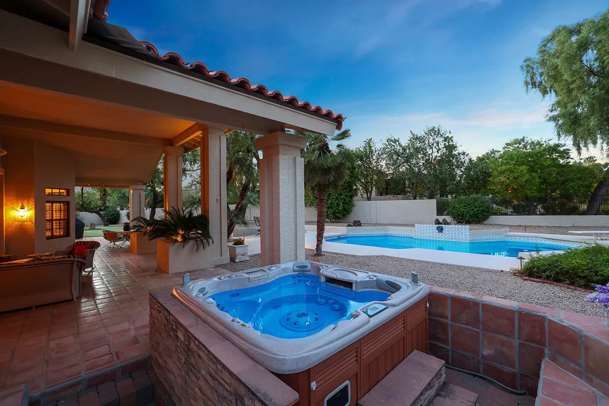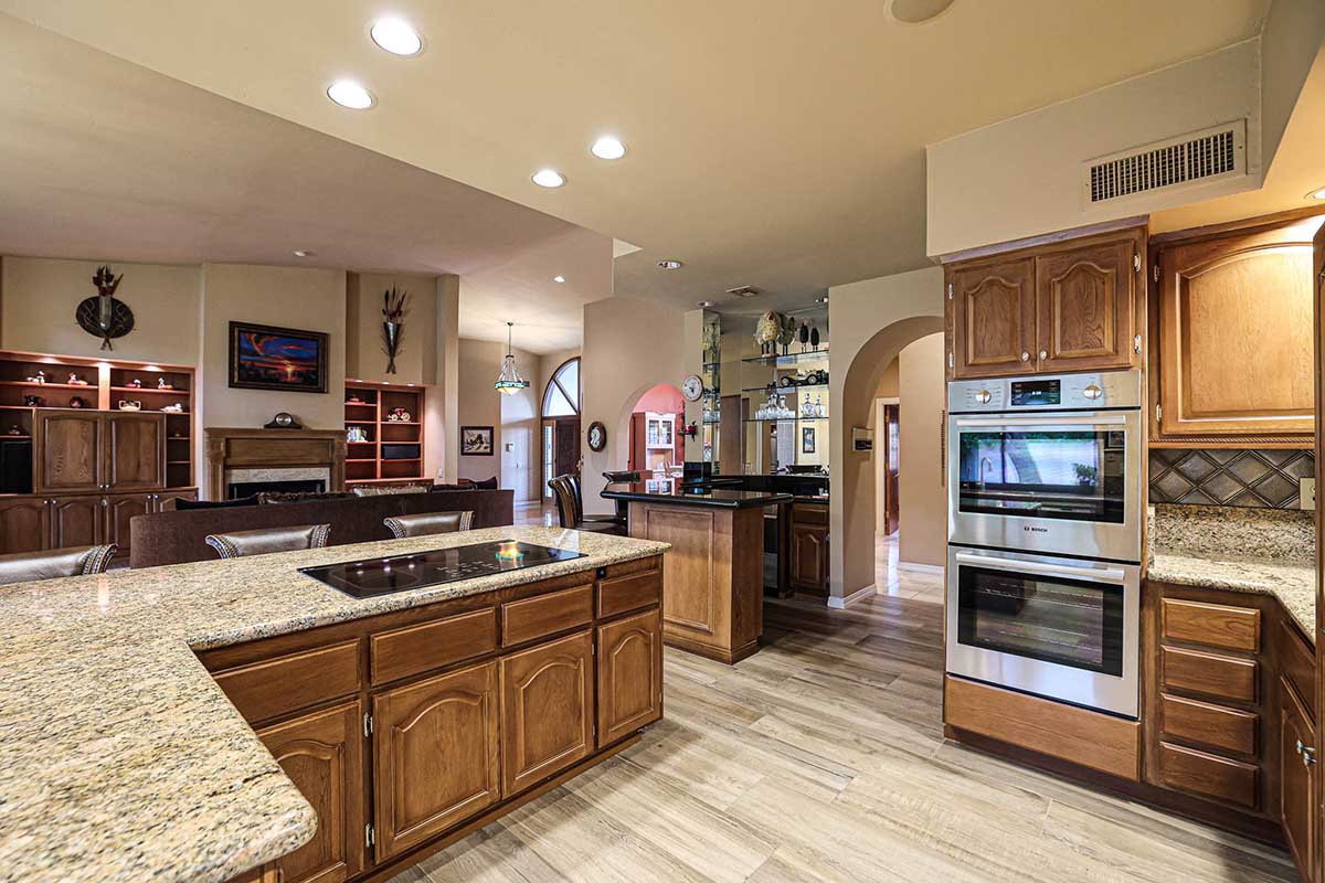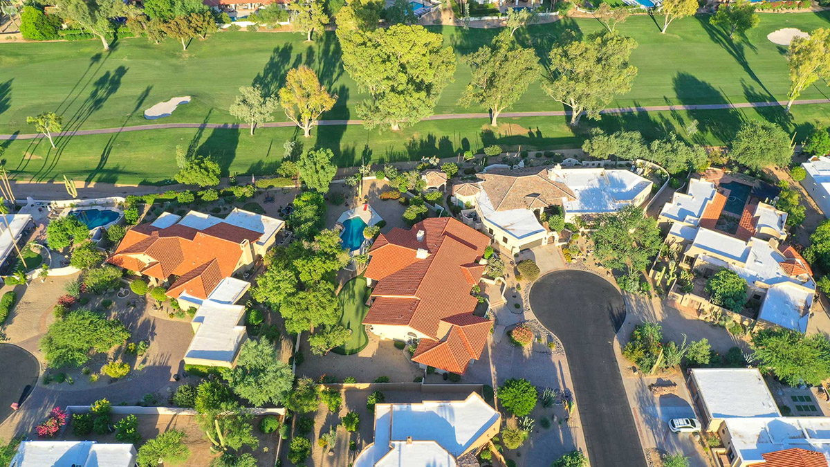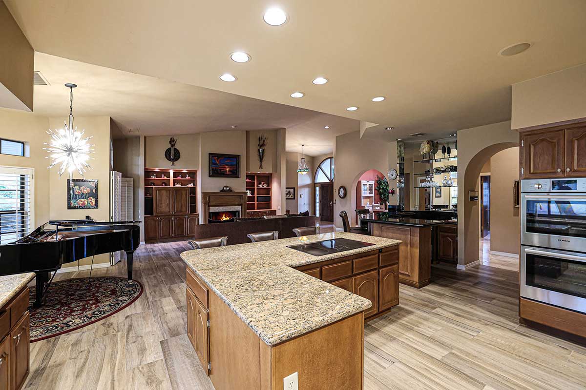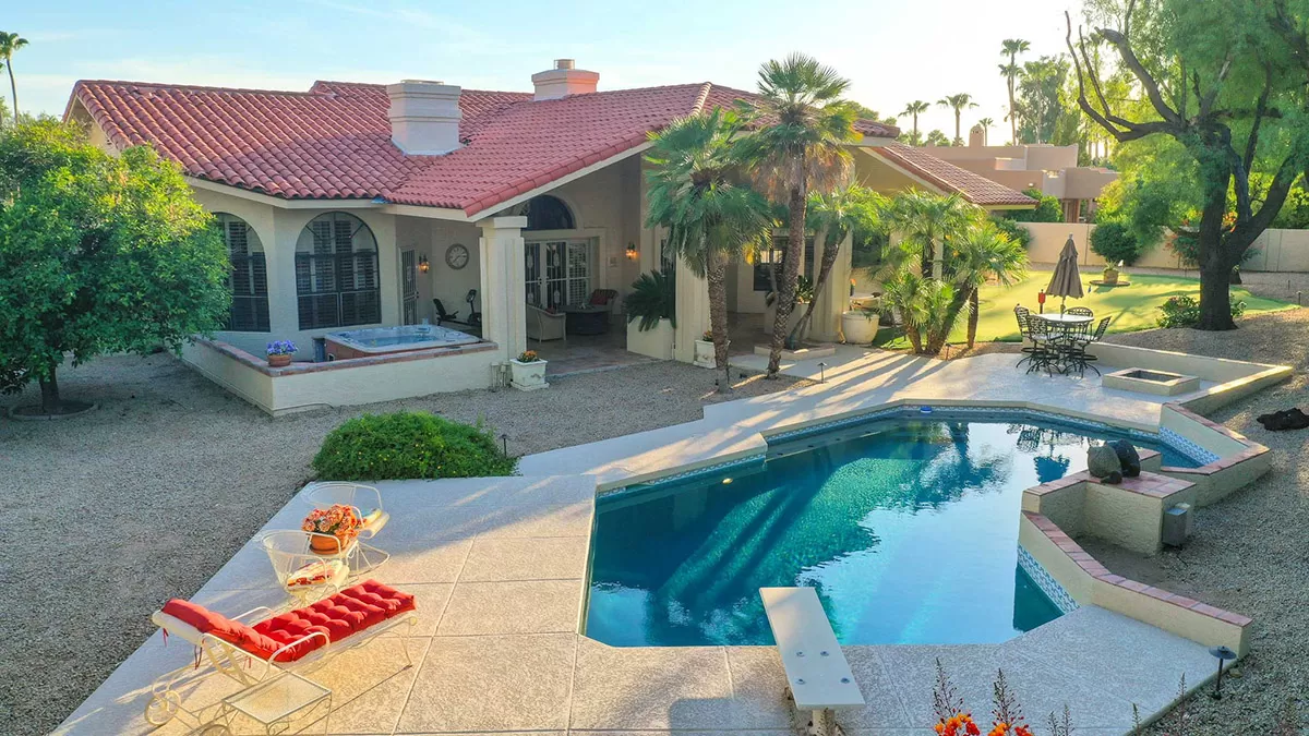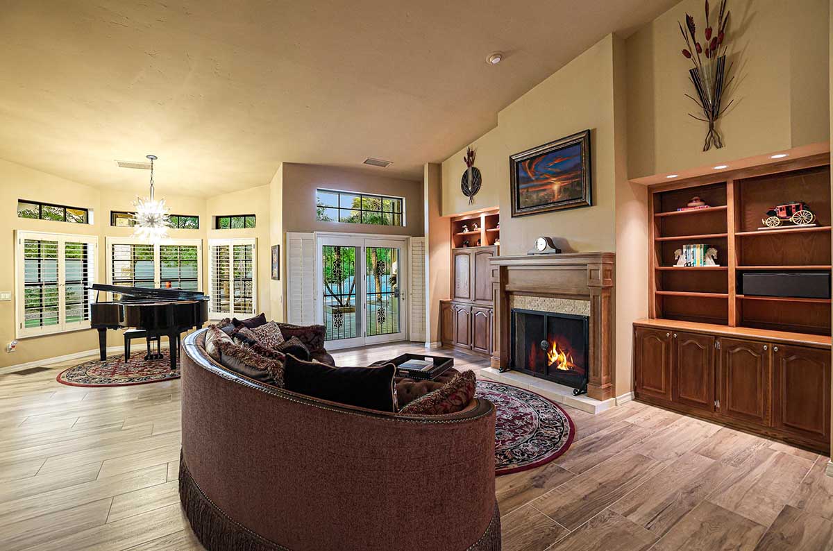 Pinnacle Peak Country Club custom home with a large half acre lot has the perfect yard for entertaining. Backing to the 14th Fairway of Pinnacle Peak Country Club’s private course, enjoy guard gated living from the over 3600 square foot home. Located on a cul-de-sac, the elevated entry has a private feel along with a three car garage for ample parking. Once inside, take note of the high ceilings and the great room floor plan.