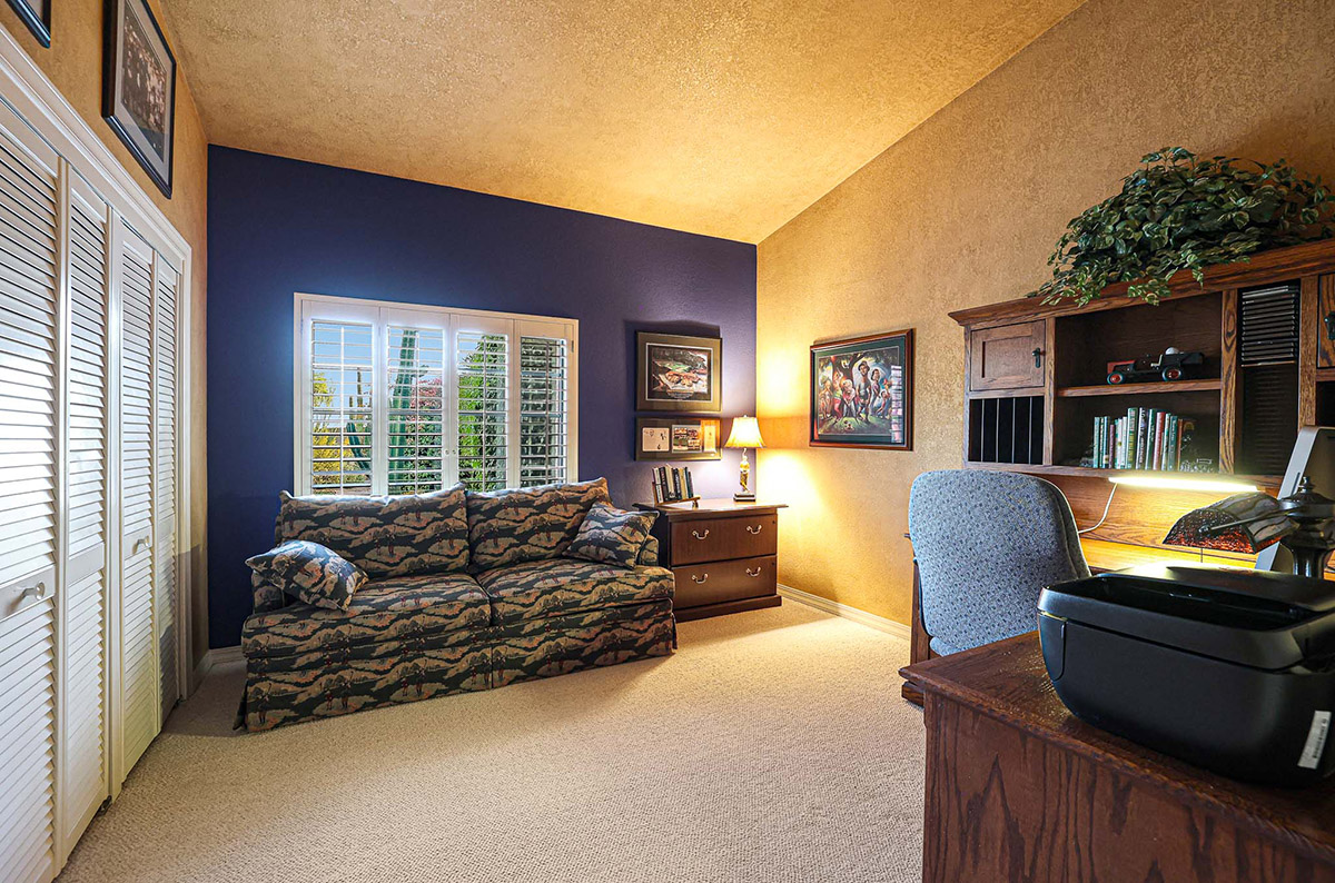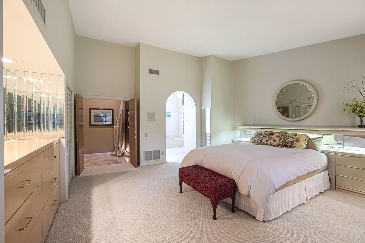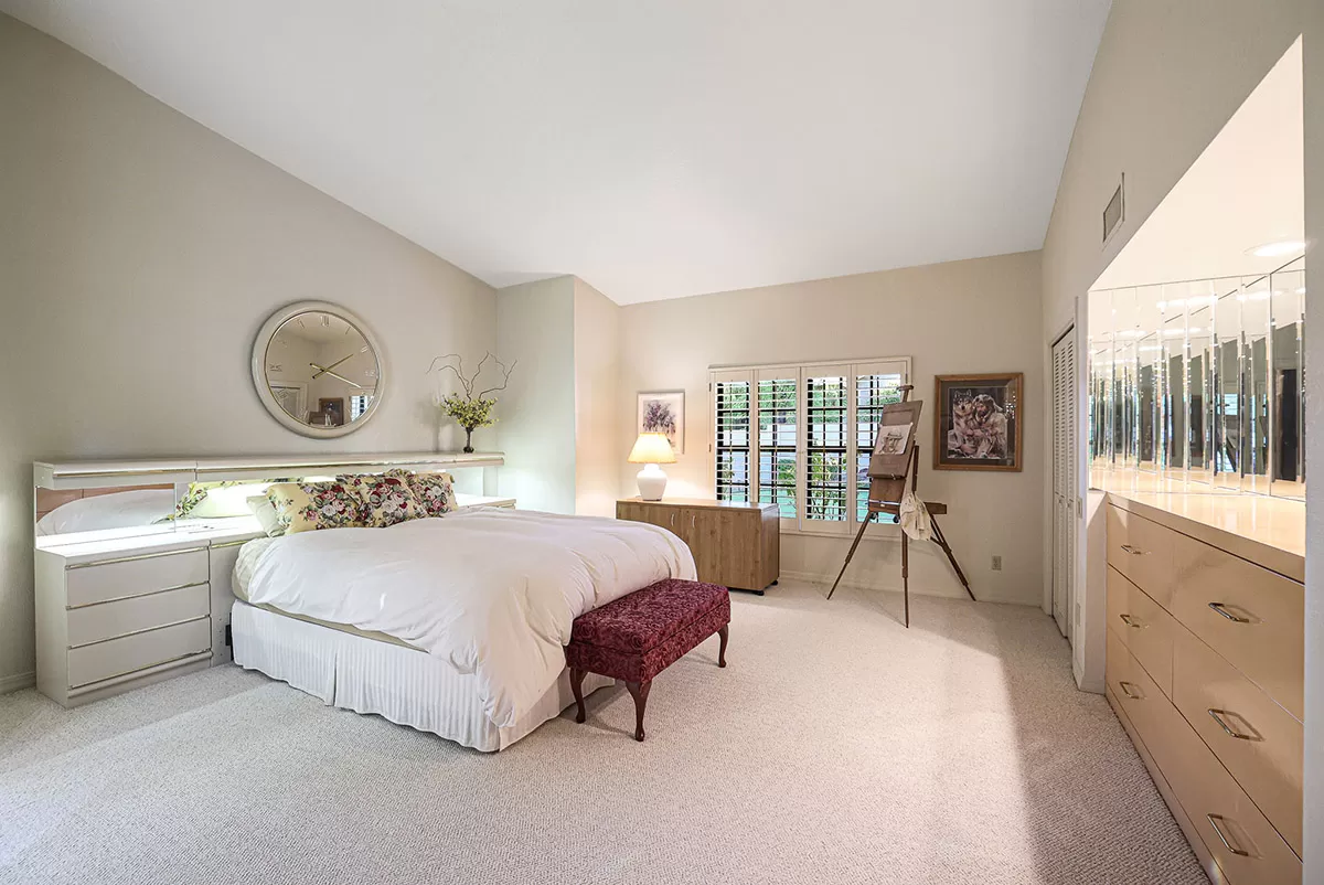 The main master suite has access to the exterior, its own private entry, fireplace and large bathroom suite with a large soaking tub, his and her vanities and a large walk-in closet. Other features include: plantation shutters; California closets custom cabinetry; upgraded HVAC systems; New garage door motors and openers; exterior stucco and paint completed in 2021; interior paint in 2022; new washer and dryer in 2021; backyard view fencing replaced in 2021; and so much more!