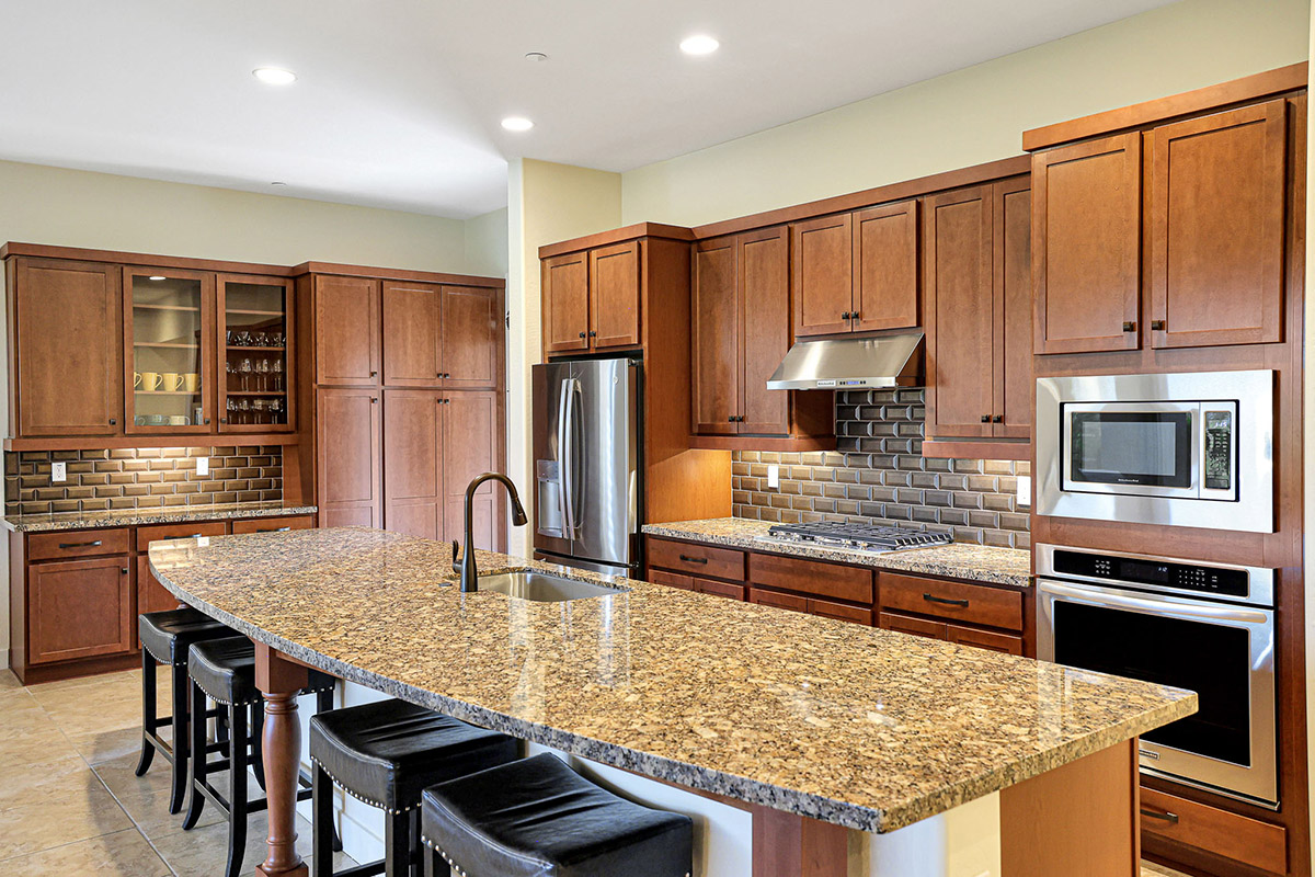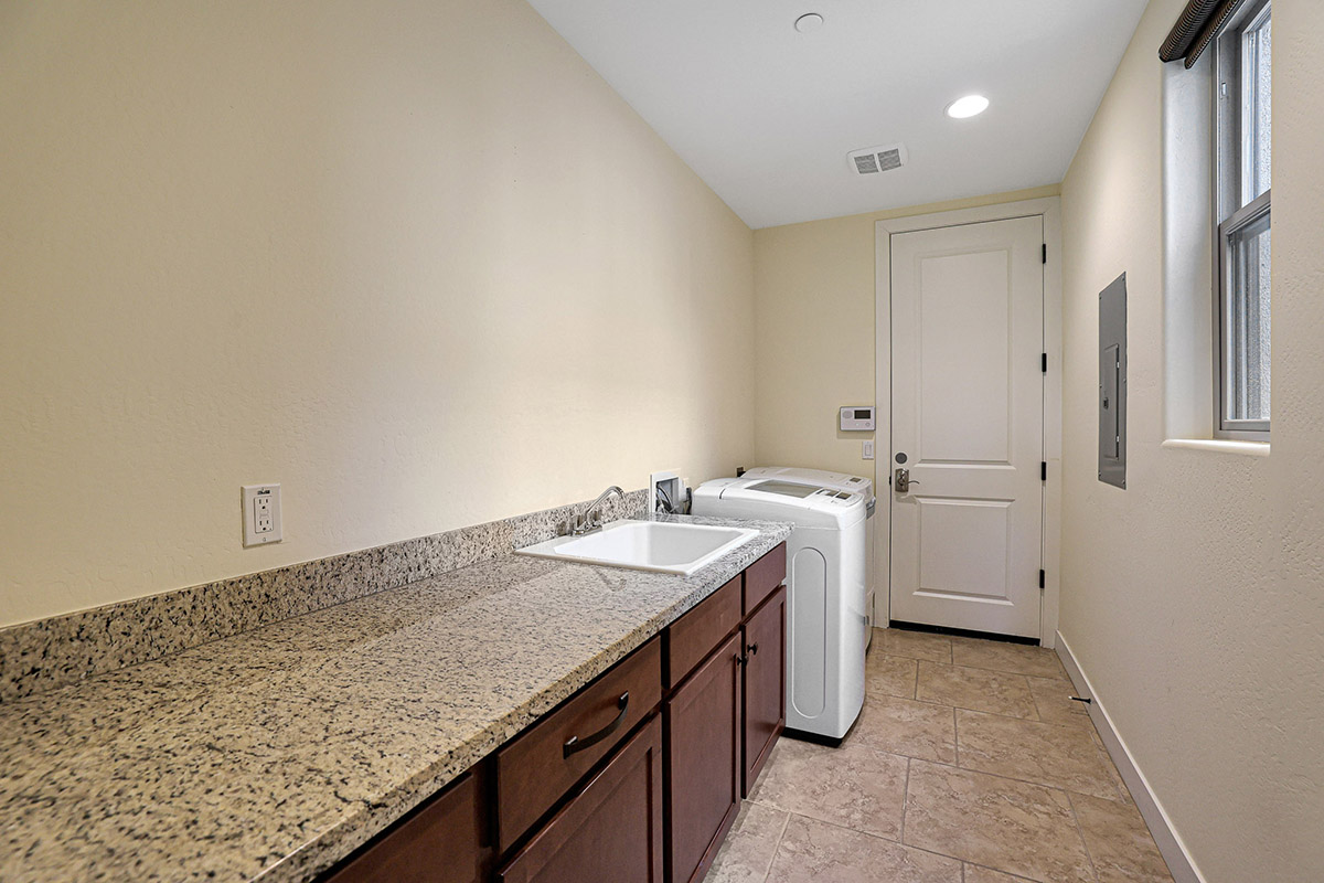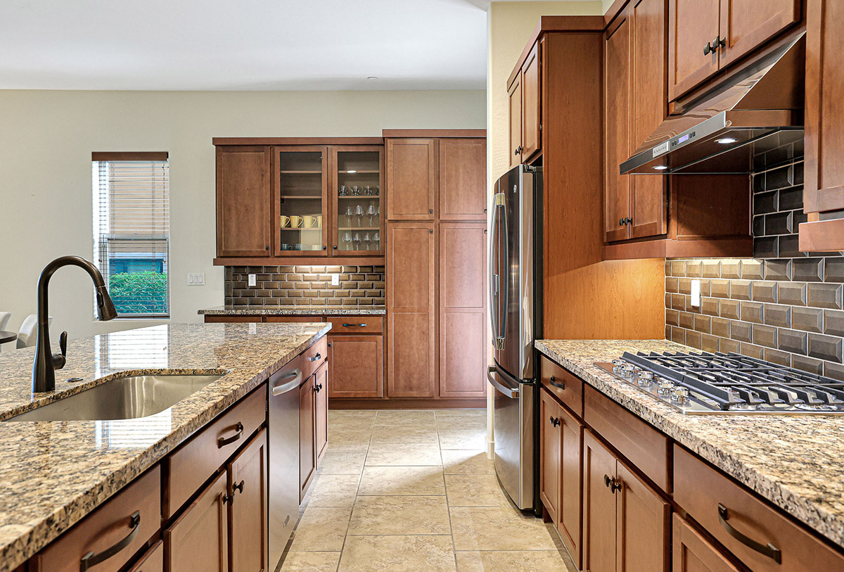 This gorgeous home offers two ensuite bedrooms, three baths, den/flex space, laundry room and direct entry two car garage with built-in cabinets and overhead storage rack. The large kitchen has granite countertops, huge island with seating and stainless appliances.