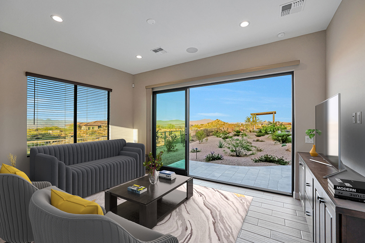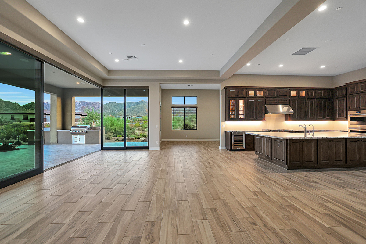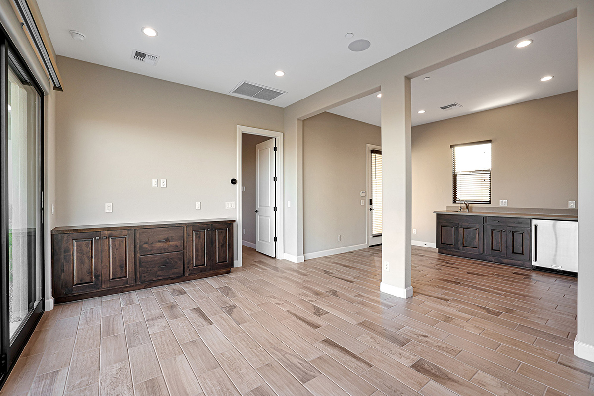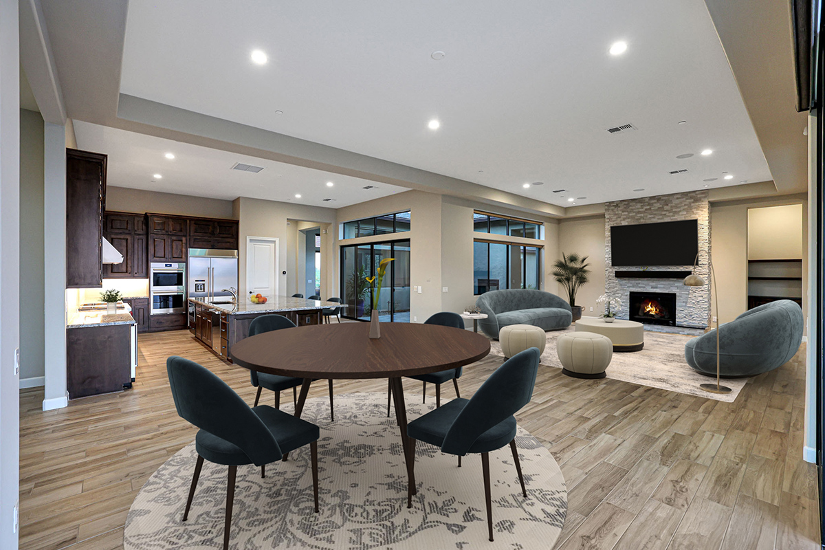 The exposed aggregate driveway and 3-car garage with designer insulated doors lead to the laundry room and drop zone, providing ample storage, as you enter from either the 2-bay garage or the separate 1-bay. Other features include: pocketing doors and stone clad fireplace in the great room; two ensuite guest bedrooms in addition to the casita; study/flex space off the great room; tile plank flooring throughout; on trend finishes throughout.