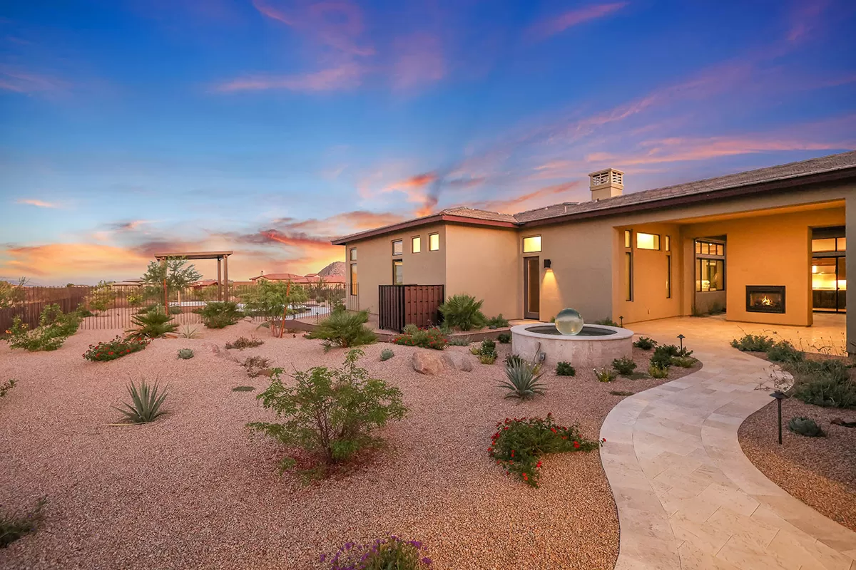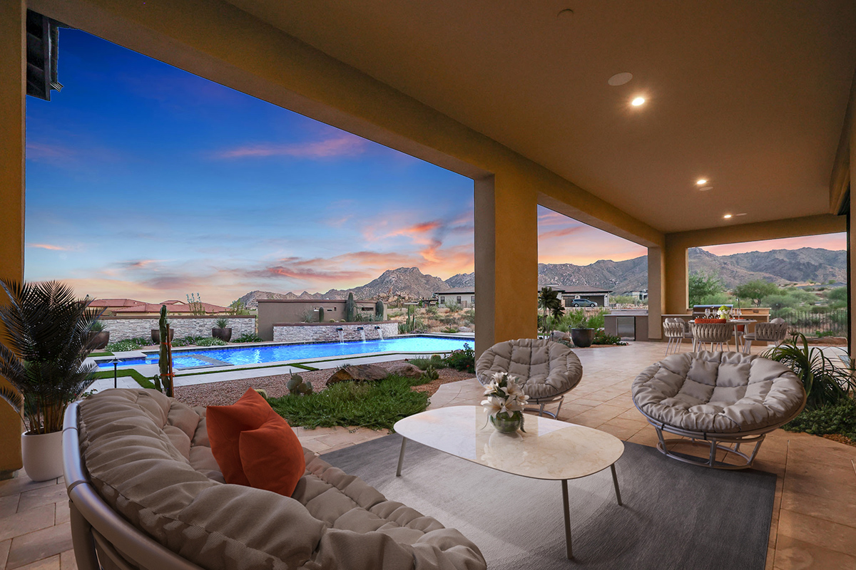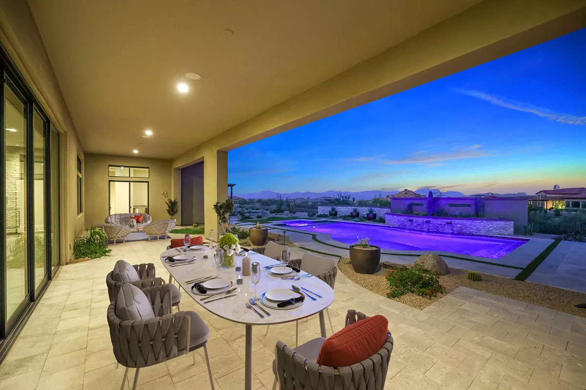 Welcome to this exquisite newly built home nestled within the premier community of Estates at Sereno Canyon, where luxury living meets natural splendor. Enjoy panoramic views of the stunning Sonoran Desert, the majestic McDowell Mountains and distant Four Peaks. This is the customized Fleming floor plan, enhanced with an expanded attached casita on the courtyard side, encompassing a full kitchenette, living room, bedroom, full bath, walk-in closet, and private entry door.