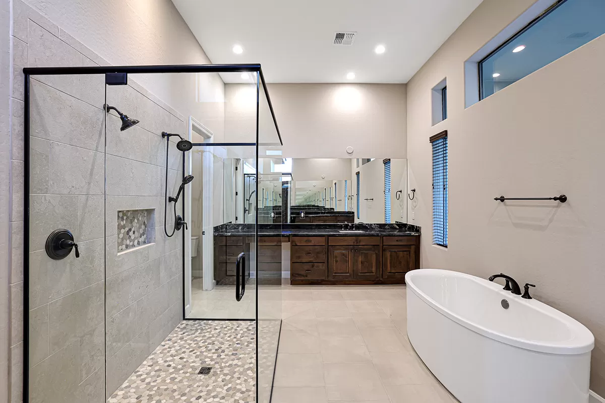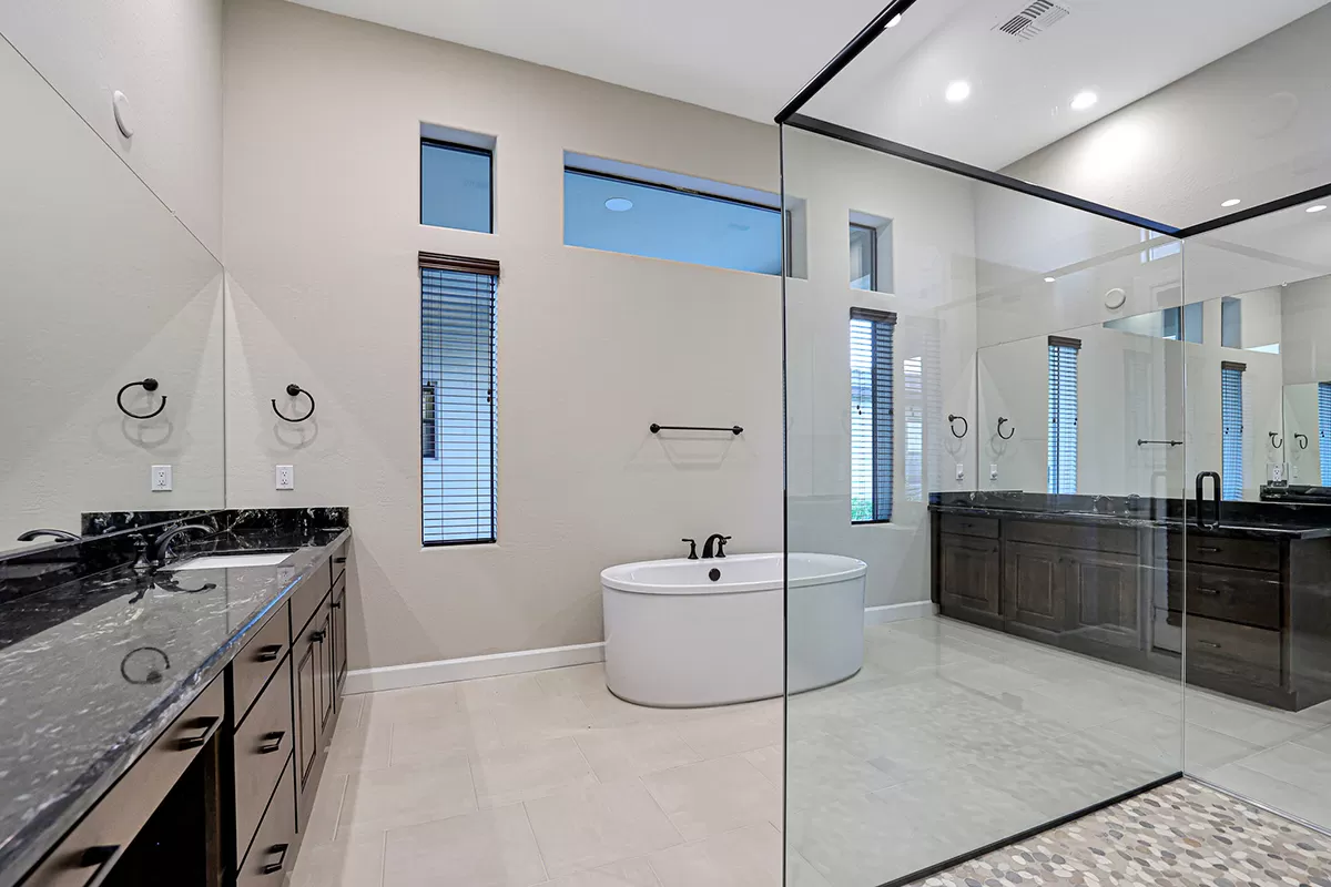 Enjoy peace of mind with the advanced QuickFlash exterior penetration system, quality 2×6 exterior wall construction, full exterior wood sheathing, and efficient R-19 insulation in exterior walls. Tyvek house wrap offers added moisture protection, while insulation at interior plumbing walls reduces sound transfer. Energy efficiency is paramount, featuring a Rinnai Tankless water heater, reverse osmosis, and soft water systems. Dual-pane, Low-E insulated glass in all windows and sliding glass doors ensures comfort year-round, complemented by the high-efficiency 14-SEER air conditioning systems by Carrier. The Smart Home Technology Package includes keyless entry lock, Wi-Fi thermostats, and Wi-Fi garage control for your convenience.