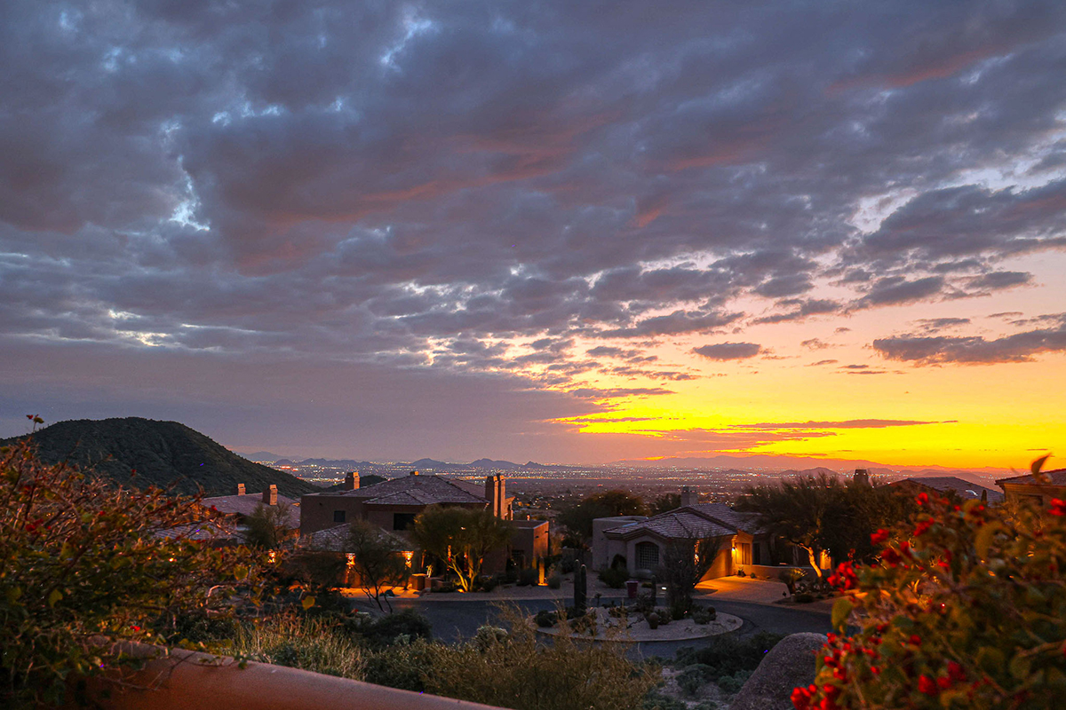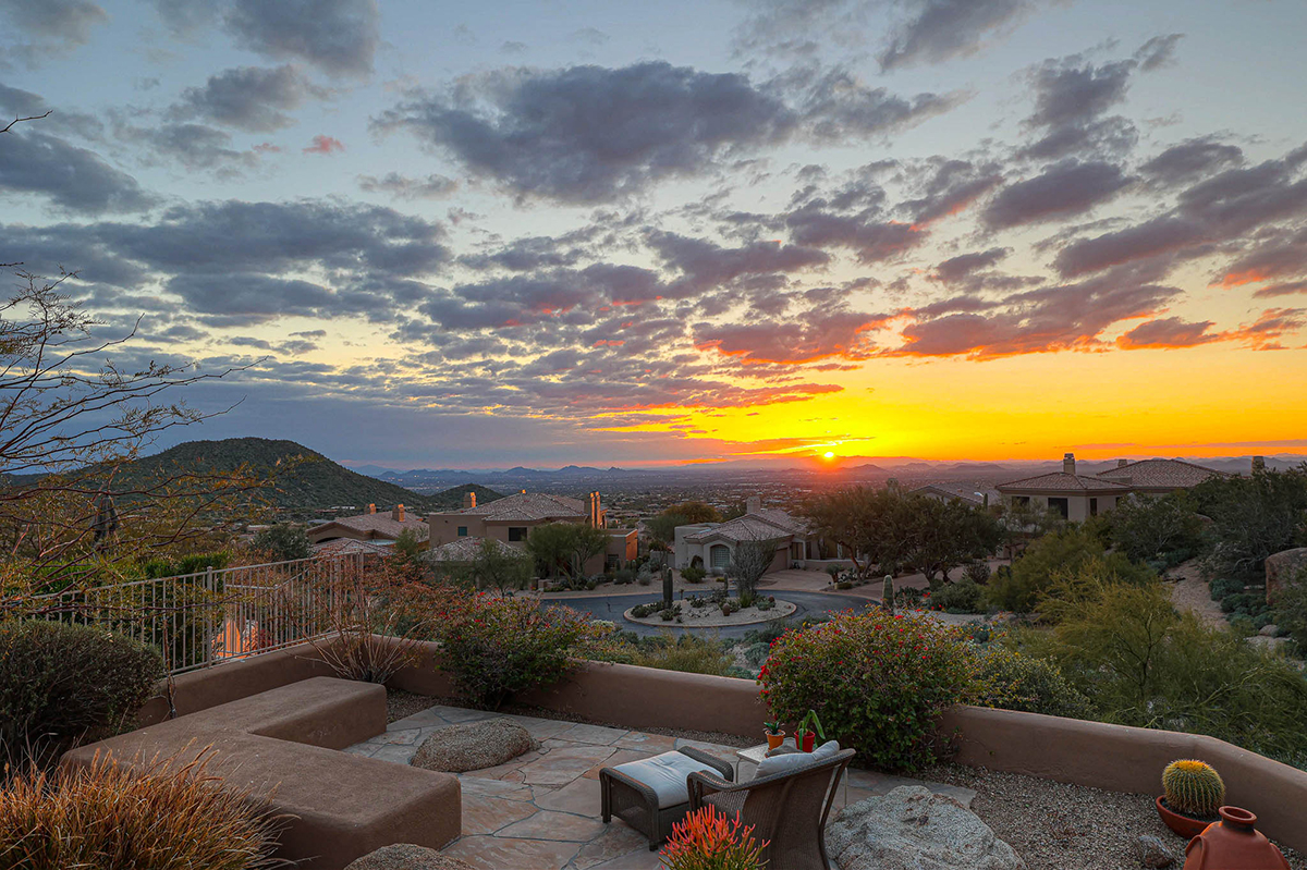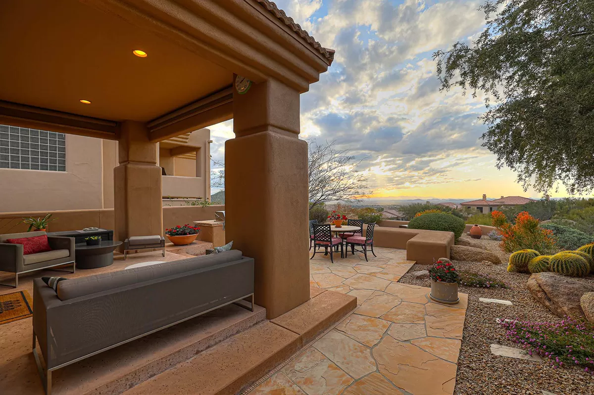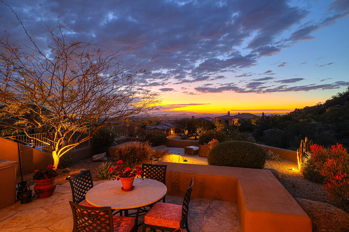 This stunning home in gated Whispering Ridge at Troon Village boasts remarkable views of city lights and mountains, and is situated on arguably one of the best lots in the community. Most furnishings and accessories are available by Separate Bill of Sale, including the car, allowing the Buyer to have a turn key experience.