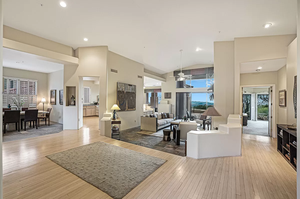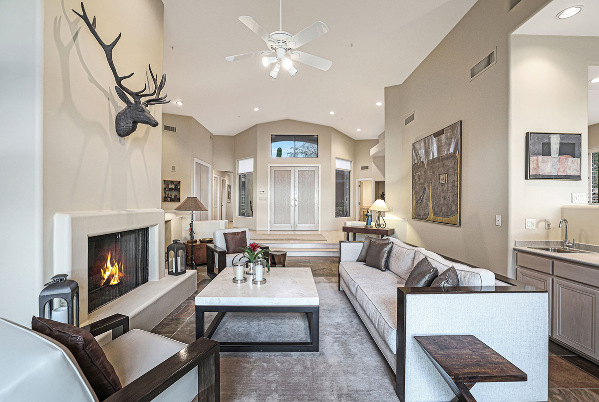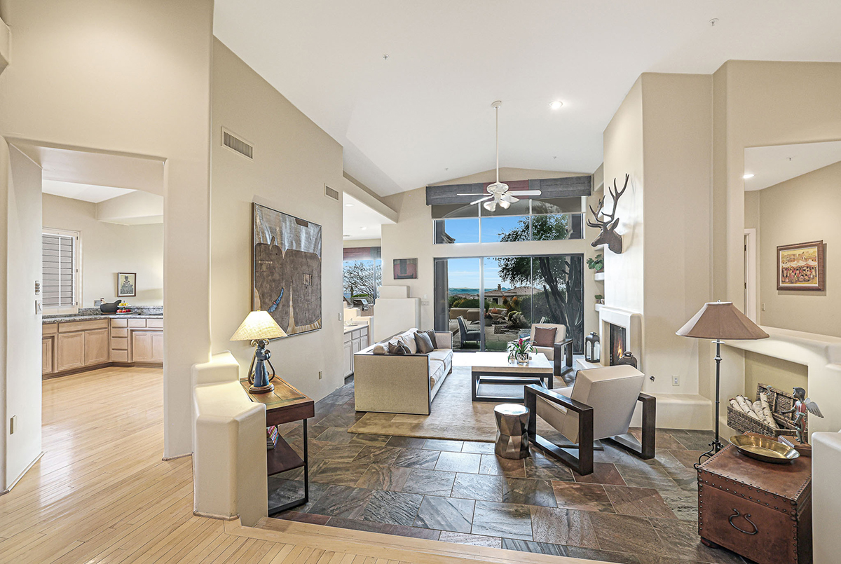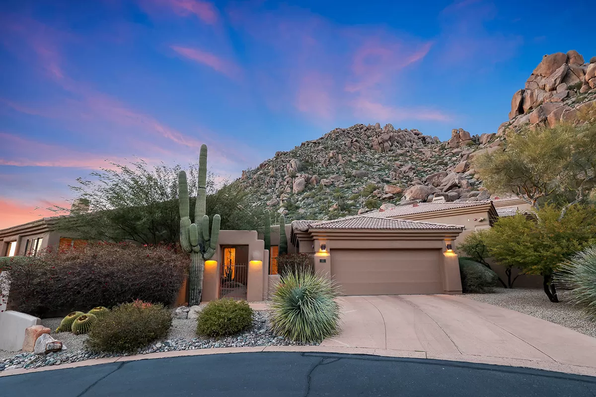 This stunning home in gated Whispering Ridge at Troon Village boasts remarkable views of city lights and mountains, and is situated on arguably one of the best lots in the community. Most furnishings and accessories are available by Separate Bill of Sale, including the car, allowing the Buyer to have a turn key experience.