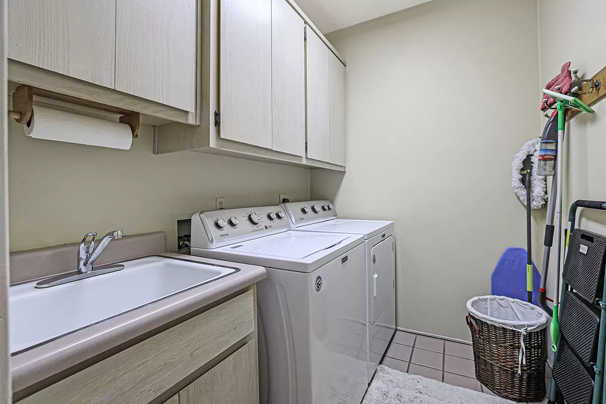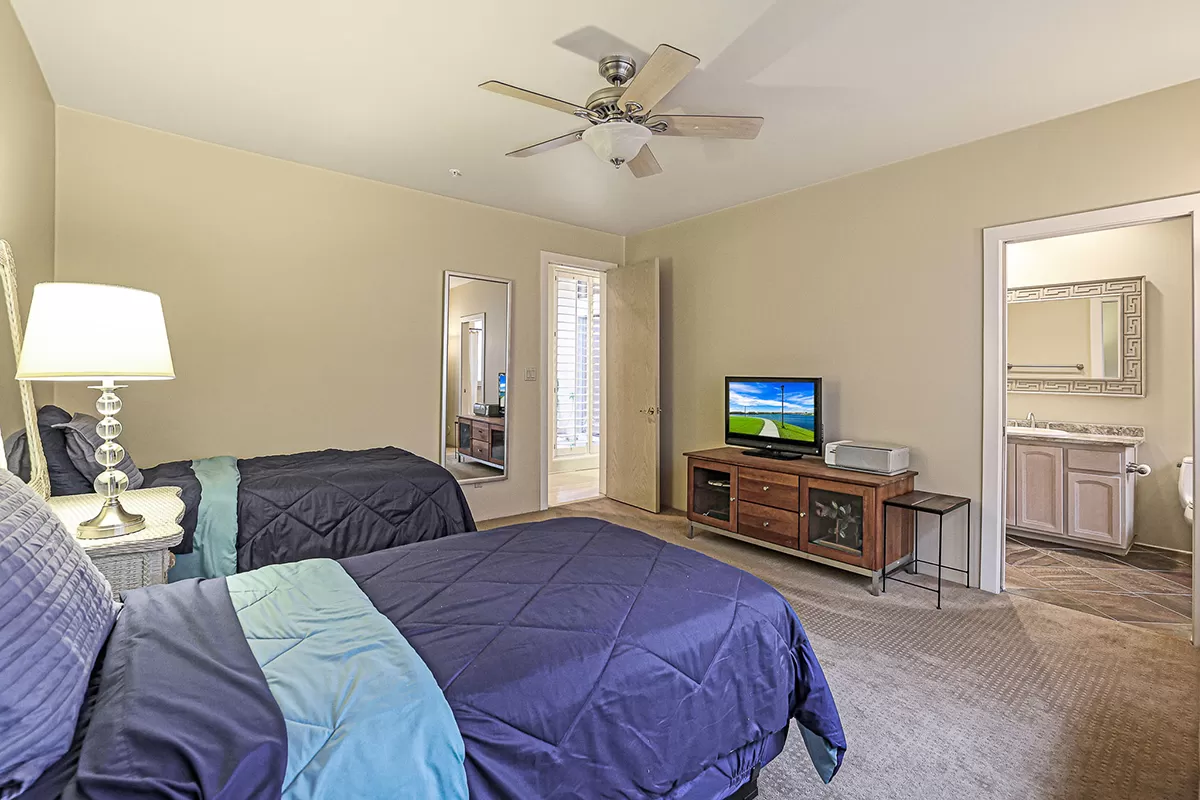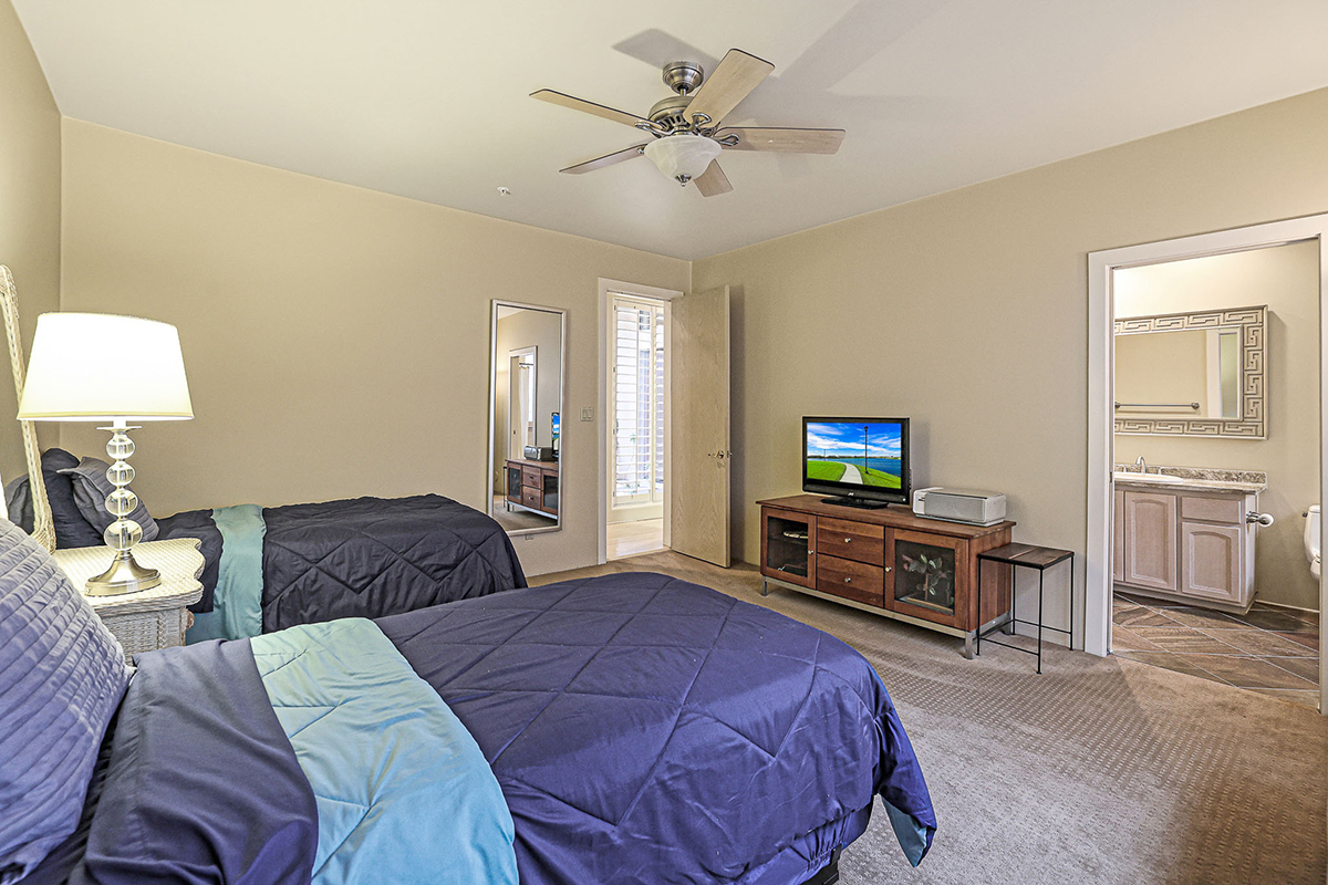 Privacy abounds with the home being surrounded on three sides, ensuring a peaceful and secluded living experience. The home features two ensuite bedrooms, as well as a powder bath for guests.