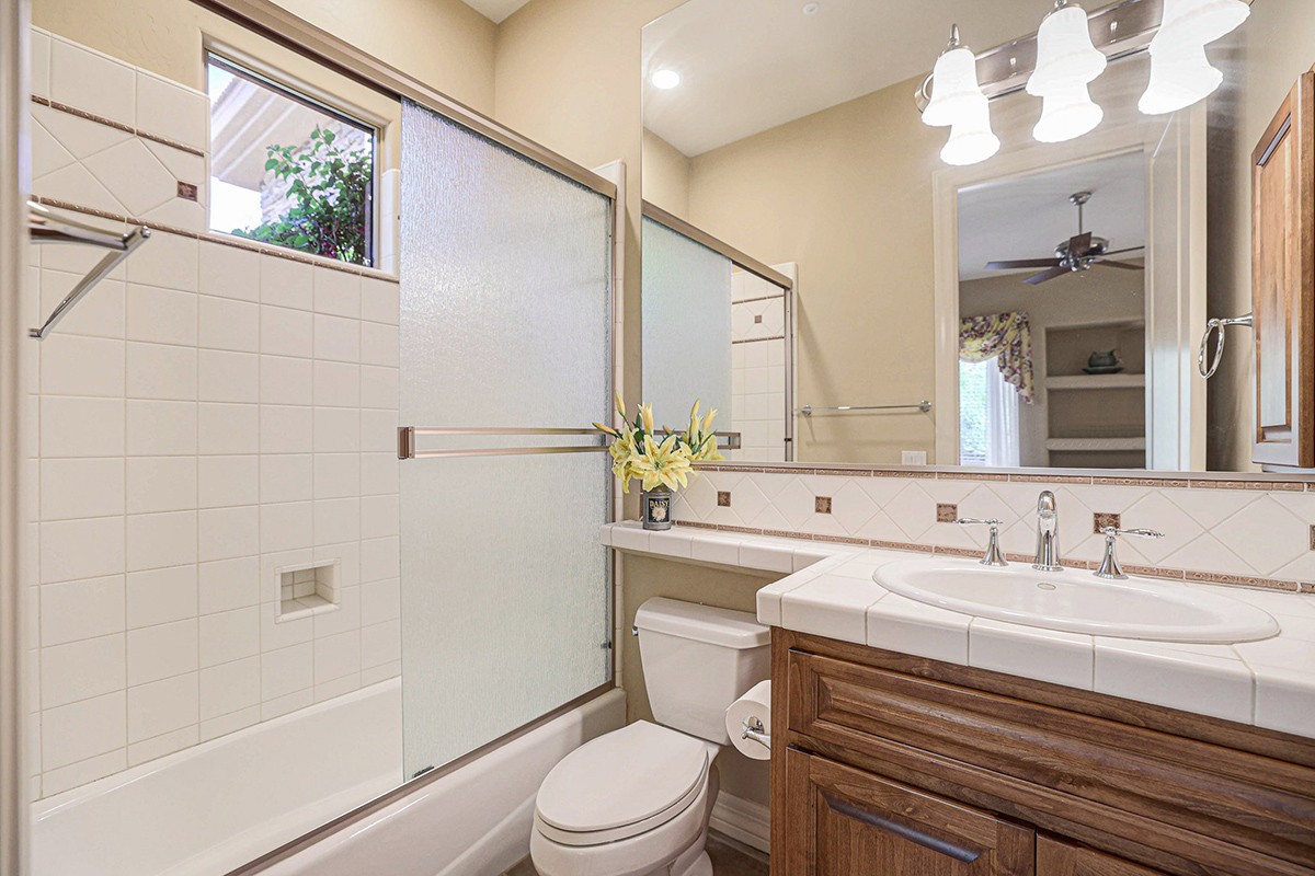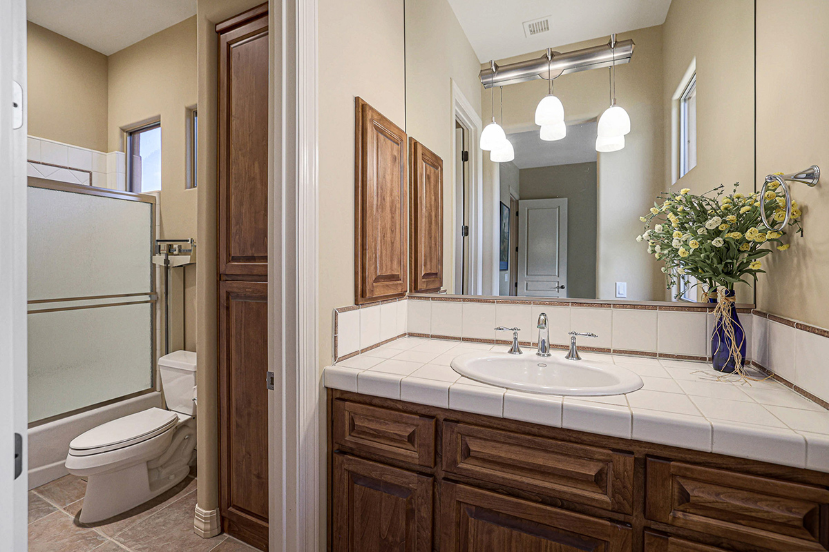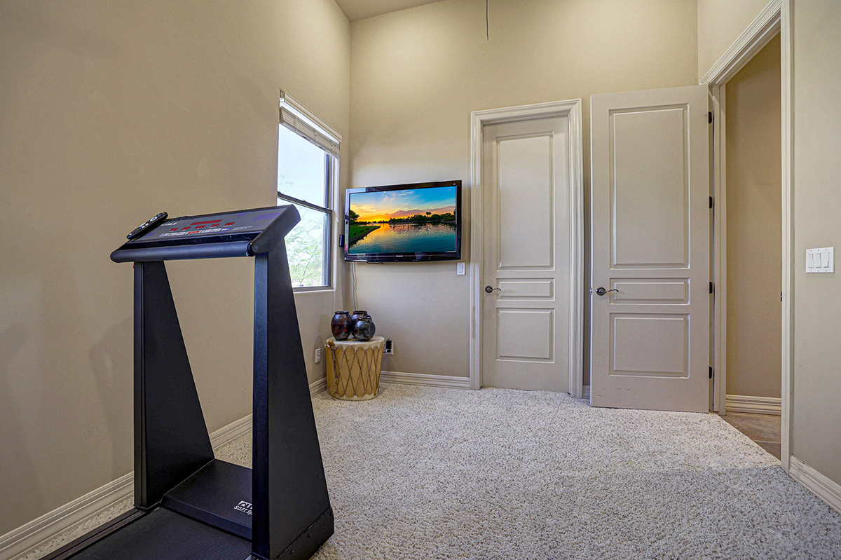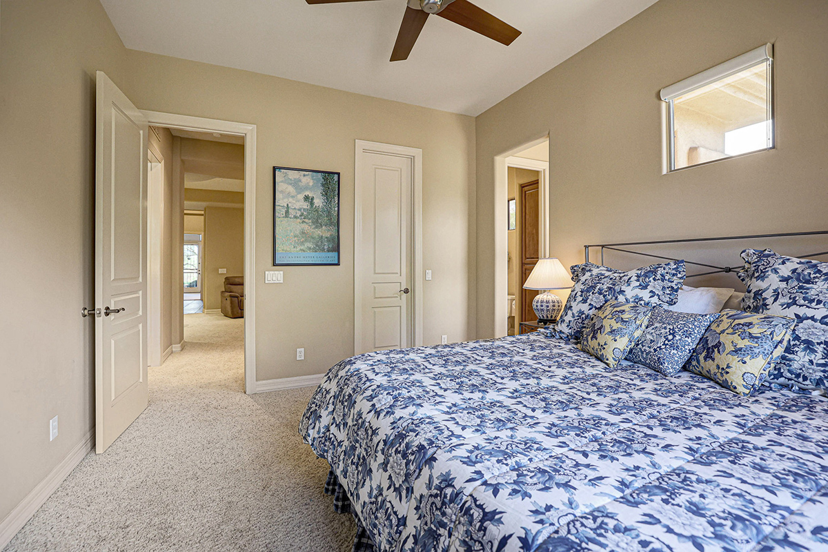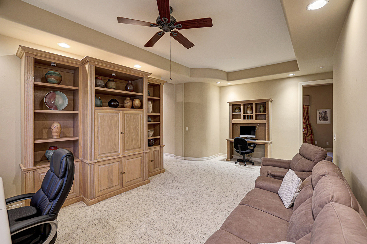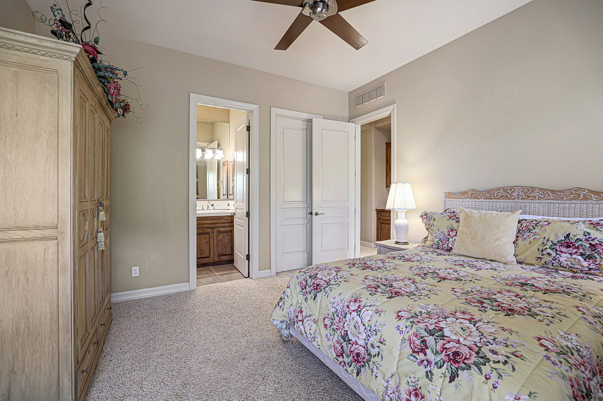 Three guest rooms are preceded by a bonus room, perfect for a den or office space, while the fourth guest bedroom provides privacy on the opposite wing of the house, ideal for visiting guests or in-law accommodations.