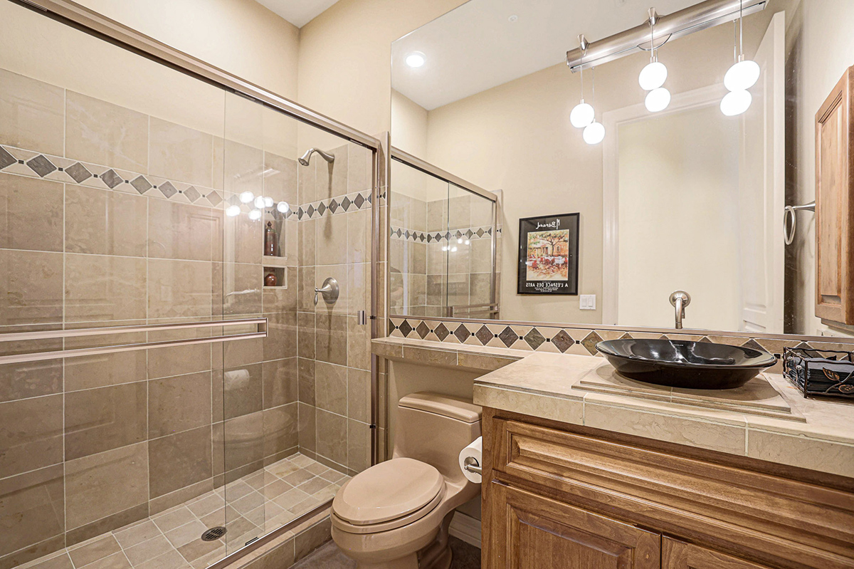 Step into your backyard oasis, where every detail has been crafted to create the ultimate retreat. Lounge by the sparkling heated pool or unwind in the elevated spa with a soothing waterfall feature. Entertain guests on the covered patio spaces that step down to poolside lounging areas, complete with a fire pit and artificial turf putting green.