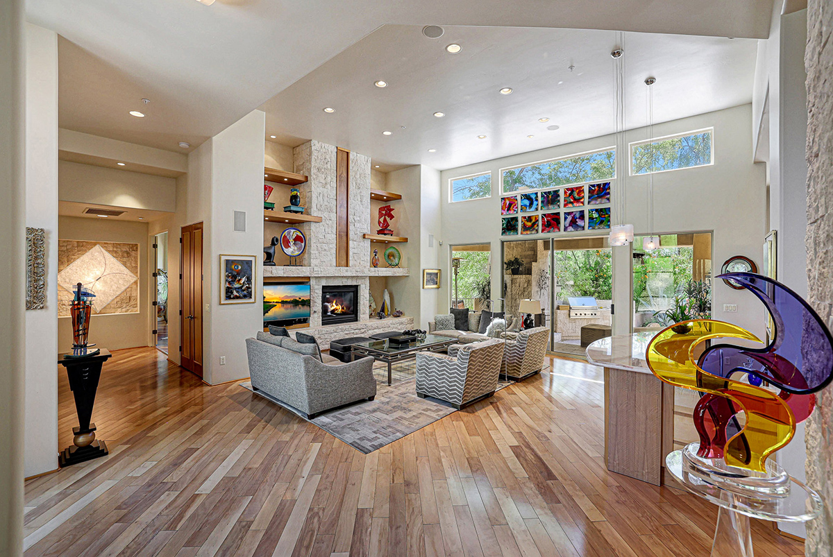 Welcome to the guard-gated enclave of Candlewood Estates at Troon North, where this contemporary masterpiece redefines luxury living in North Scottsdale. Boasting a seamless fusion of style and functionality, this 3-bedroom residence with an office and library exudes sophistication at every turn. Spanning over 3,720 square feet, step through the custom wood and glass double front doors into a world of refinement, where solid wood doors, high ceilings, and exquisite detailing captivate.