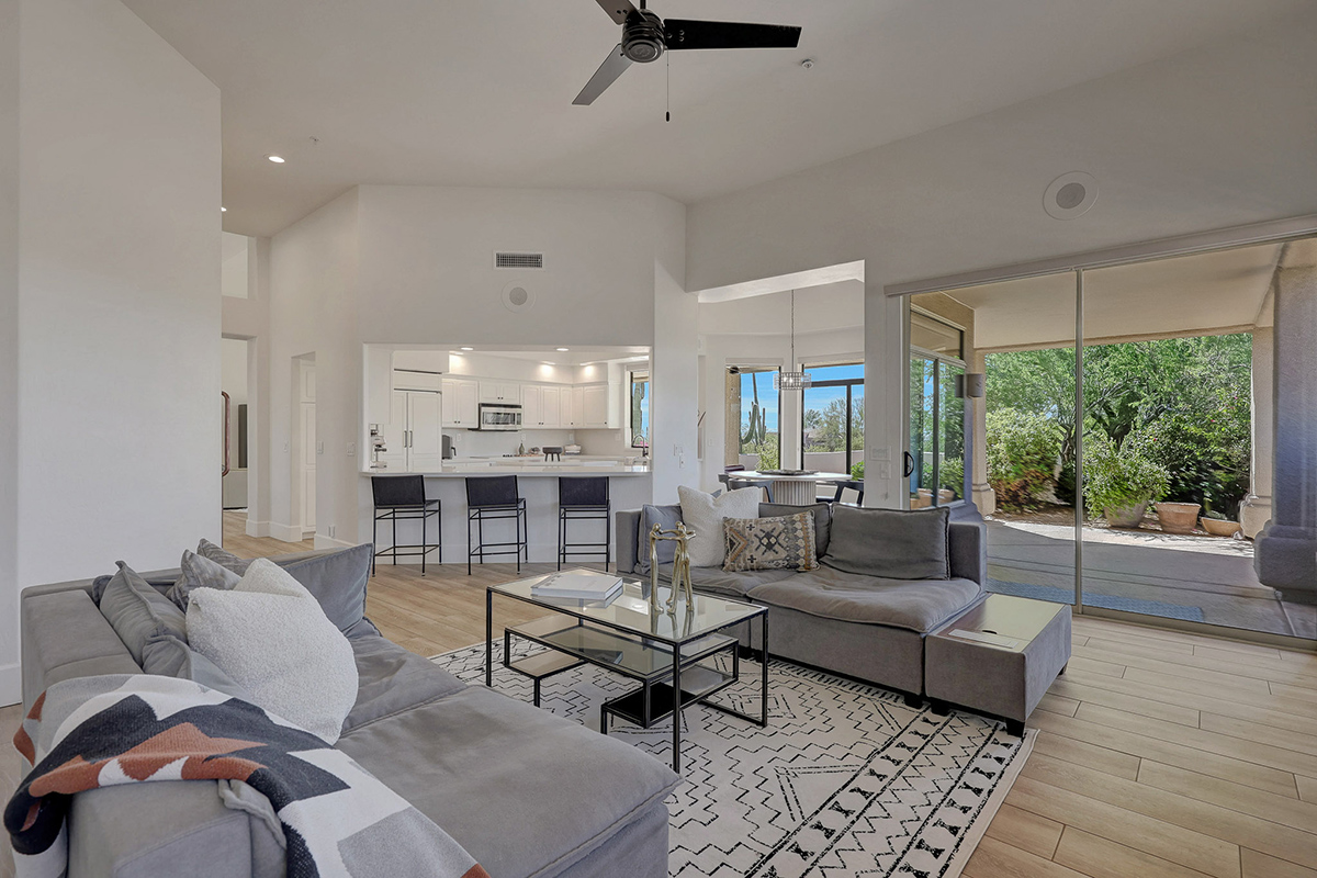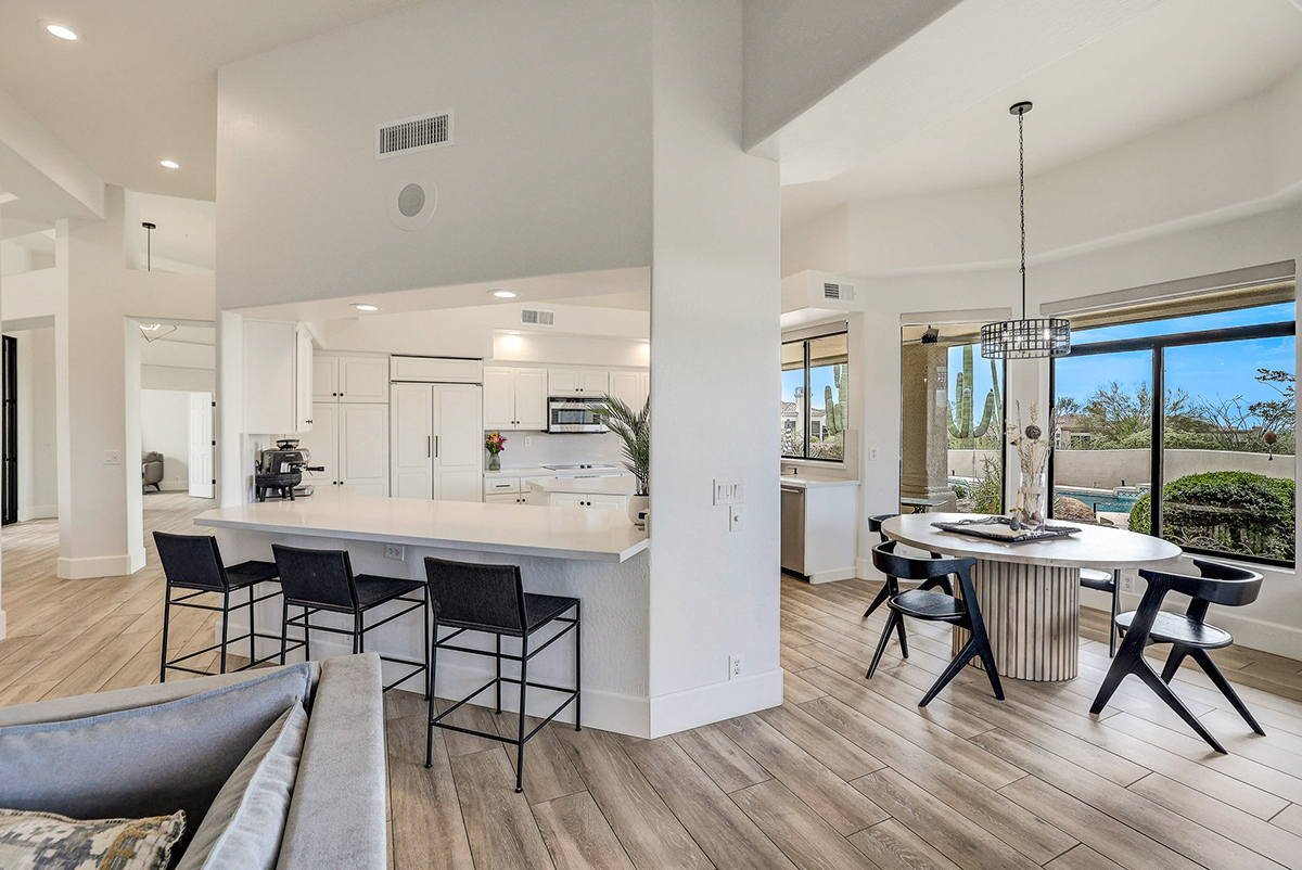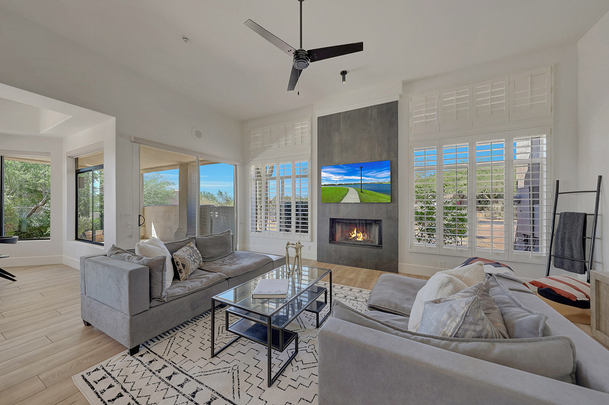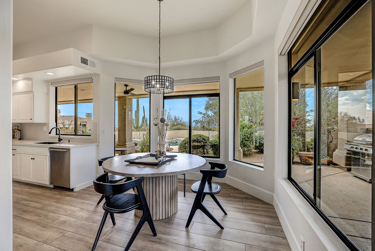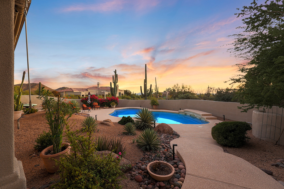 Nestled within the exclusive gated community of Eagles Glen, this meticulously renovated 4-bedroom, 2.5-bathroom home offers unparalleled luxury and comfort with 360 degree mountain views including iconic Pinnacle Peak and city lights. Spanning 3,007 square feet, this home boasts a spacious layout perfect for modern living all on a large corner lot.This pocket neighborhood has low HOA fees and a Pickelball court right in your neighborhood!