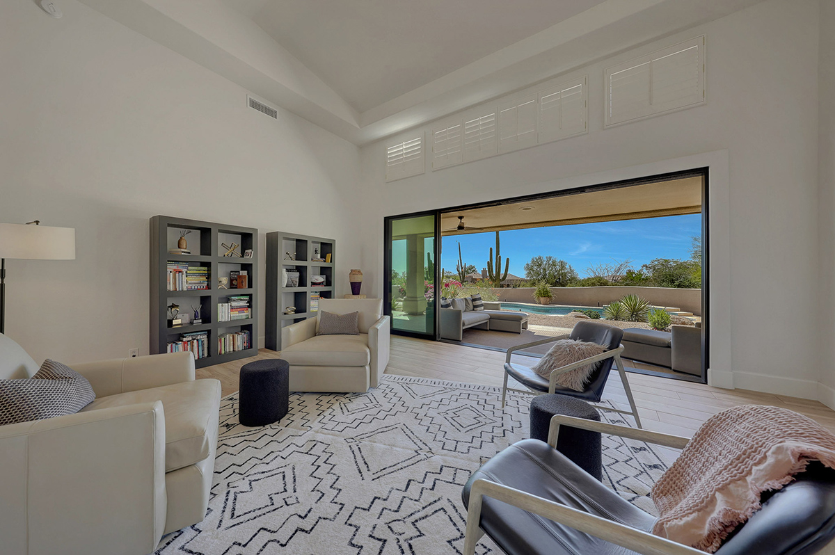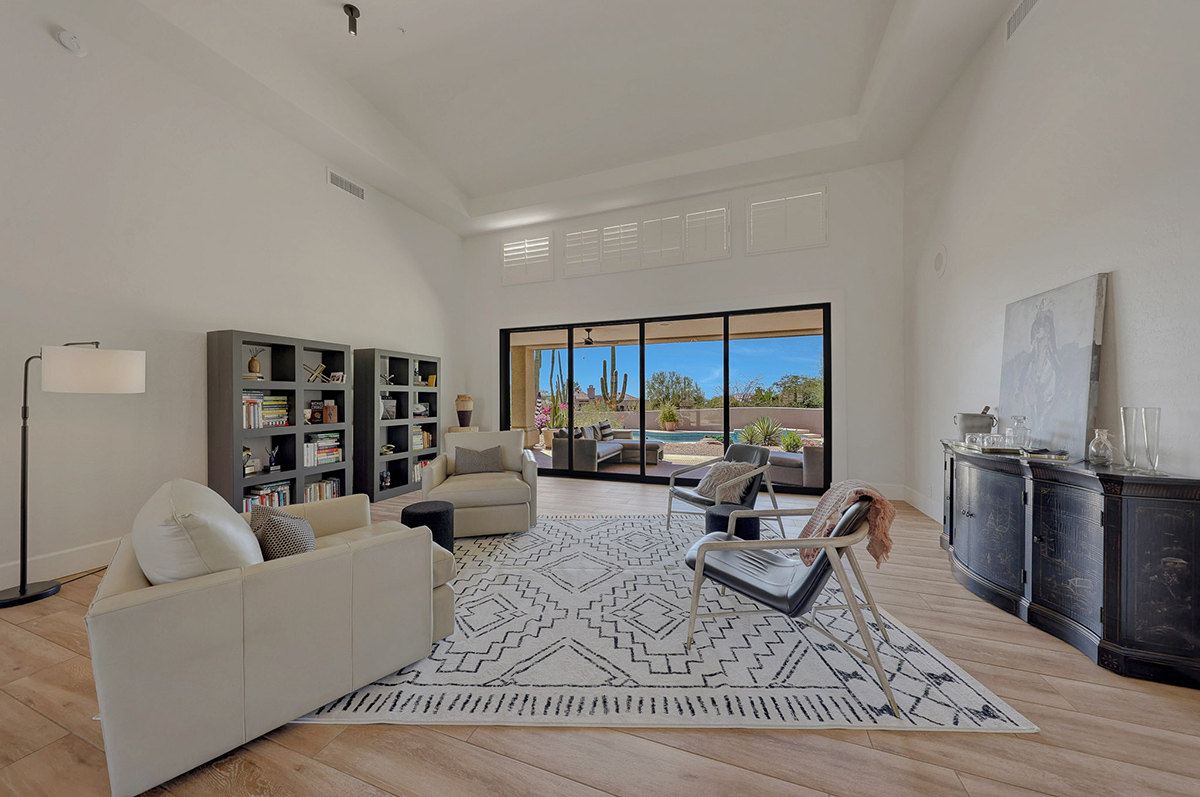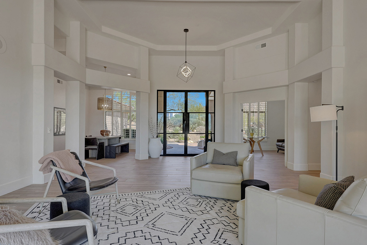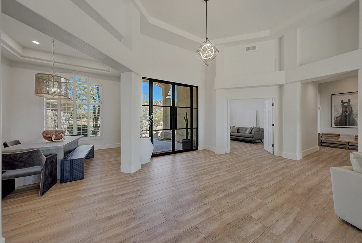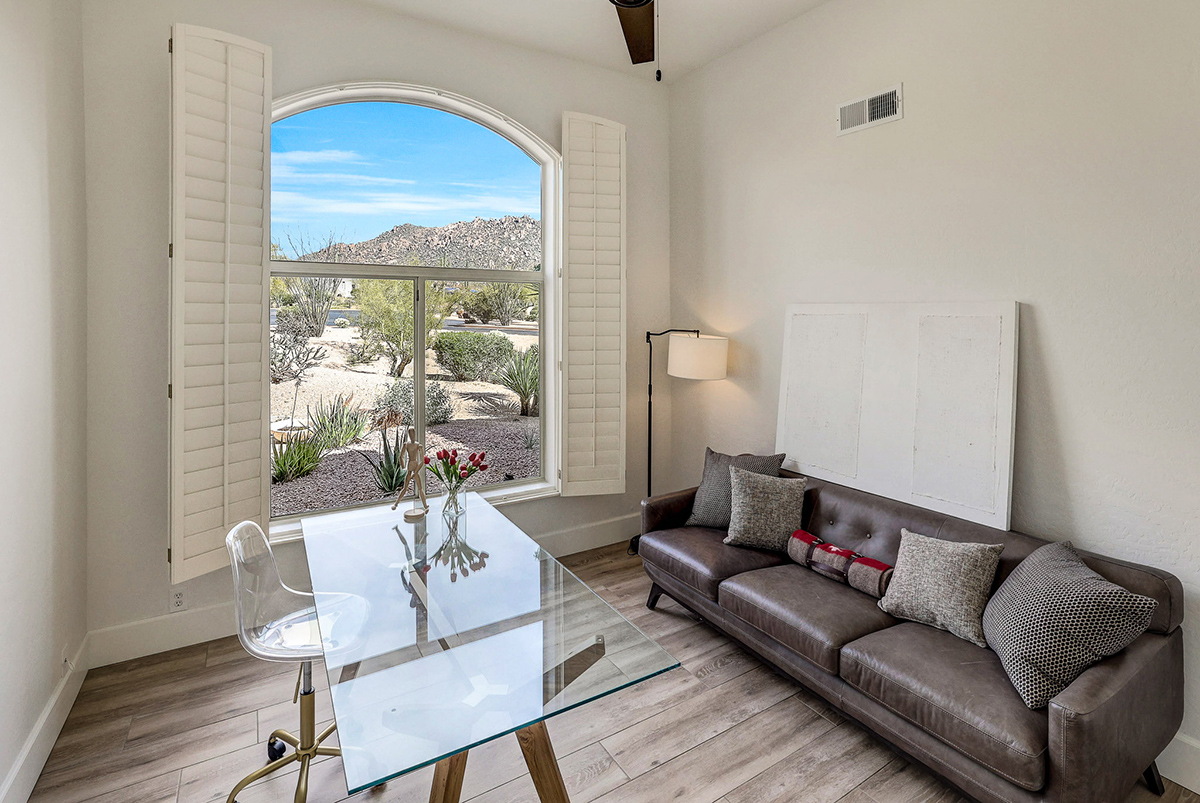 Nestled within the exclusive gated community of Eagles Glen, this meticulously renovated 4-bedroom, 2.5-bathroom home offers unparalleled luxury and comfort with 360 degree mountain views including iconic Pinnacle Peak and city lights. Spanning 3,007 square feet, this home boasts a spacious layout perfect for modern living all on a large corner lot.This pocket neighborhood has low HOA fees and a Pickelball court right in your neighborhood!