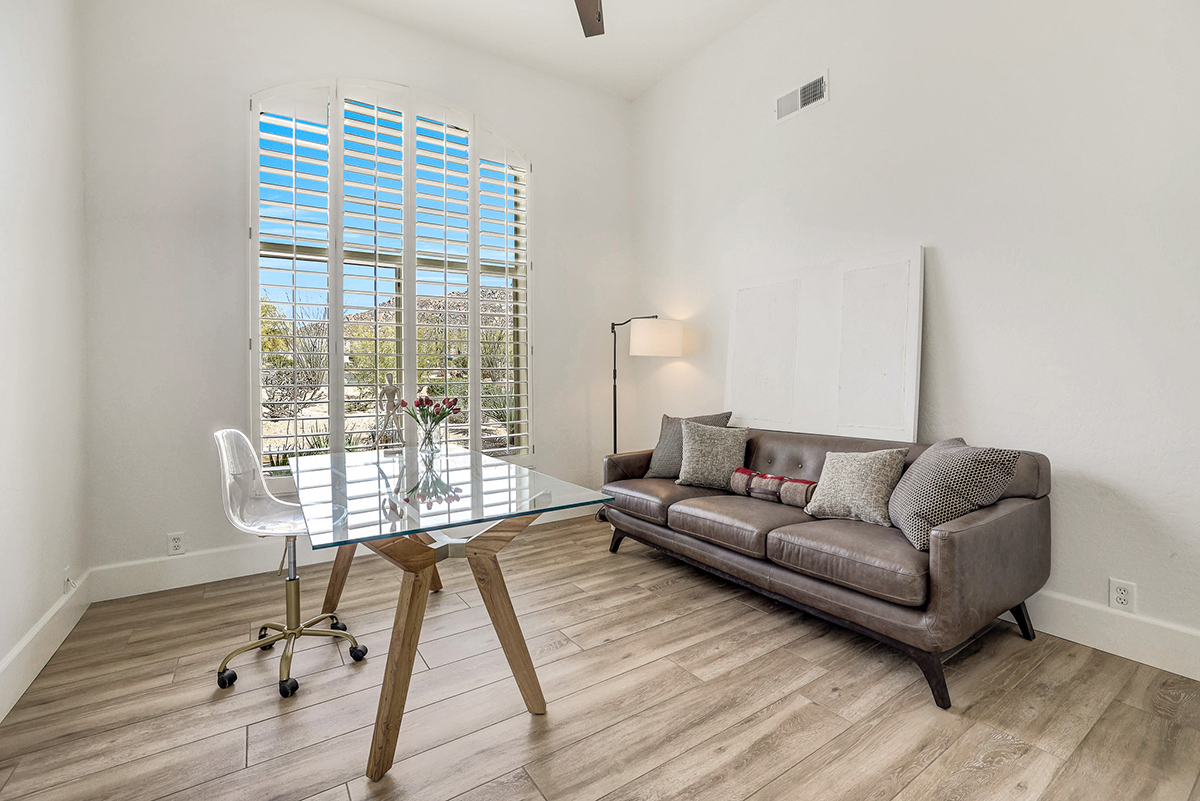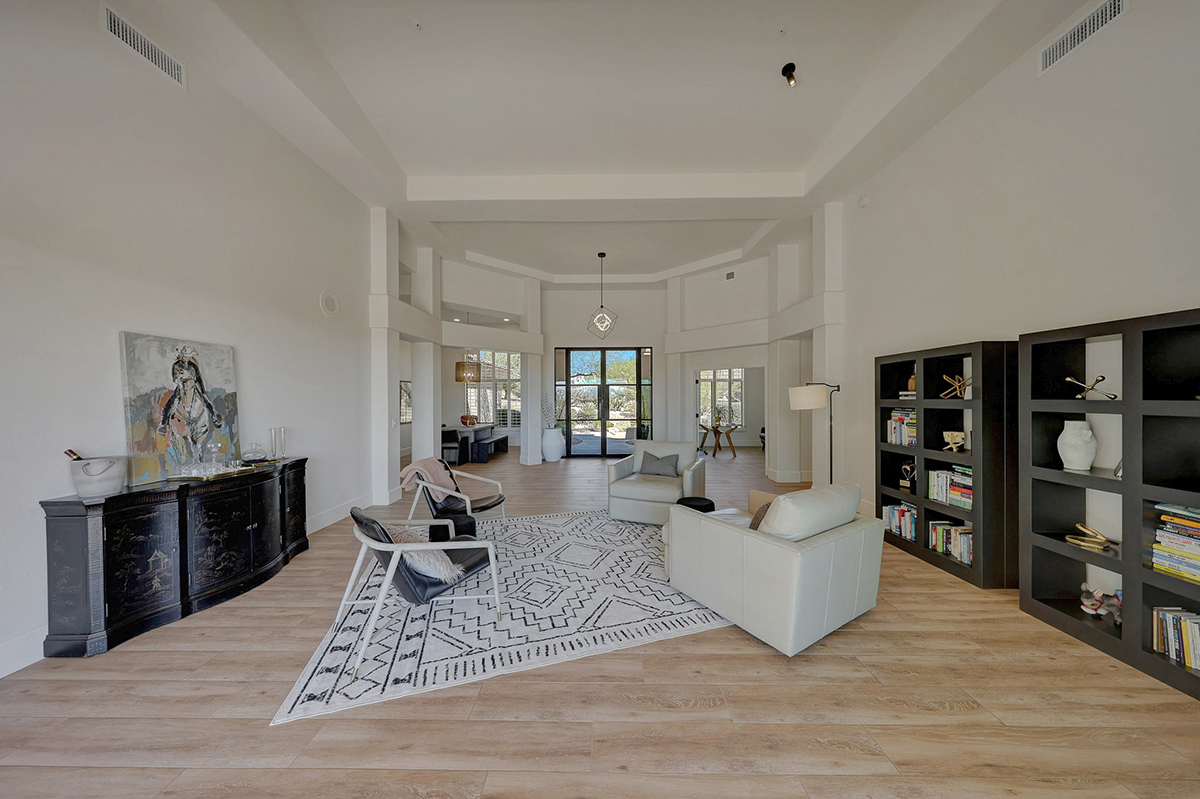 Step outside to a private oasis including a sparkling pool with refreshed Pebbletec surface, and a large covered patio. Embrace the desert grounds, featuring cacti and rock accents and updated irrigation for effortless maintenance.
