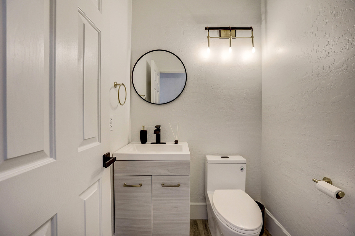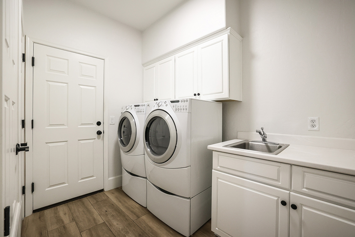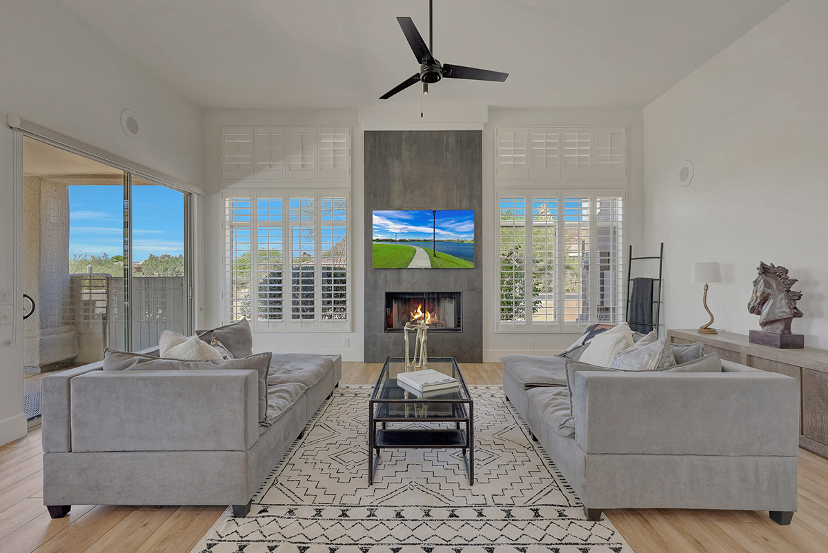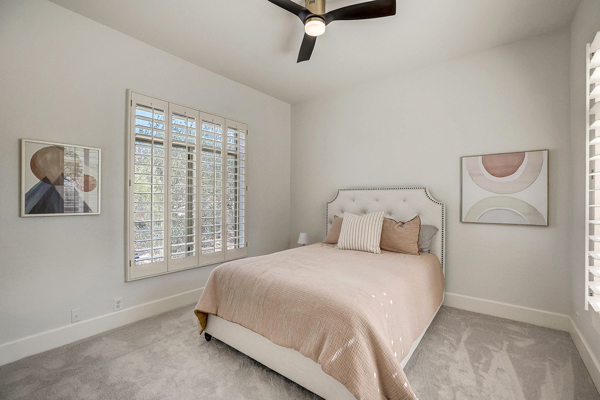 A remodeled powder bath for guests, plantation shutters, a three-car garage, and a laundry room with prep sink complete the home. Other recent upgrades include replaced AC units, new water softener, new exterior paint, new landscaping lights, complete new landscaping rock, and new epoxy garage flooring.