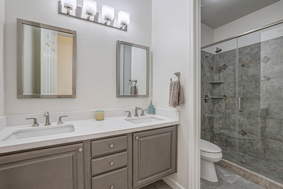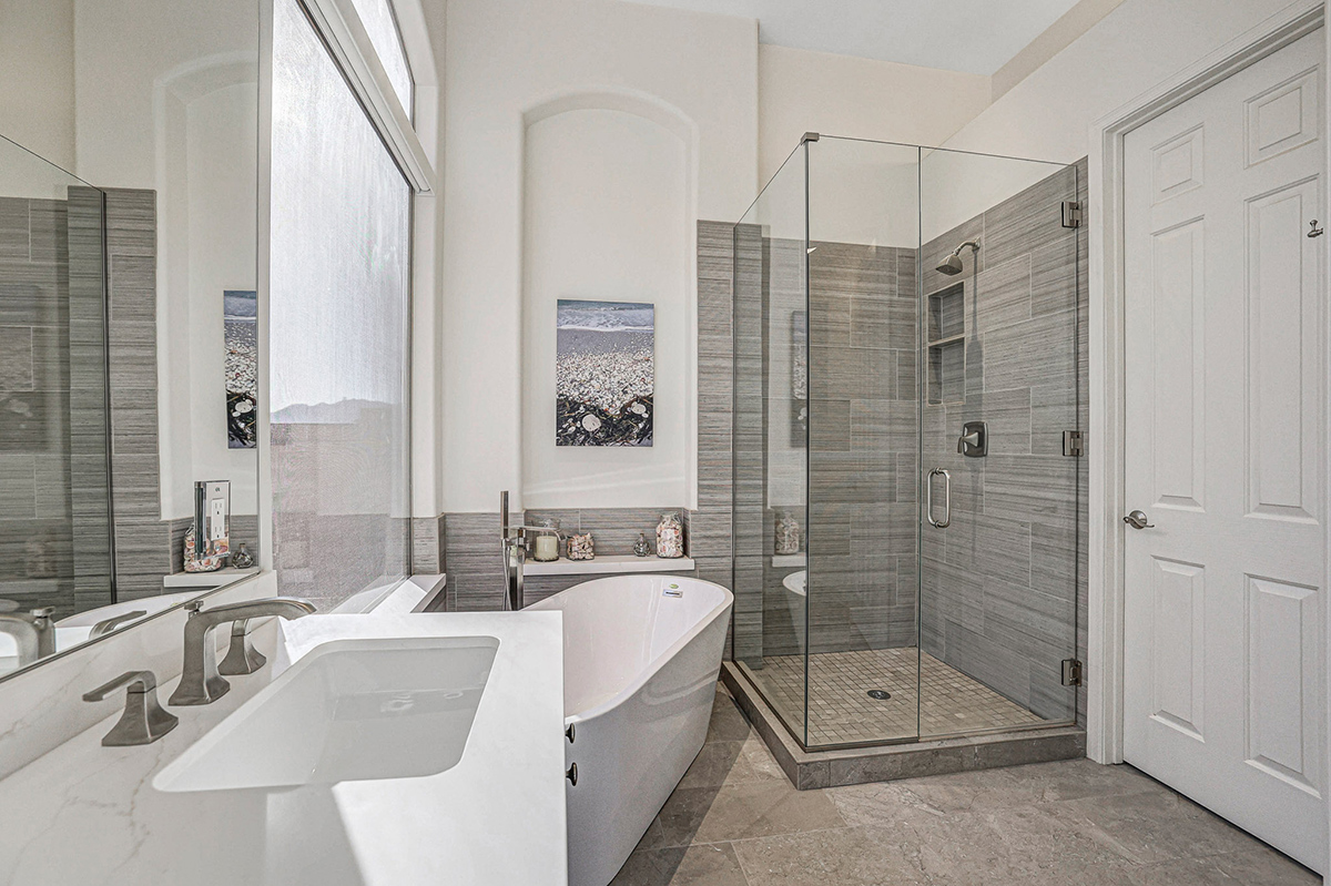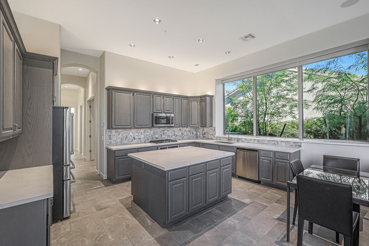 The home was extensively updated in 2022. Kitchen and baths were remodeled, new Italian floor tile was installed throughout the house, hardware was updated, the interior was repainted, and electronic interior window shades were added.