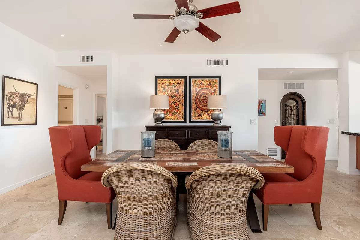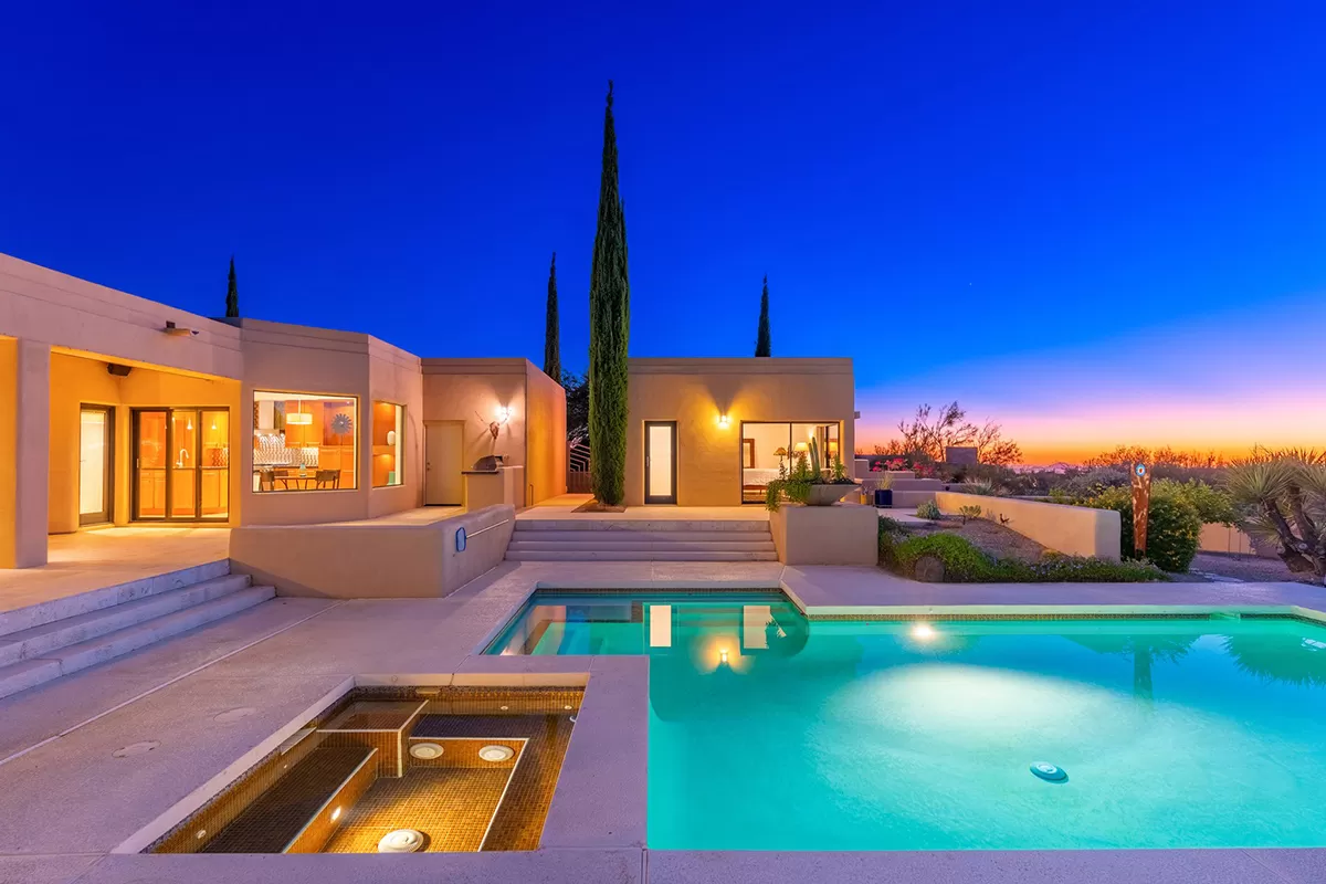 With classic Southwest styling, including smooth stucco and a red tile roof, this home blends charm with modern comforts, all set against the backdrop of the serene desert landscape.