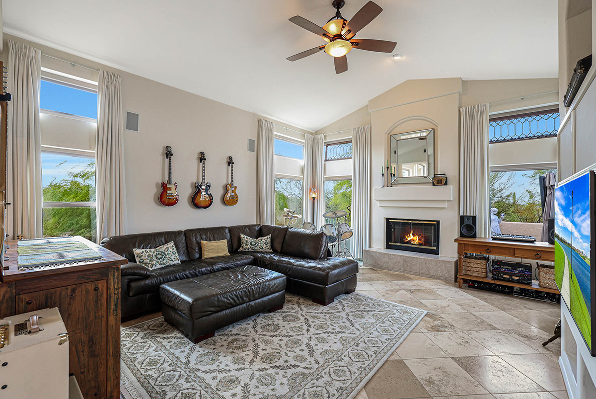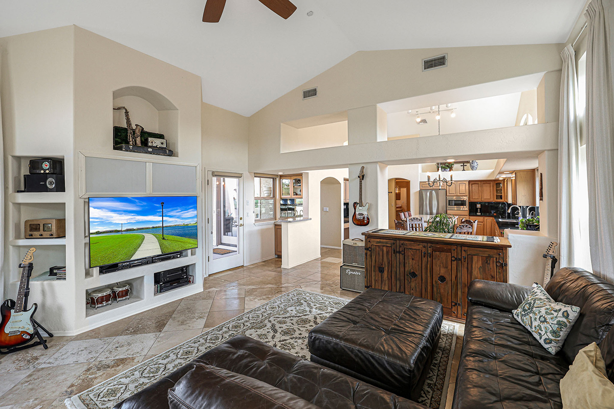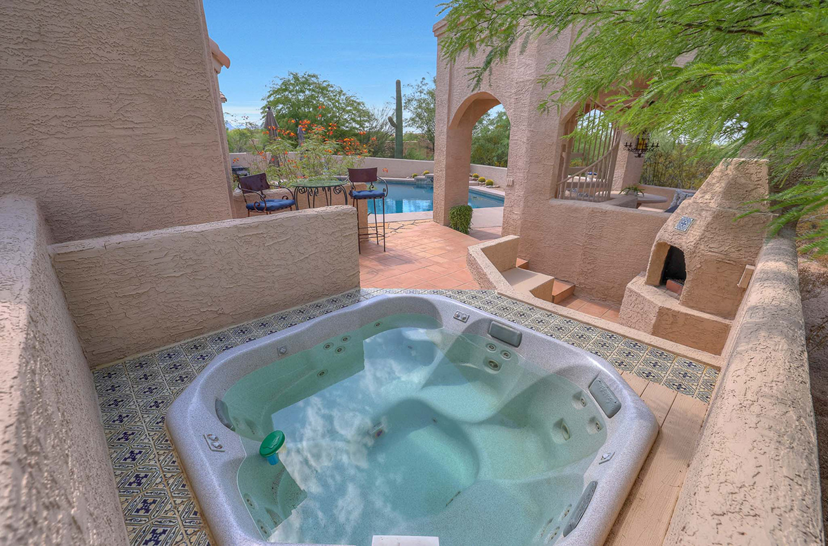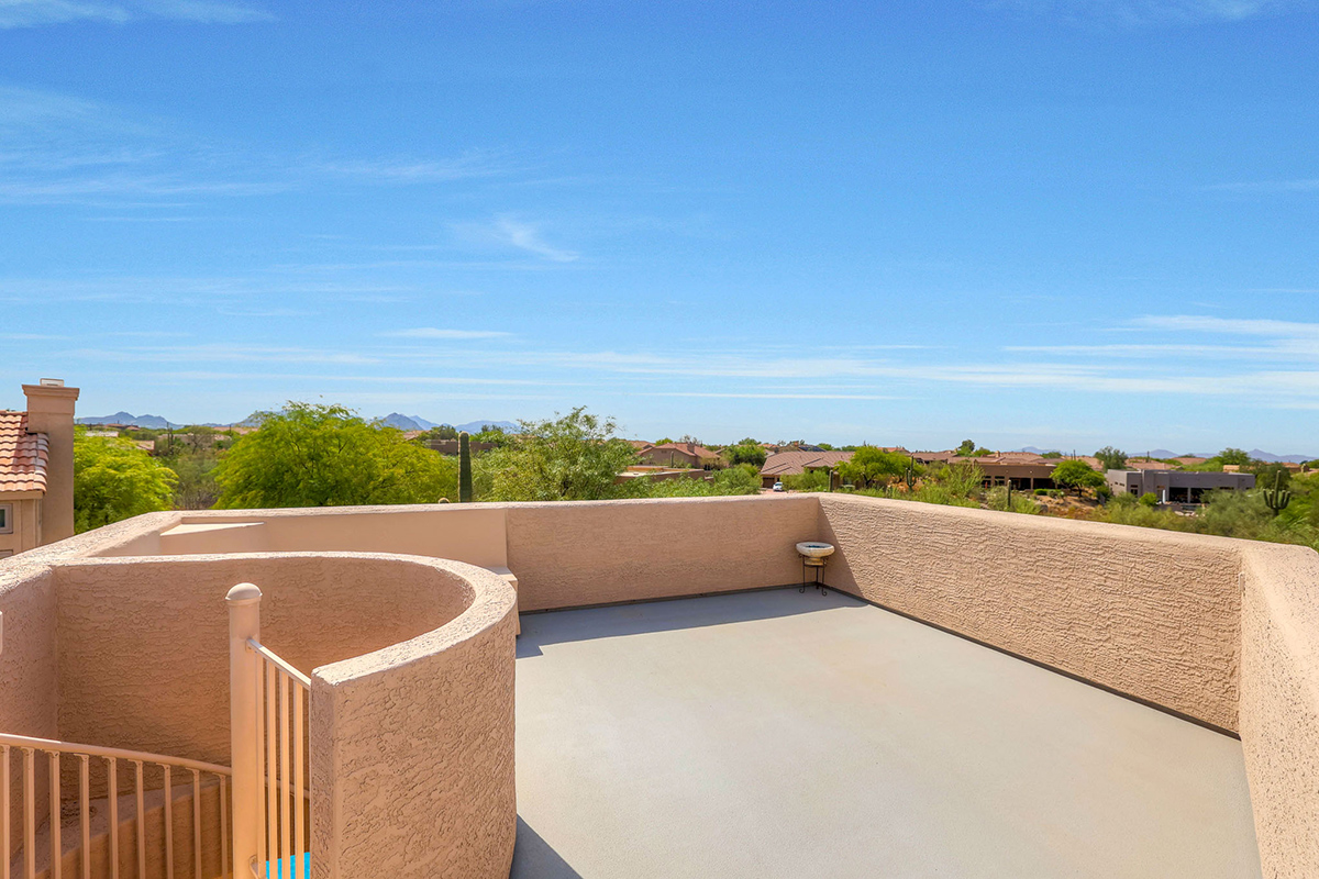 The true jewel of this property is the outstanding backyard with a sparkling diving pool, covered ramada with built-in table and bench seating, spa with new tile surround, built-in BBQ, and a spiral staircase leading to the view deck. From the view deck, you can indulge in the beauty of sunset and mountain views over the pristine pool and spa. The pool was given a stunning makeover in 2022, featuring Stone Scape pebble sheen coating, new tile, and forged bronze spouts.