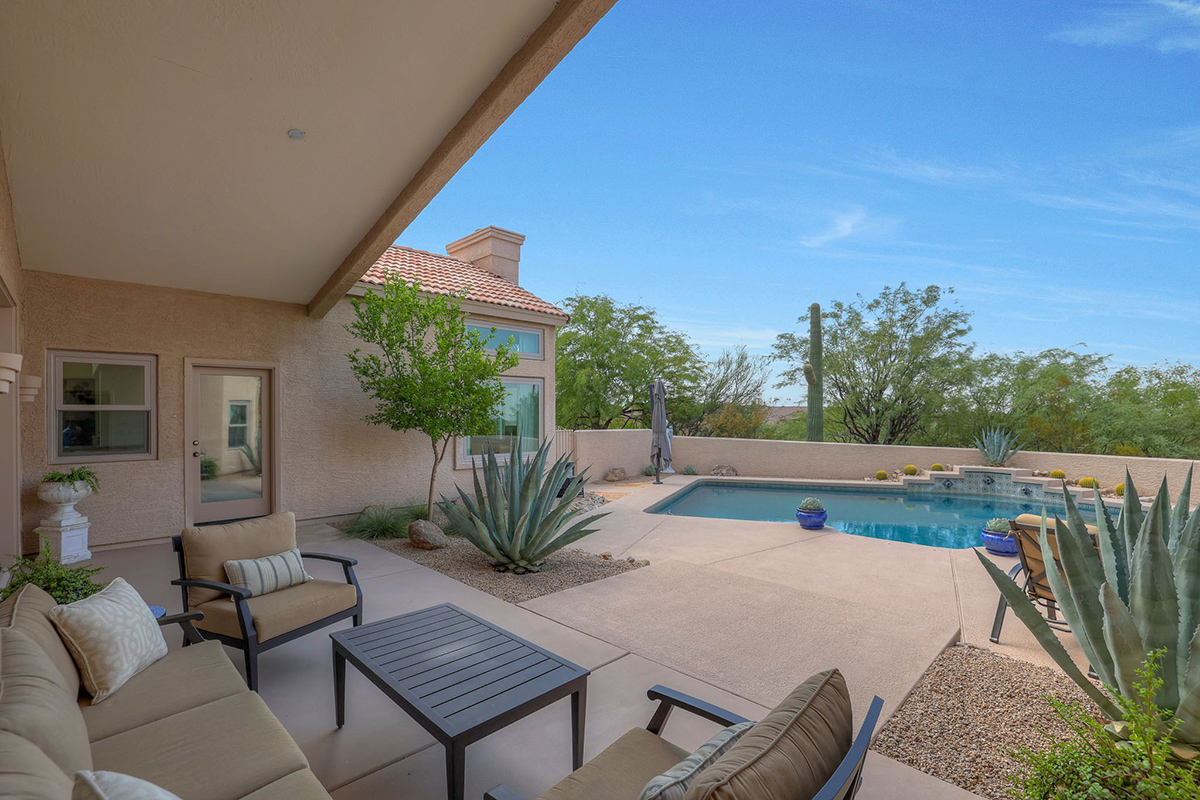 Other features include: Bluetooth-controlled variable speed pool pump with a filter; Installation of modern Energy Star Milgard windows; added ceiling fans; new hot water heater in 2021; WiFi smart thermostats for both HVAC units; Modern LED lighting and dimmer switches throughout; reverse osmosis drinking water system; Three-car garage with evaporative cooler and circle drive for ample parking.