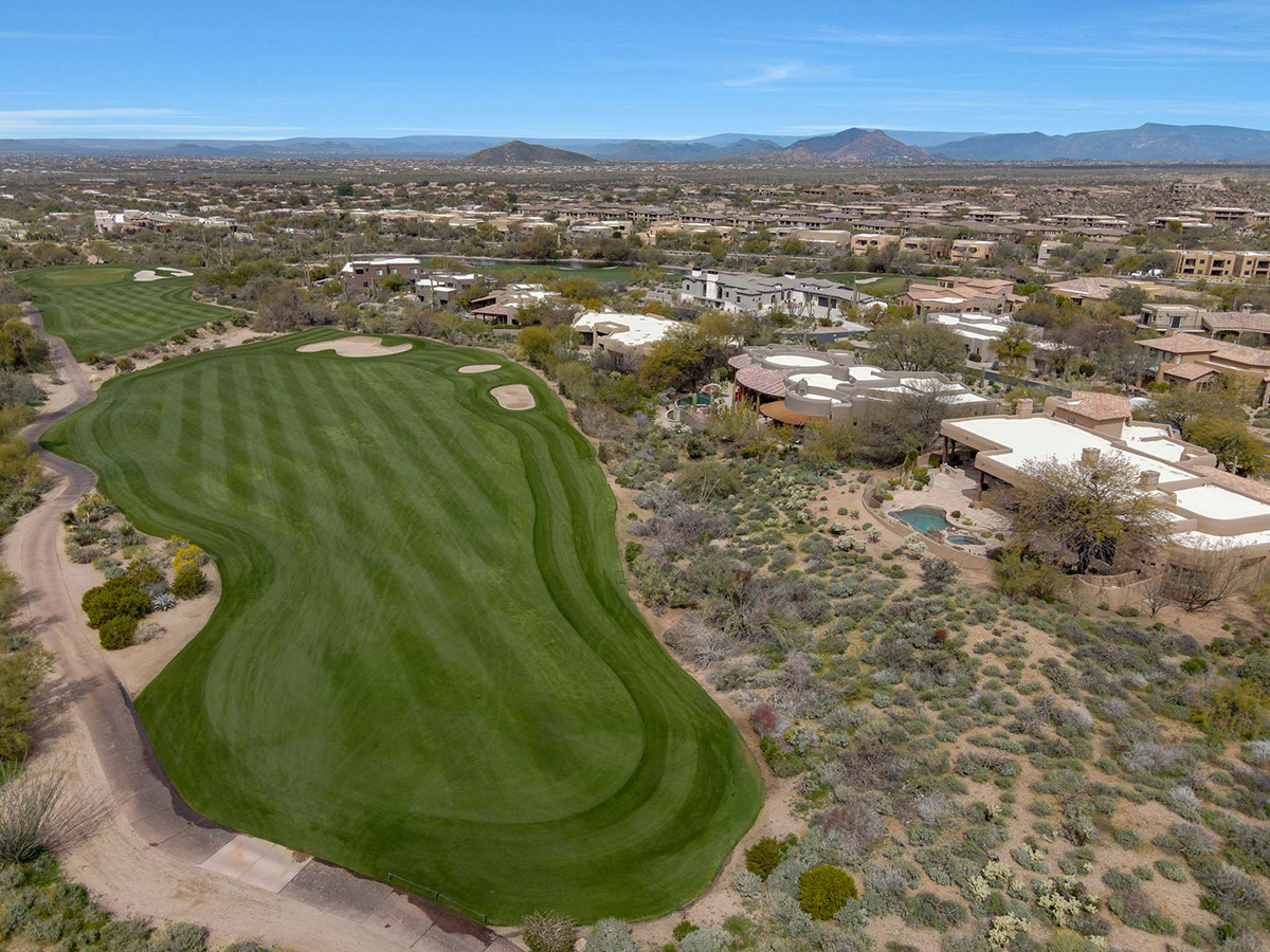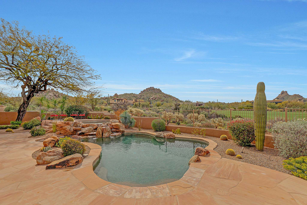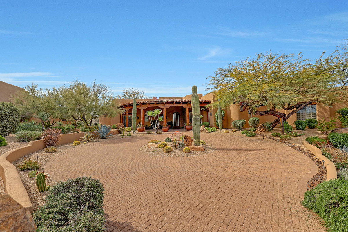 Located in the gated community of Pinnacle Canyon at Troon North, this stunning custom Southwest-inspired estate offers an unparalleled living experience. Situated along the 17th fairway of the Monument course at Troon North Golf Club, the residence boasts breathtaking panoramic views of the golf course, Pinnacle Peak, and captivating sunsets, along with sparkling city lights. Spanning across the landscaped grounds, the property features amenities designed for luxurious living and entertaining. The property comes fully furnished, including all accessories, included in the asking price.