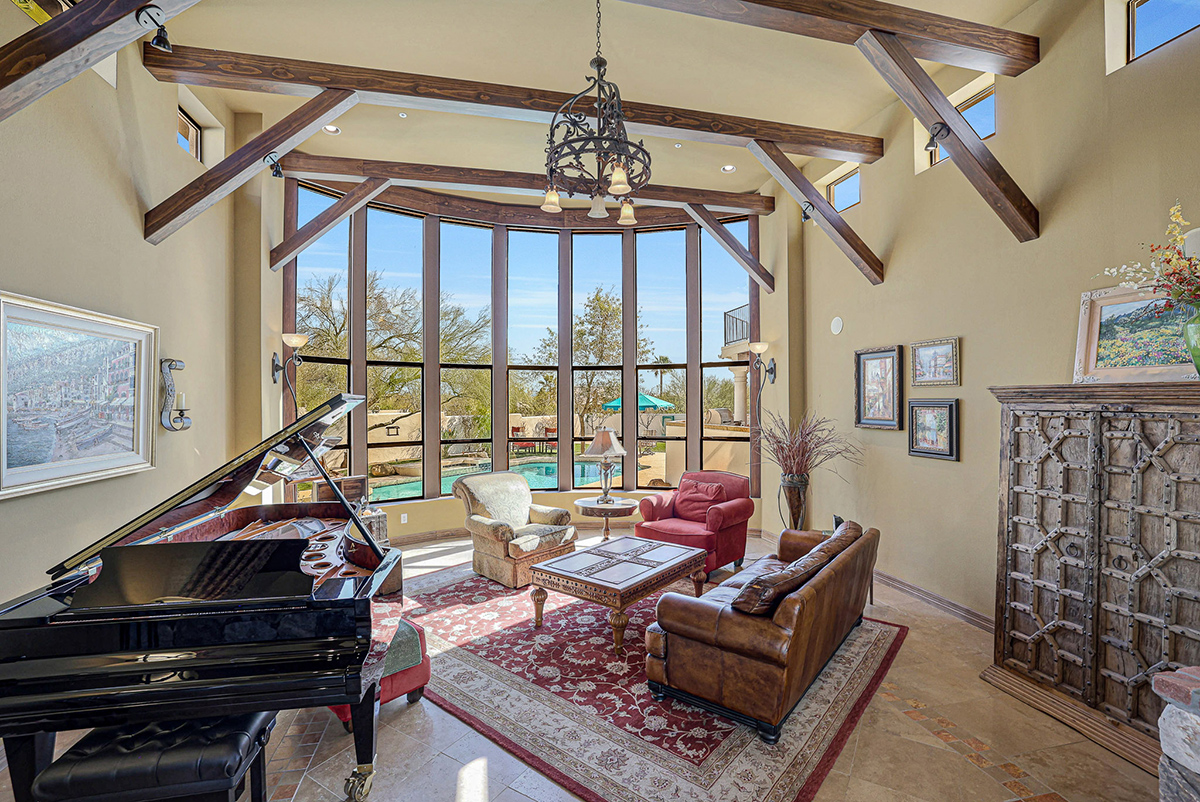 Welcome to this Mediterranean-inspired sprawling residence located on a .77 acre lot in Pinnacle Peak Estates III. This stunning 4 bedroom plus private office, 4.5 bathroom home spans 4,835 square feet and boasts a 3-car garage.