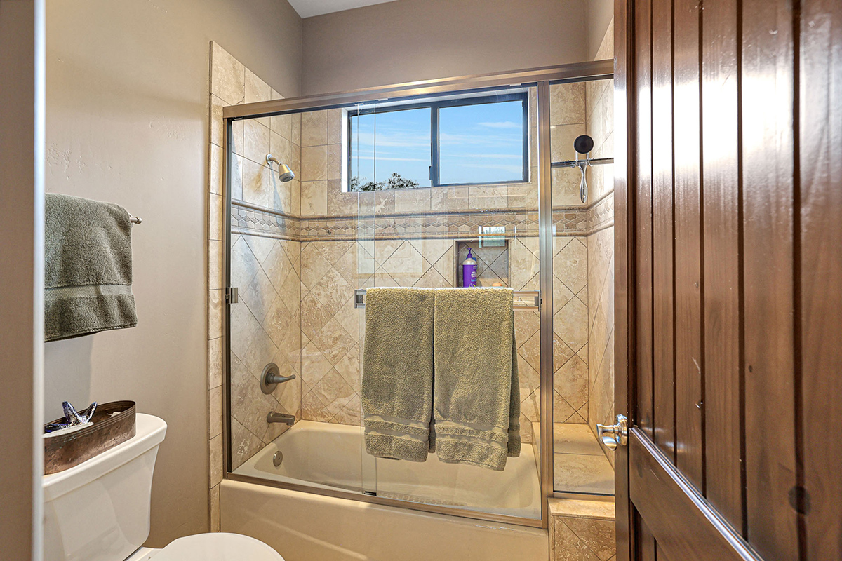 showers in ensuite bedrooms. The living and dining spaces boast a wet bar and a
