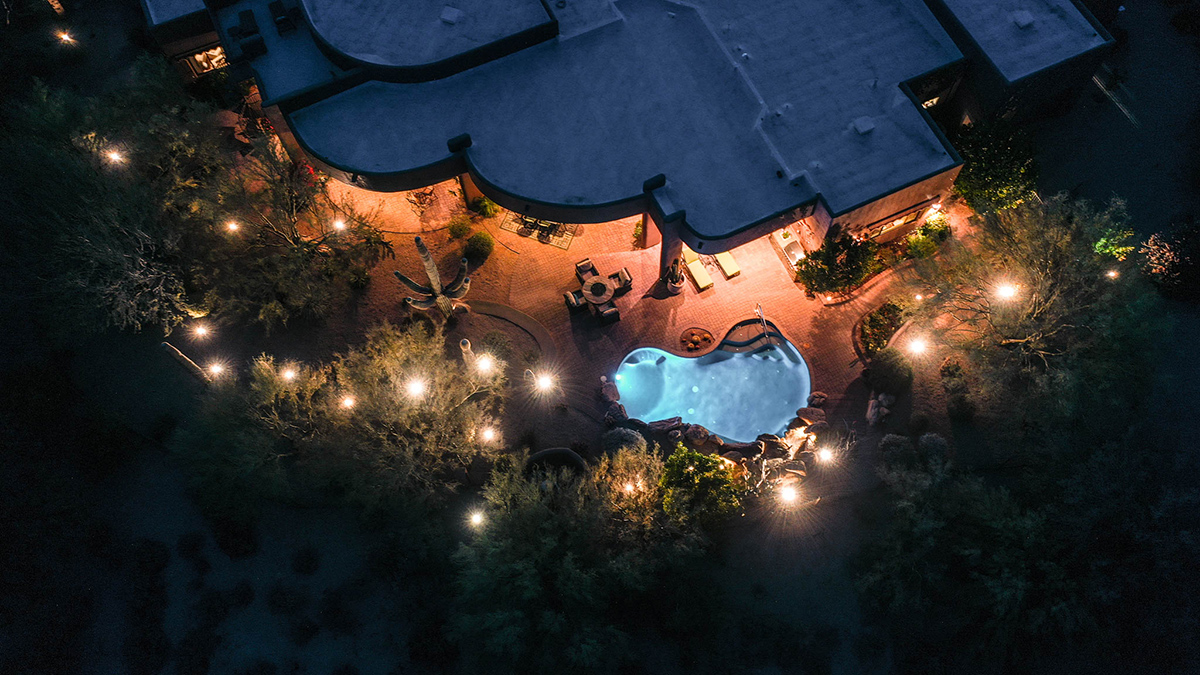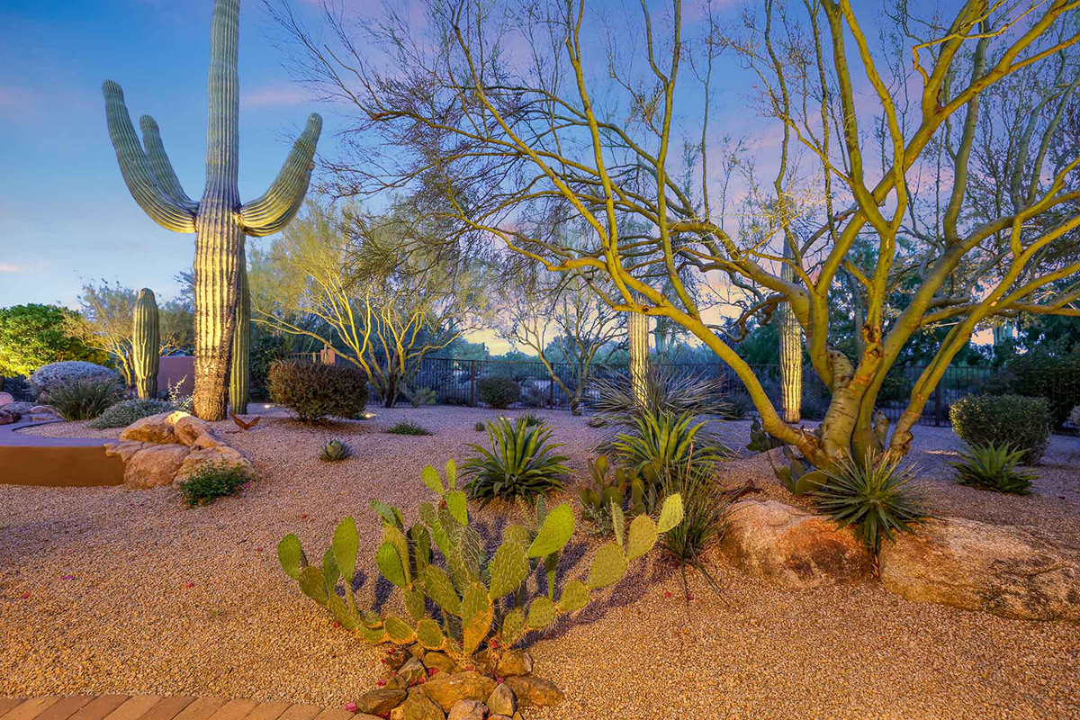 crushed granite, is illuminated by ambient lighting and a new irrigation system,